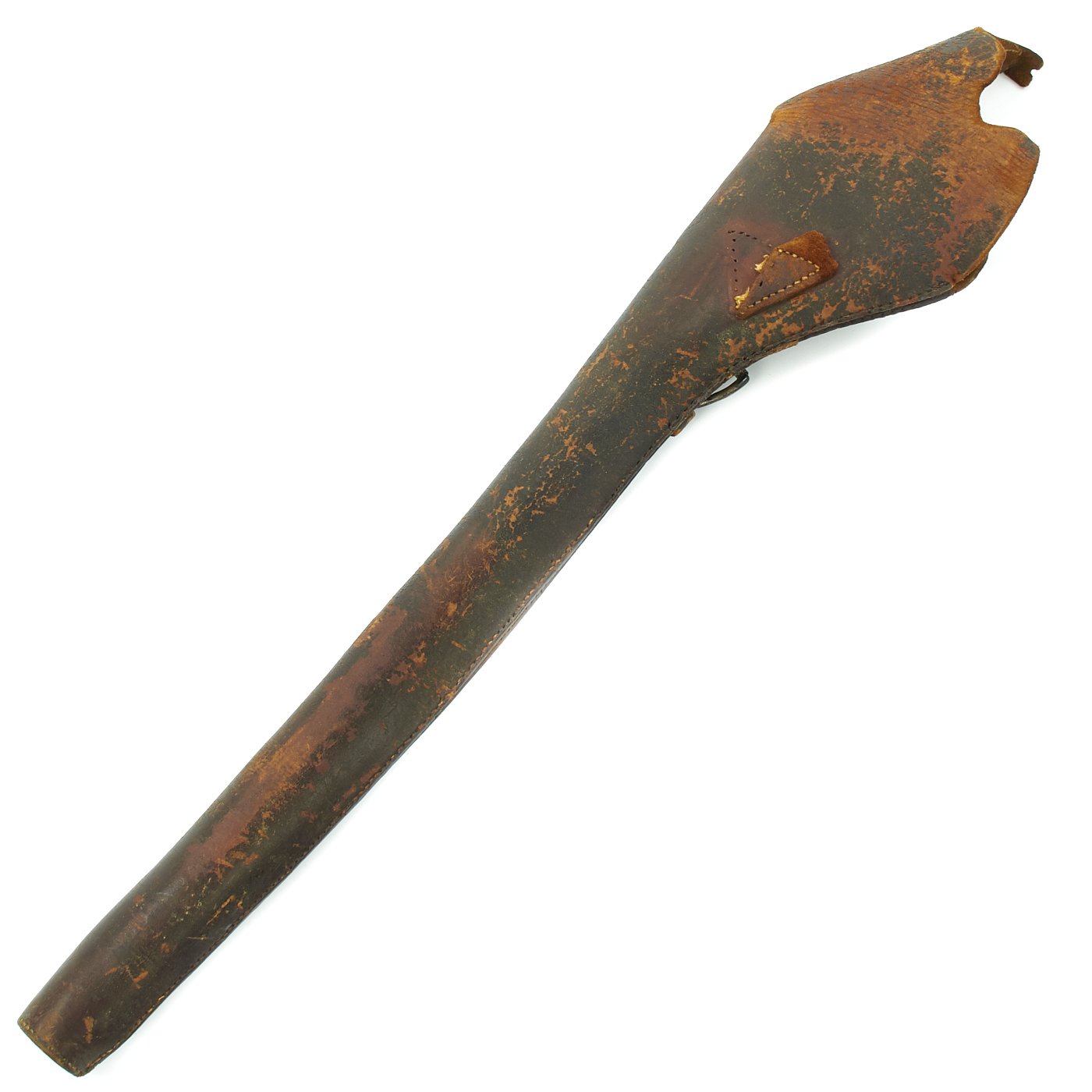 The first is a Victorian Revolver holster that had a built in blade under the barrel, very rare and only a few months back we actually sold such a revolver. This example must have had quite a long blade to the revolver. The holster measures approximately 19 inches long.
