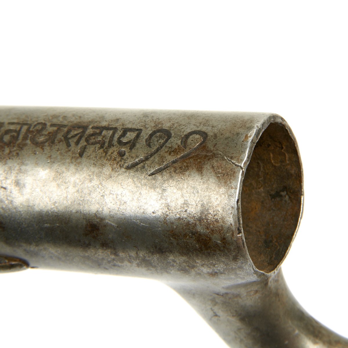 Nepal received mountains of aid from British India and tried to duplicate the manufacture of the EIC weapon models. Nepal has been a faithful ally to the British for 200 years and sent 12,000 troops to assist the EIC with the great Sepoy Rebellion aka Indian Mutiny of 1856-59. Each of these 12,000 infantrymen carried a Brown Bess and many a bayonet just like this. When they returned two years later they were gifted 1,000 of the EIC Company Percussion Muskets and accumulated many more Percussion muskets from Sepoy Rebels who subsequently fled to Nepal. Their flintlock muskets were then withdrawn from service and placed in Military storage at the old Palace of Lagan Silikanna