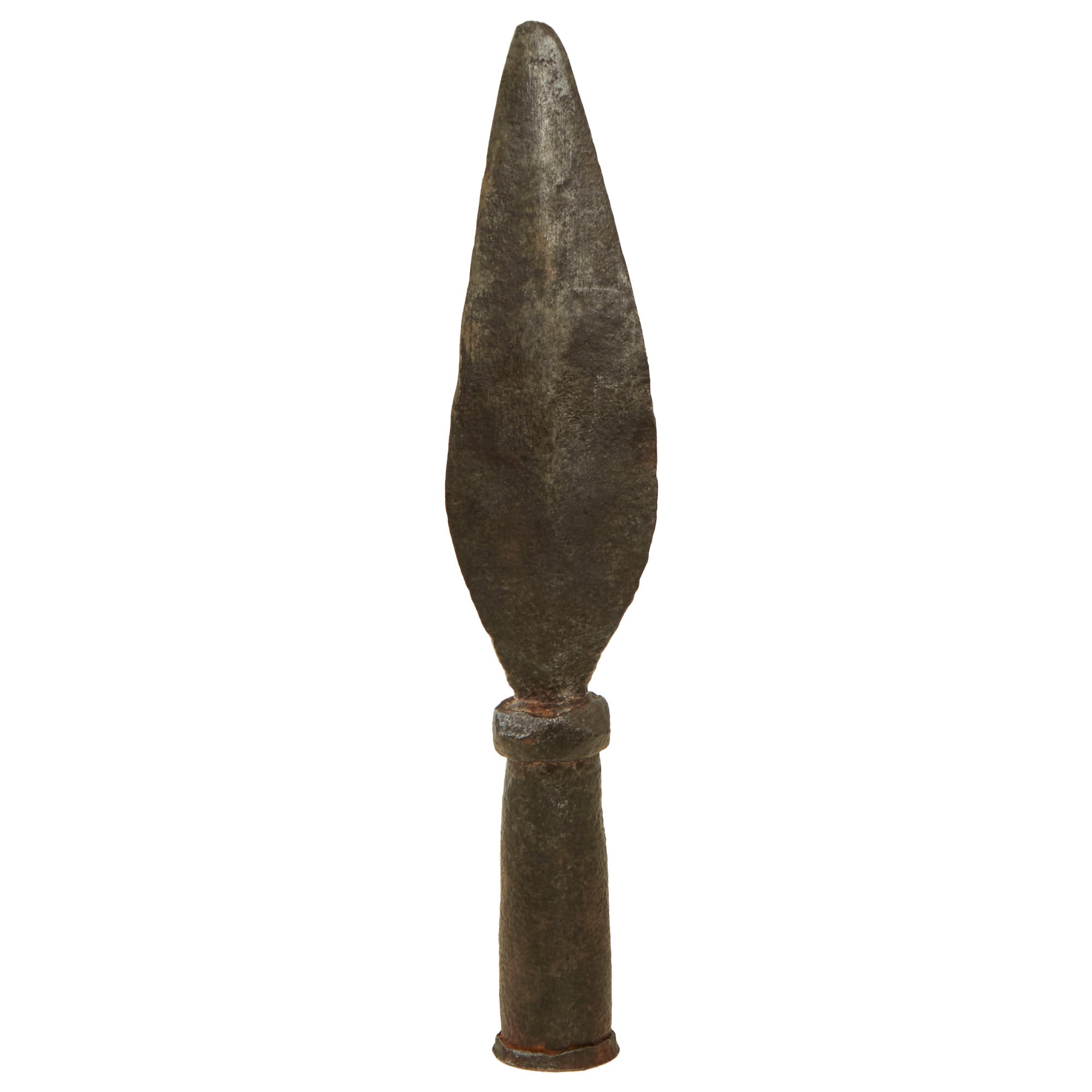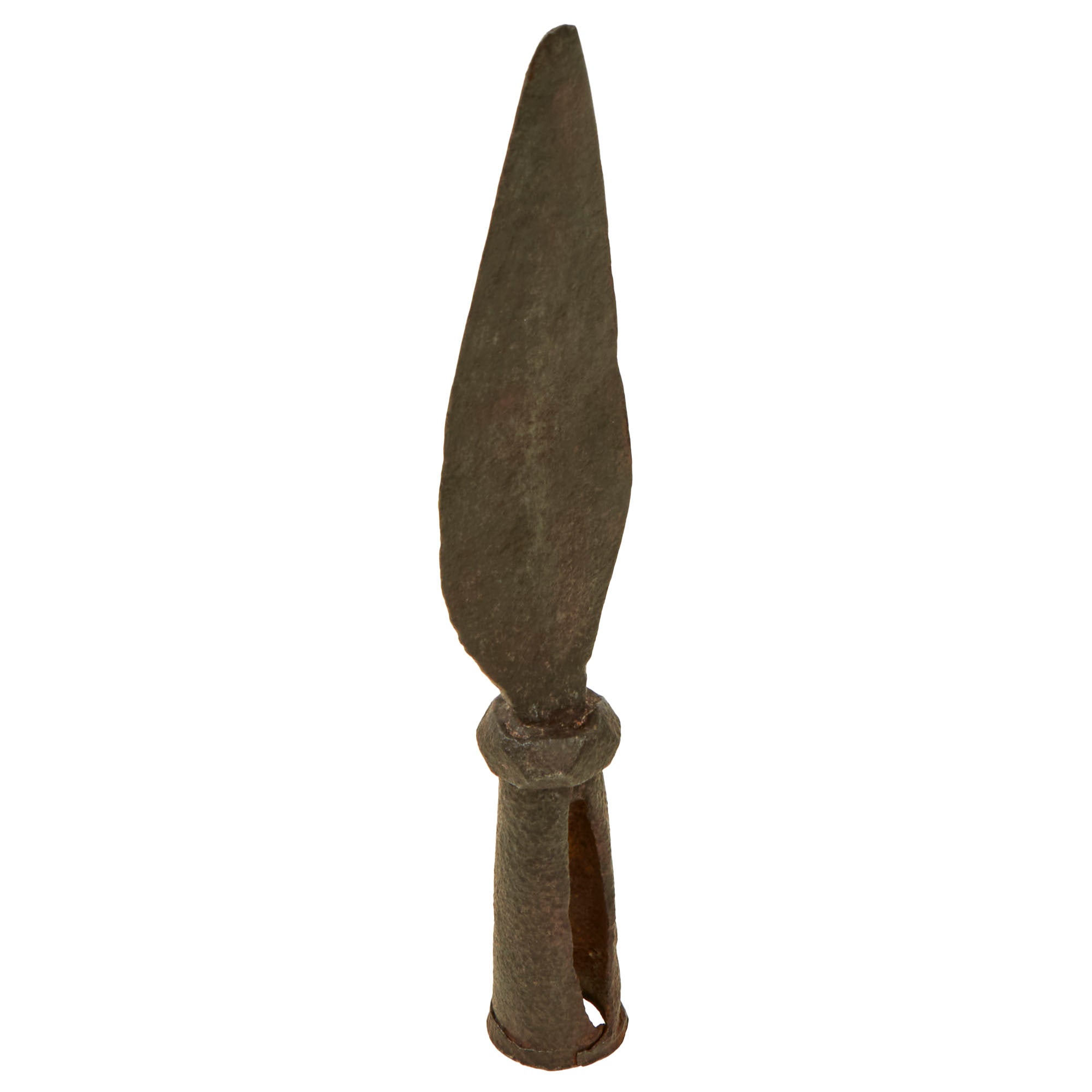 The pike head measures roughly 11” overall, with a 7” pike. The construction is entirely evident of the period, with the attachment line of the base still very visible. This piece was obviously well-cared for during the past 82 years since its discovery.