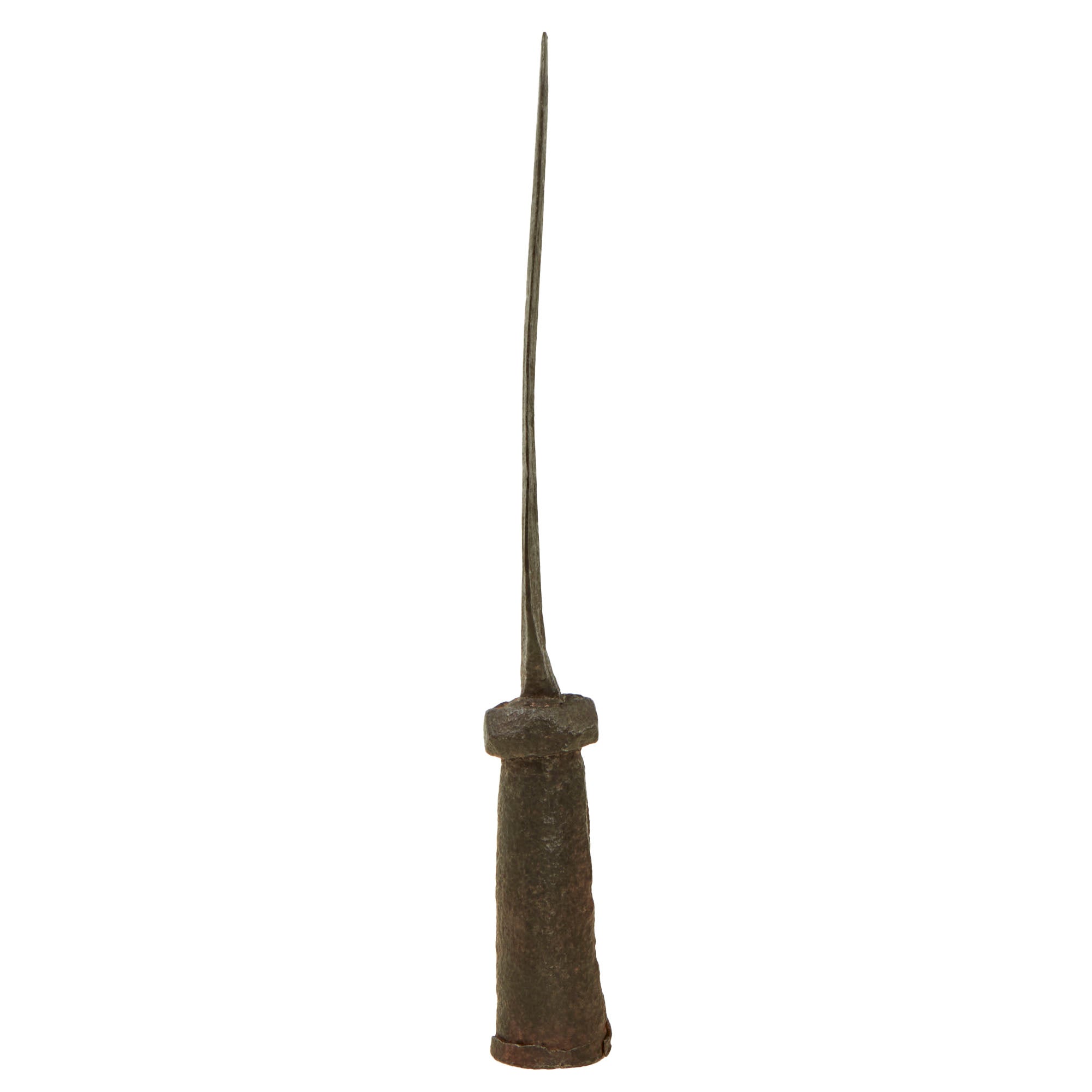 Original Item. One-of-a-Kind. This is a tremendous example of a pike head with an interesting backstory. This pike head was purportedly found on Tortuga Island, a West Indian island that forms part of Haiti, in 1943 by a U.S. Navy sailor. It was found by the sailor when digging for a possible gun placement.