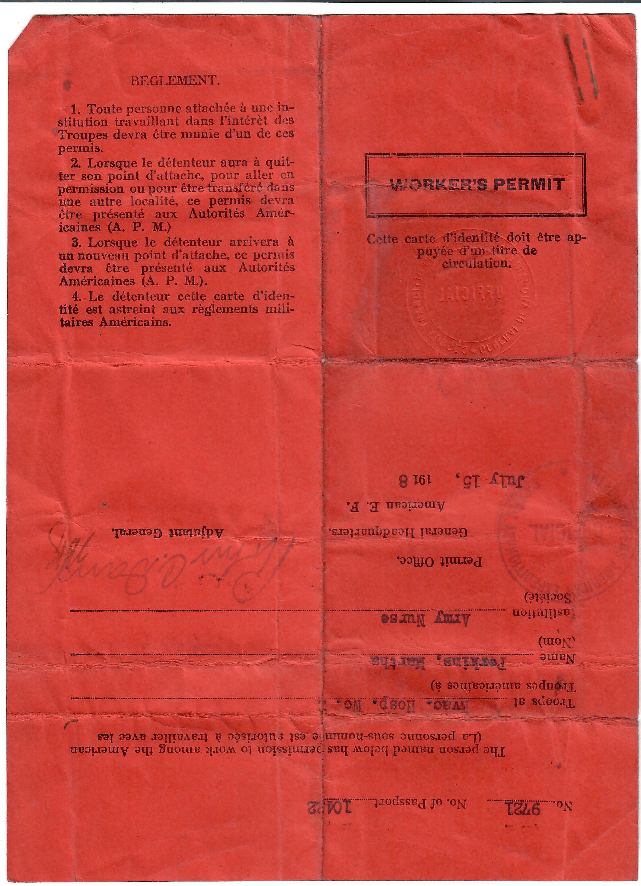 Perkins remained in France until July 6th, 1919, when she returned stateside, 15 months after arriving in France. Perkins would live a long & fulfilling life, passing away on November 23rd, 1990, at the age of 98.