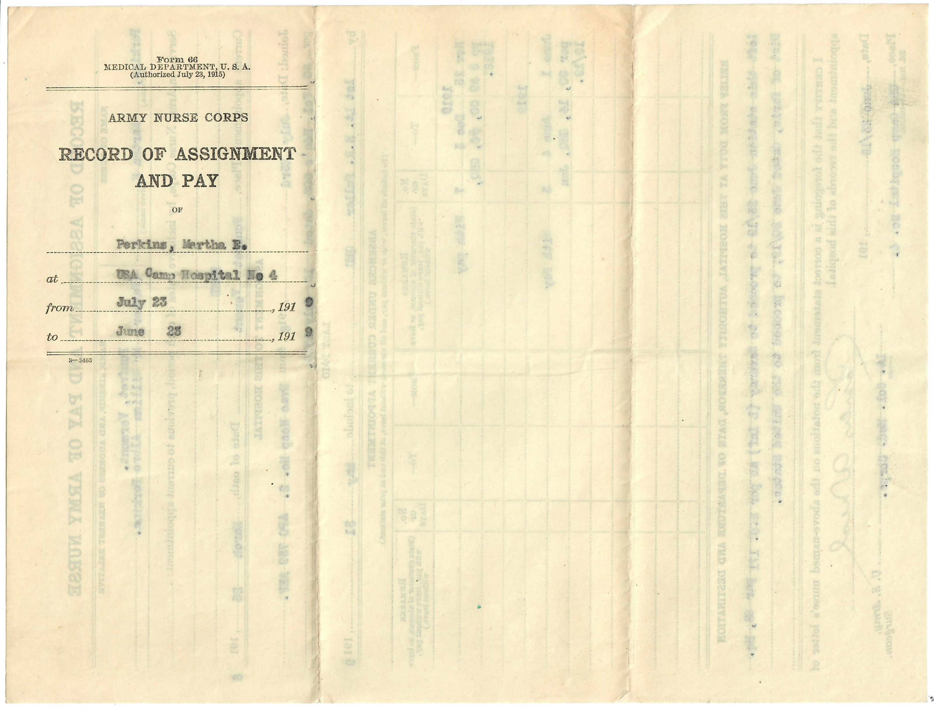 Original Item: Only One Available: When war broke out in Europe, Martha Perkins left her Pomfret, Vermont home for the Massachusetts General Training School in Boston. Upon graduation in 1918, she joined the army and was on her way to France on April 24th, 1918. Soon after, she arrived at Evacuation Hospital #2 in Baccarat, France, working as a nurse during the majority of the American Expeditionary Forces’ combat record.