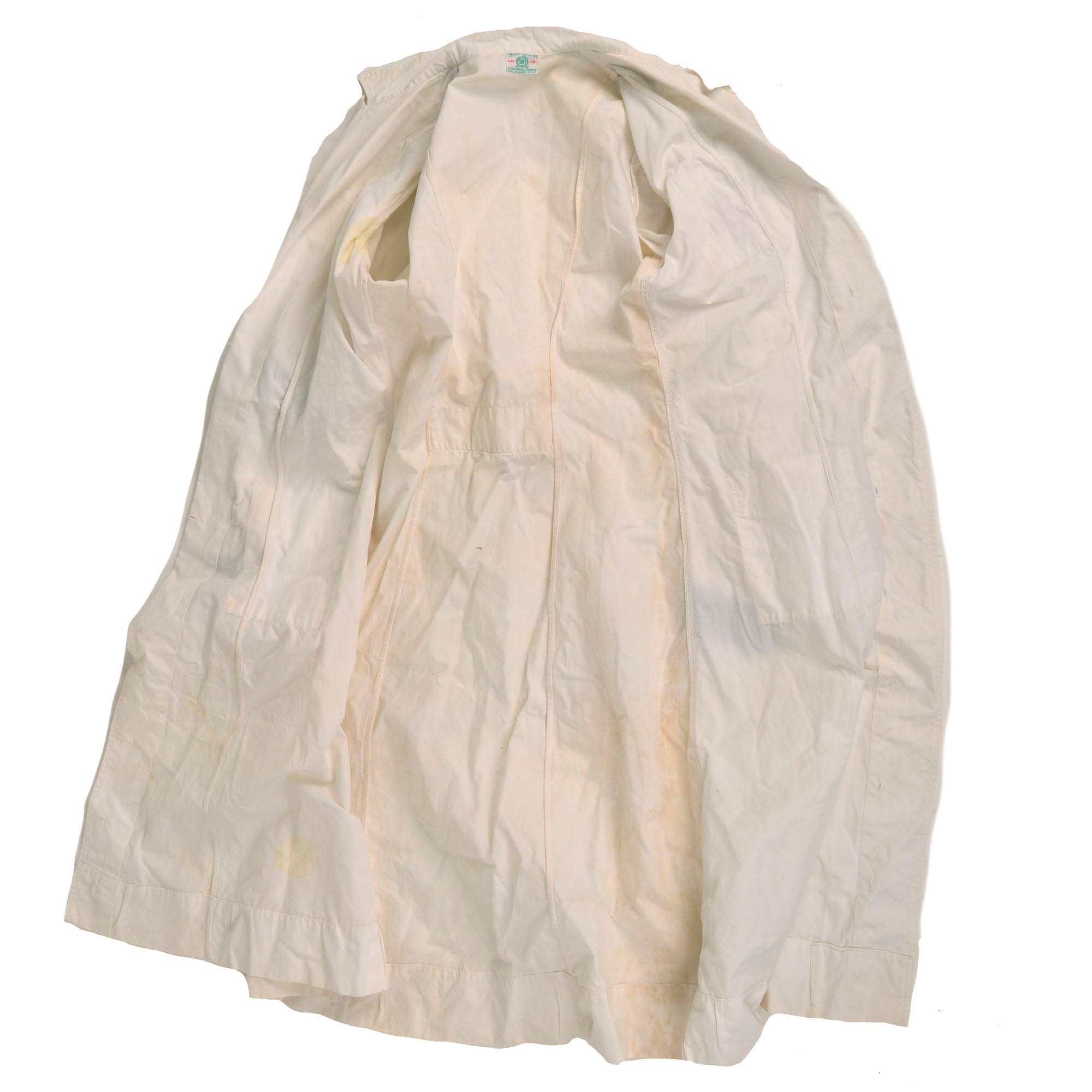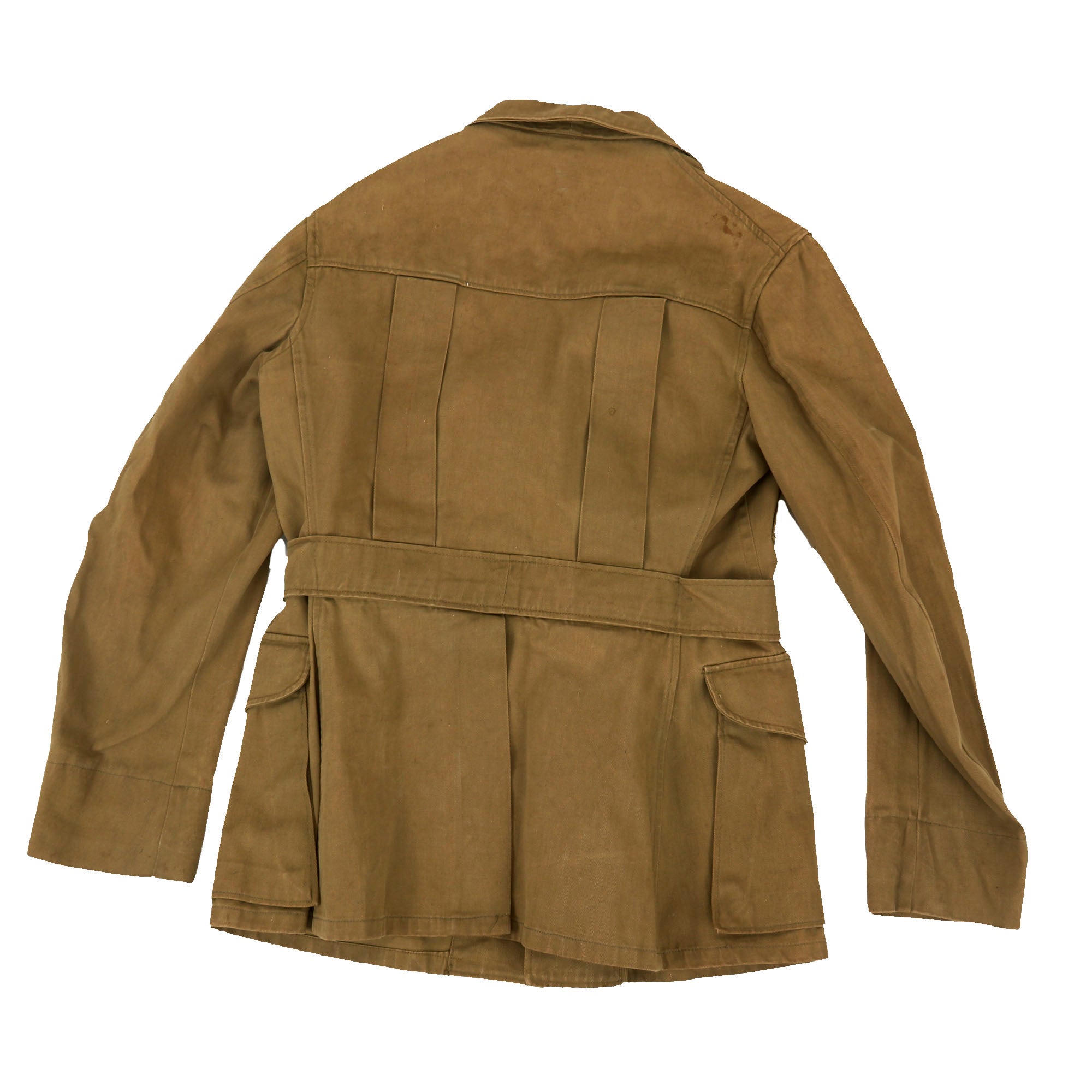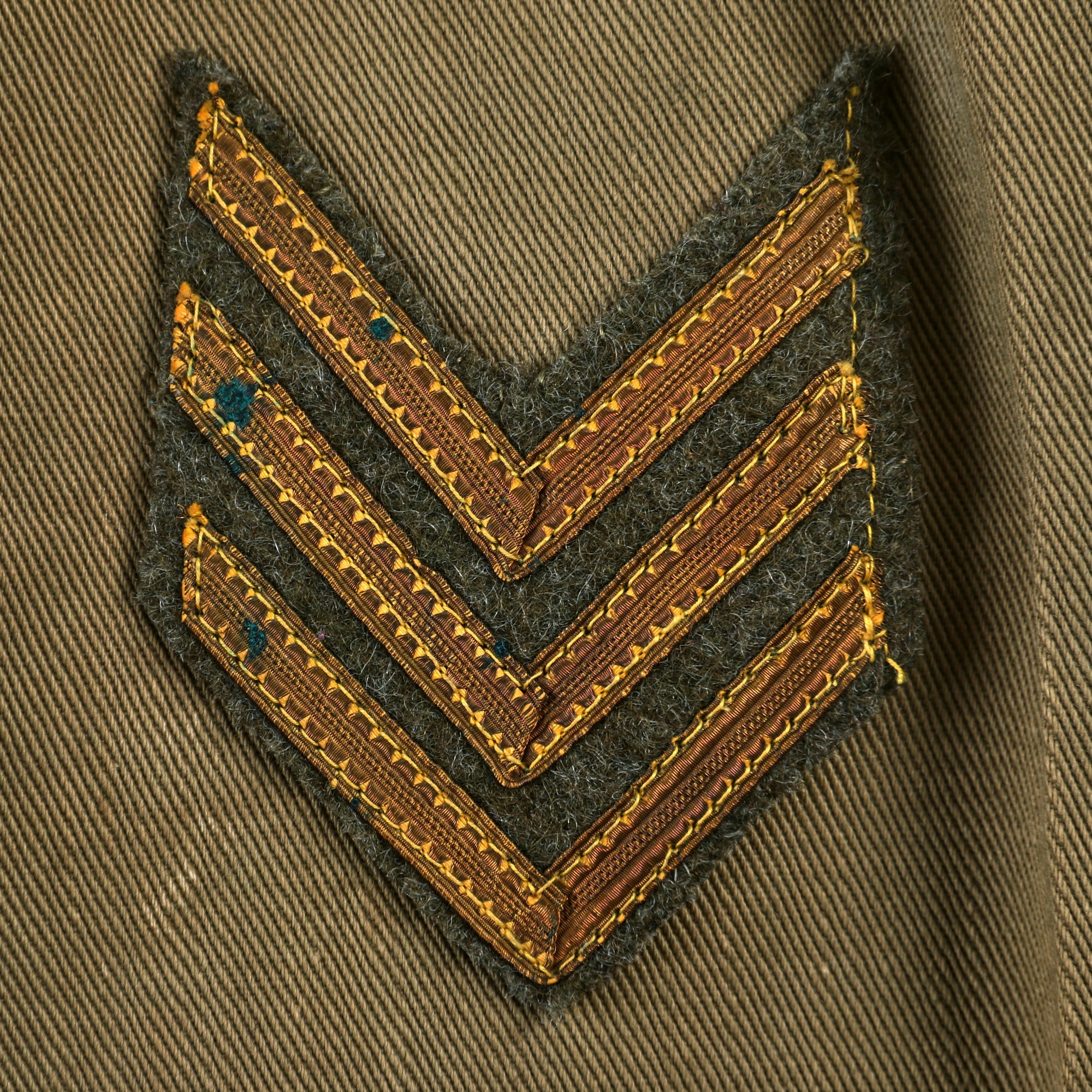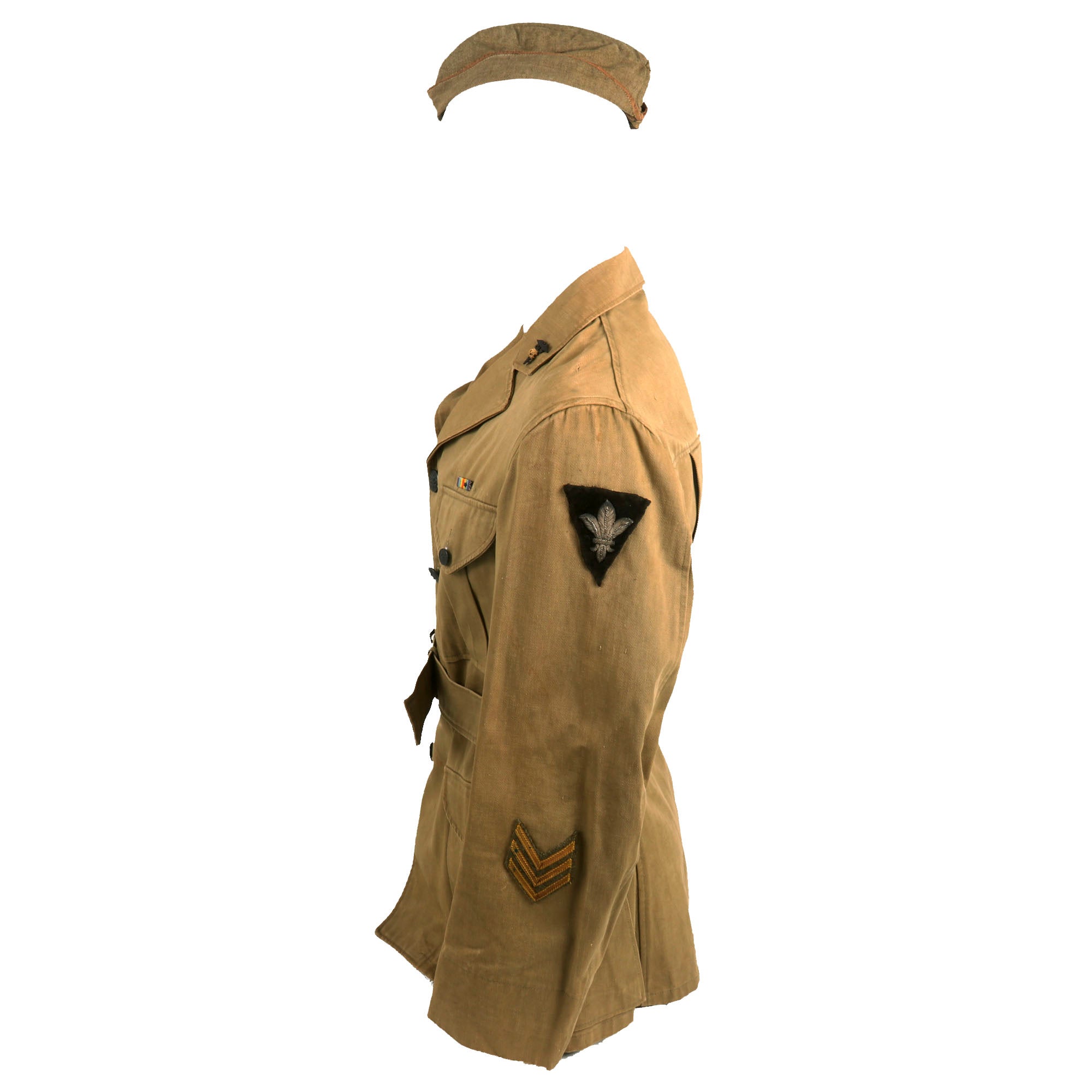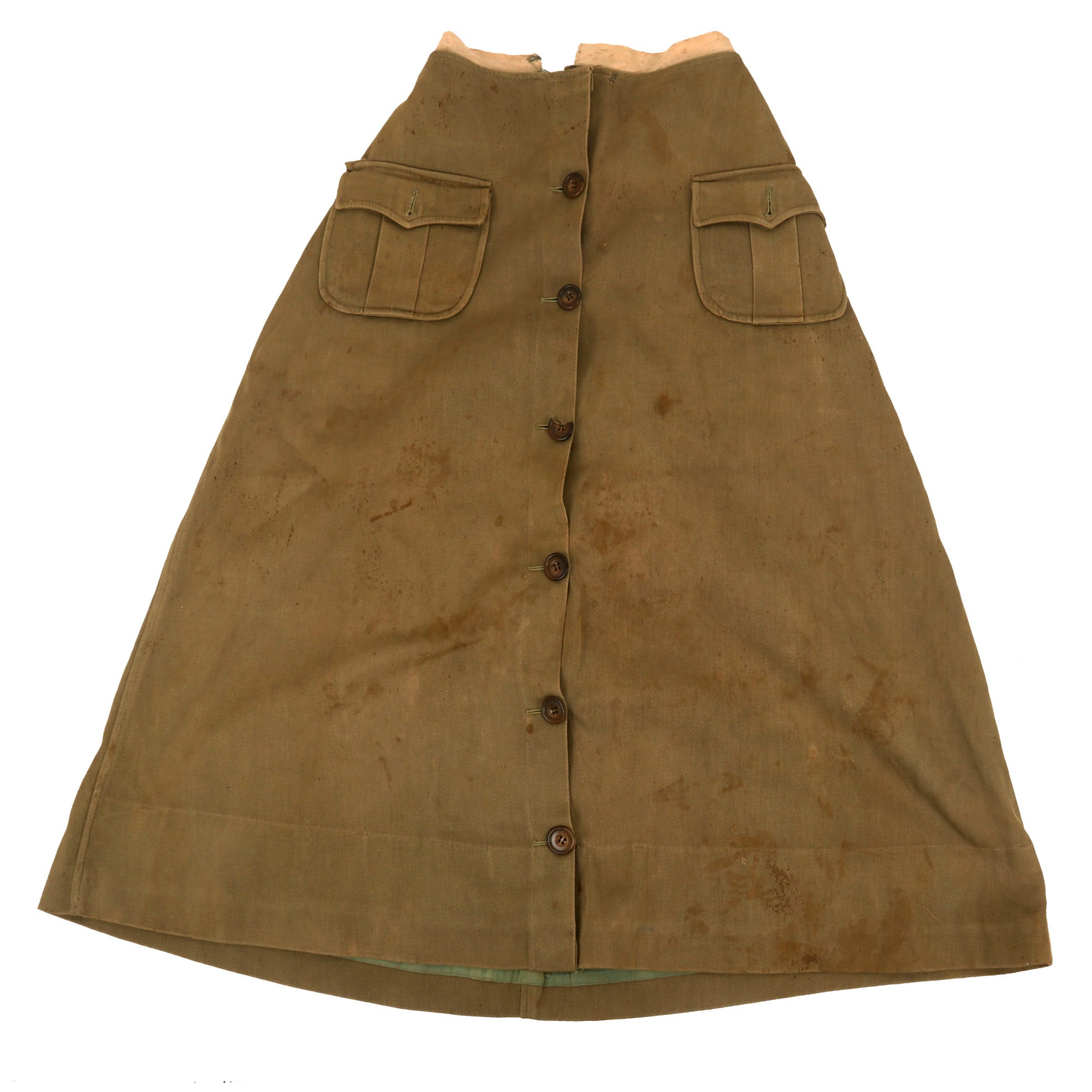 - Perkins’ American Red Cross Army uniform with a District of Paris patch, three overseas chevrons, medical ANC insignia on the collars, and a victory ribbon with one star. All buttons are retained and the uniform is in great condition.
