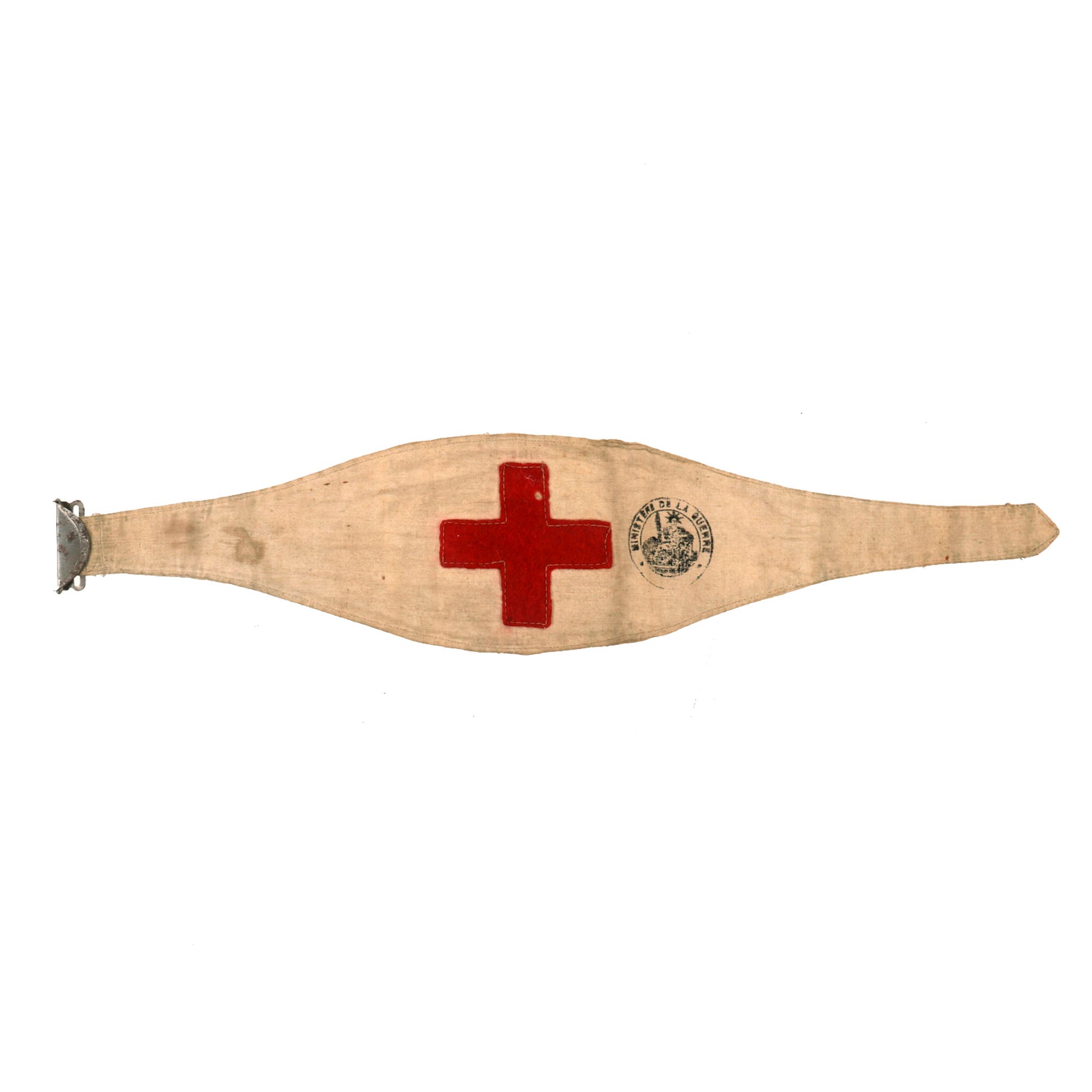 - A WWI Nurse’s transparent veil with a red cross on the front.