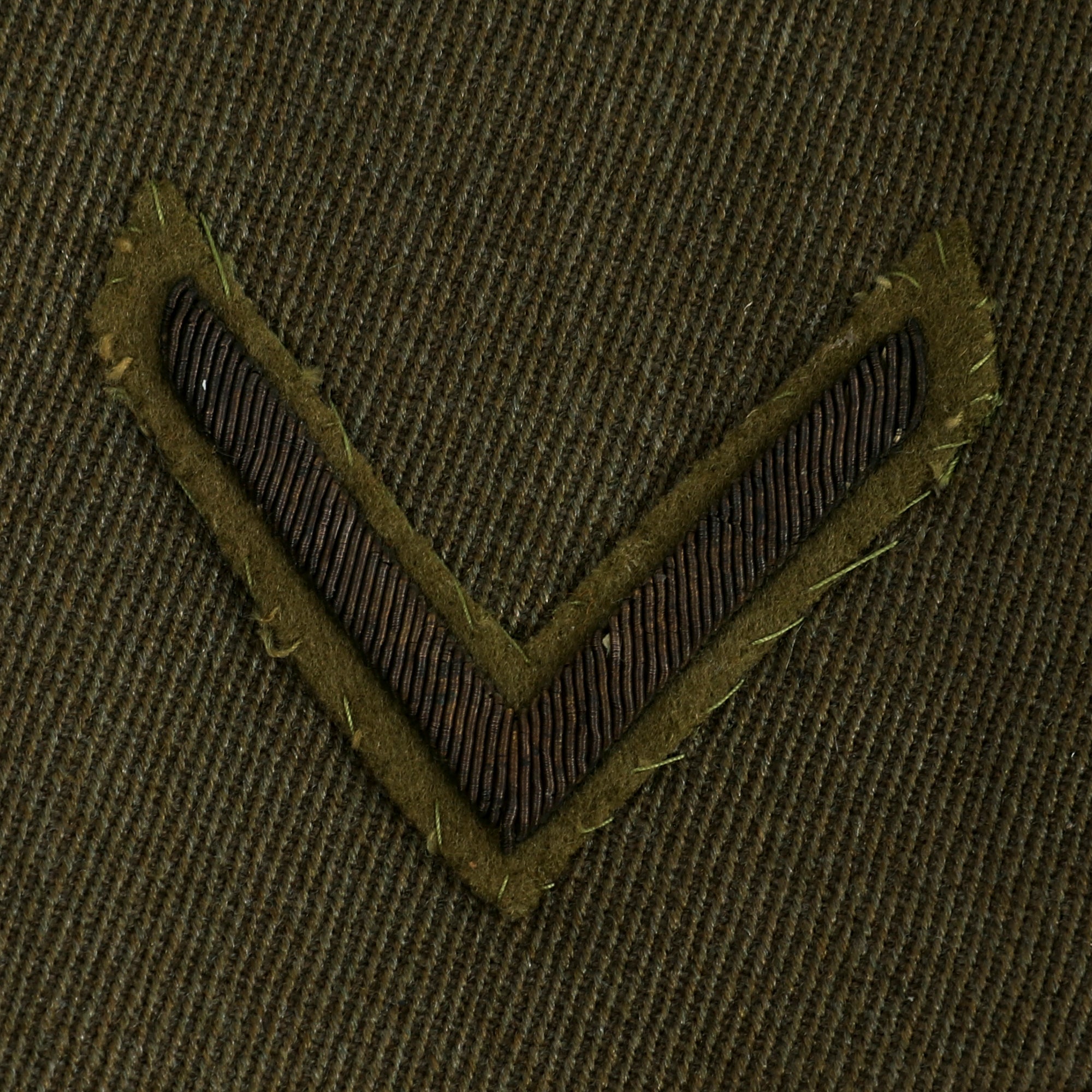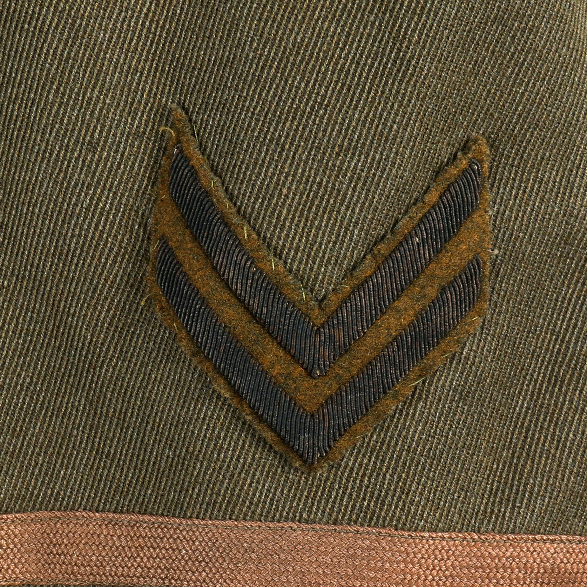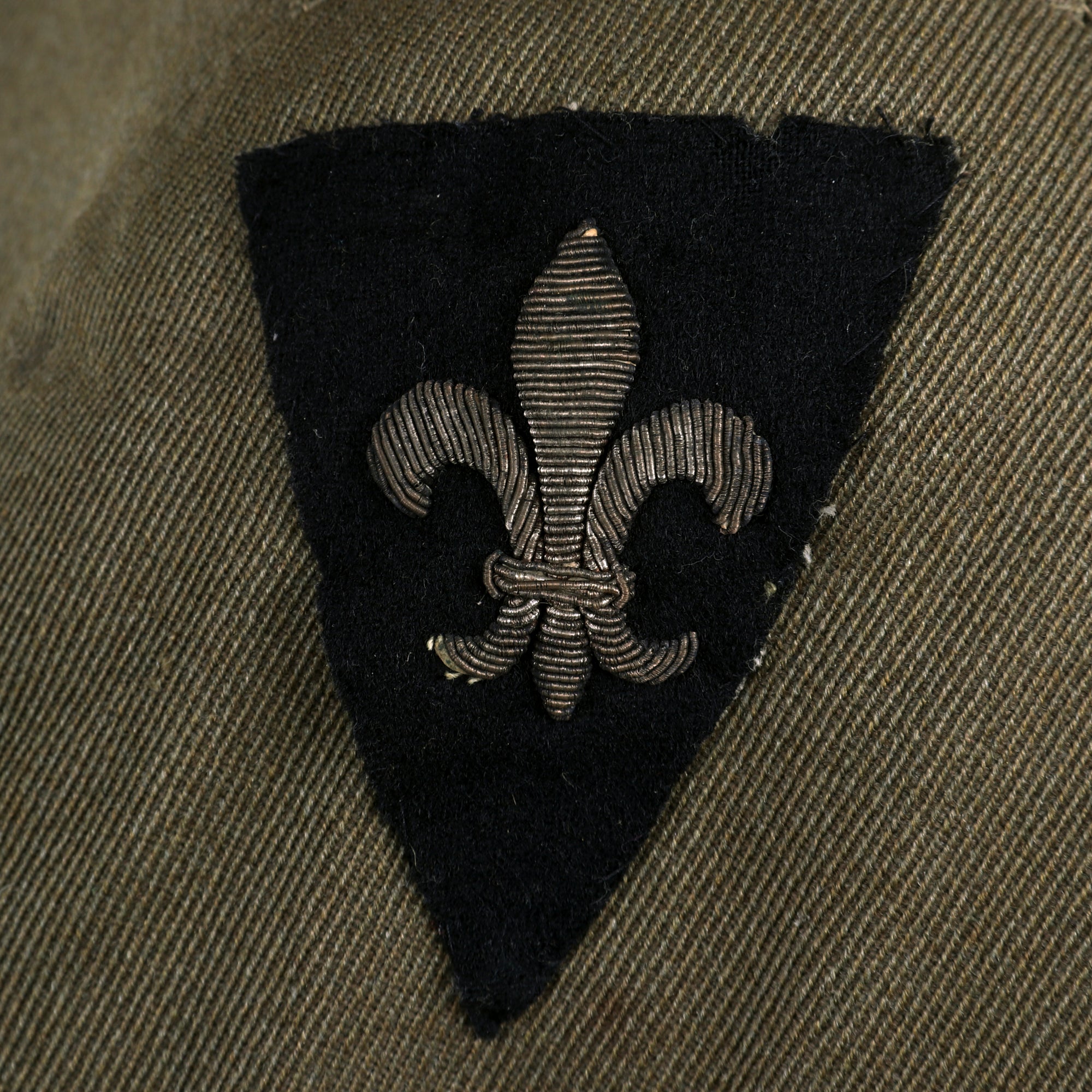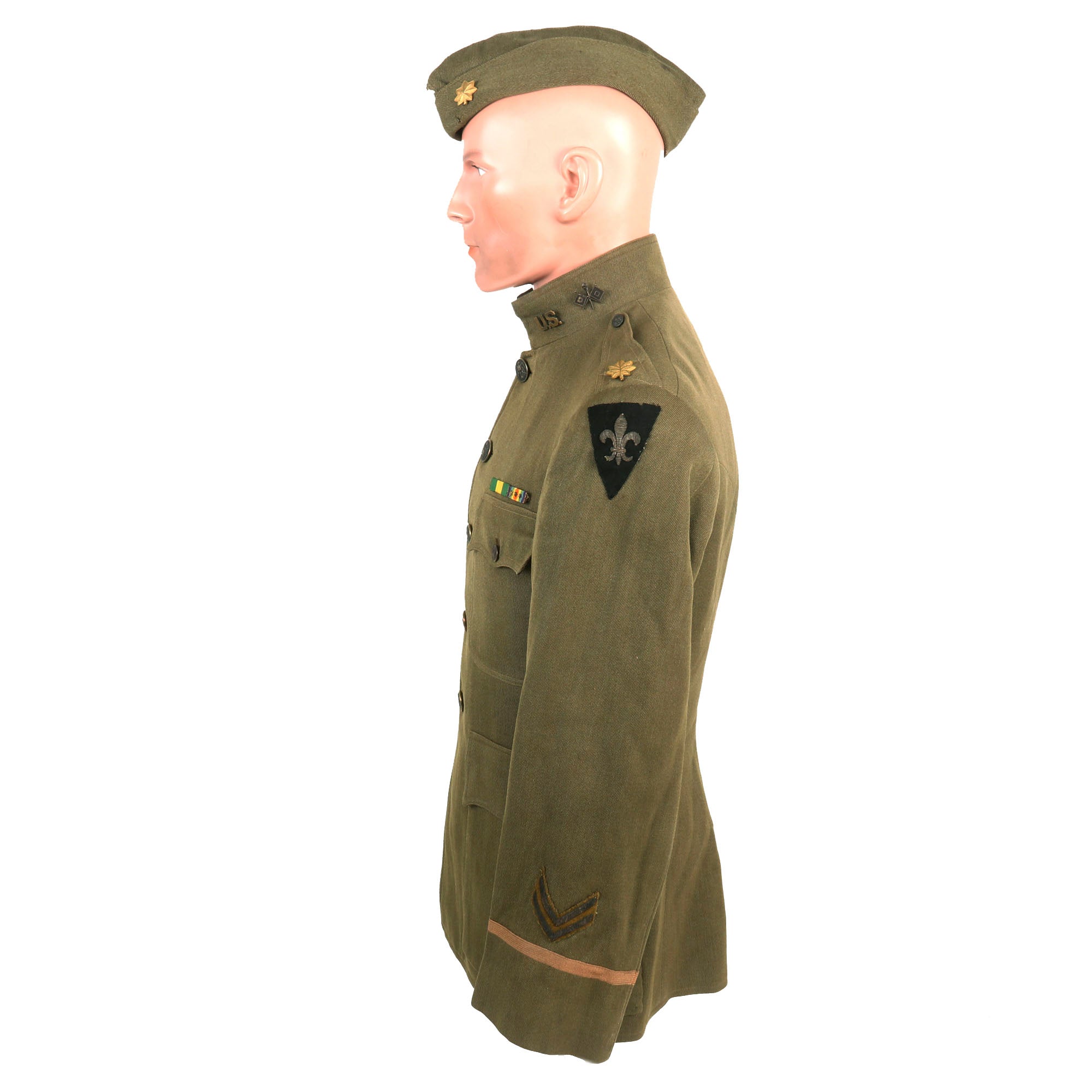 This is the Officer’s uniform grouping of Major Robert Arnold Lutz, Signal Corps, District of Paris. The grouping includes Lutz’ Parisian-made private purchase officer’s uniform jacket & breeches. The jacket was tailored at Aberdeen in Paris, and issued on April 8th, 1918. The jacket is named “Lutz” on the tag in the interior pocket, and initialed “R.A.L.” in the breeches. The jacket has a gorgeous bullion District of Paris patch and two overseas chevrons denoting 12-17 months overseas on the left shoulder, with one wound chevron on the right cuff. There are faux bullion Major rank pins on each shoulder. There are U.S. and Signal Corps officer’s insignia on the collar. Also included in the group are his overseas cap with a Major insignia pinned on, his gas mask and bag, and his leather officer’s leg gaiters. All are in great displayable condition.