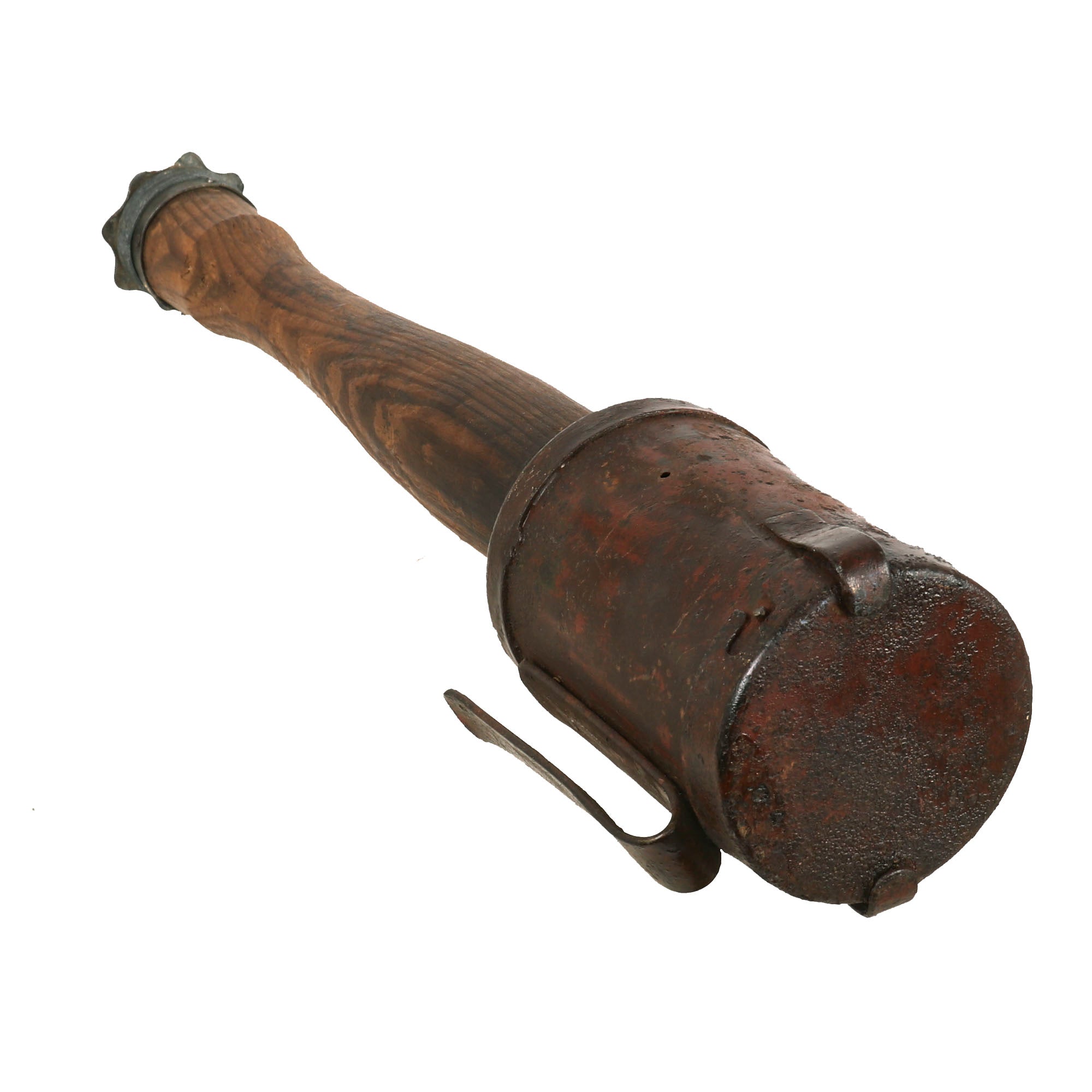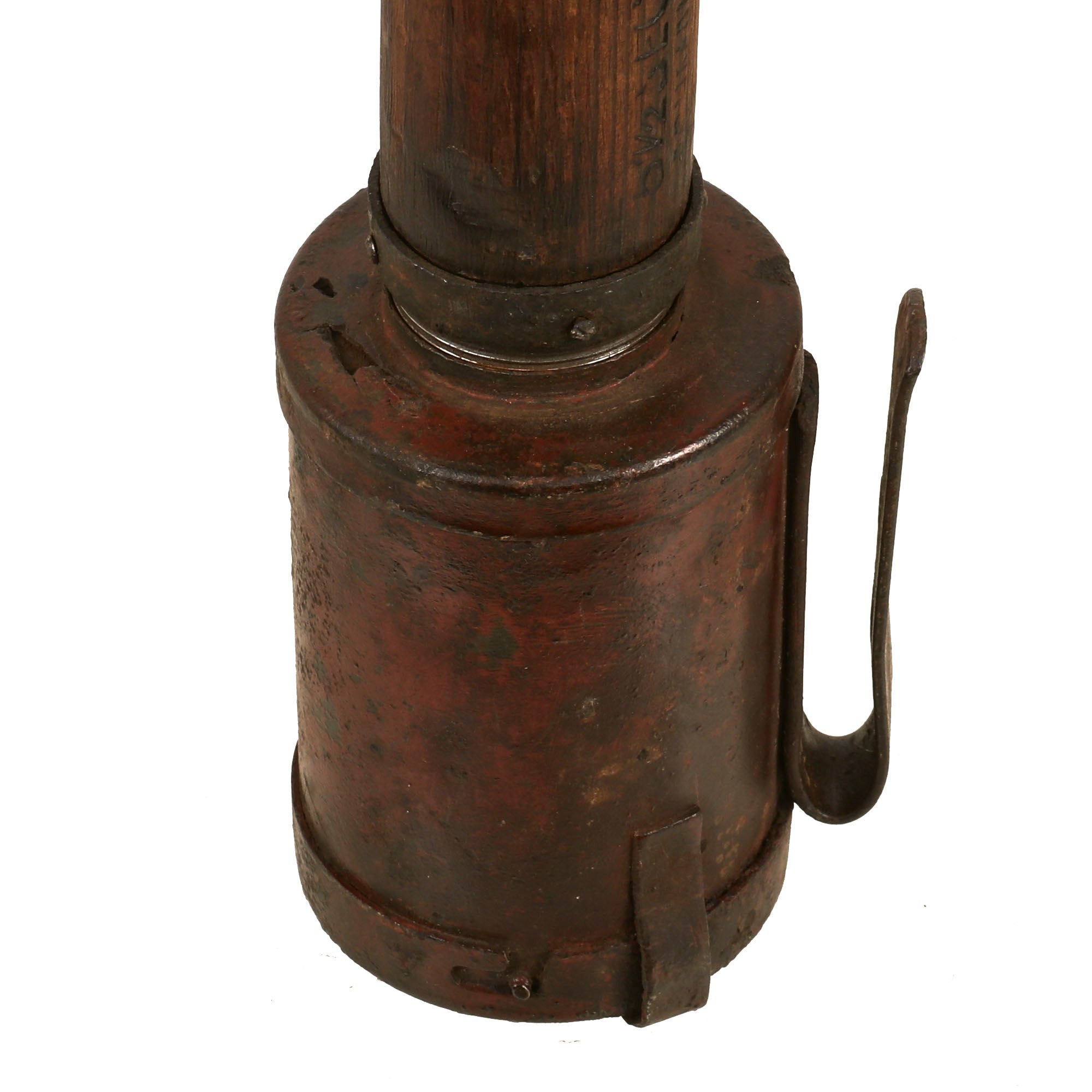 The head of the grenade is painted red which appears period. The head is secure but does not screw all the way down as seen in the image but grenade head is totally stable and will not detach for display purposes. This is an extremely rare model of grenade, only the 2nd we have ever offered with this style of head. Comes ready for further research and display!