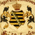 The front, or Saxon side of the flag has the Coat of Arms of the Kingdom of Saxony under a crown, surrounded by some foliate designs. There are embroidered words in German "Blackletter" gothic style, above and below the emblem: