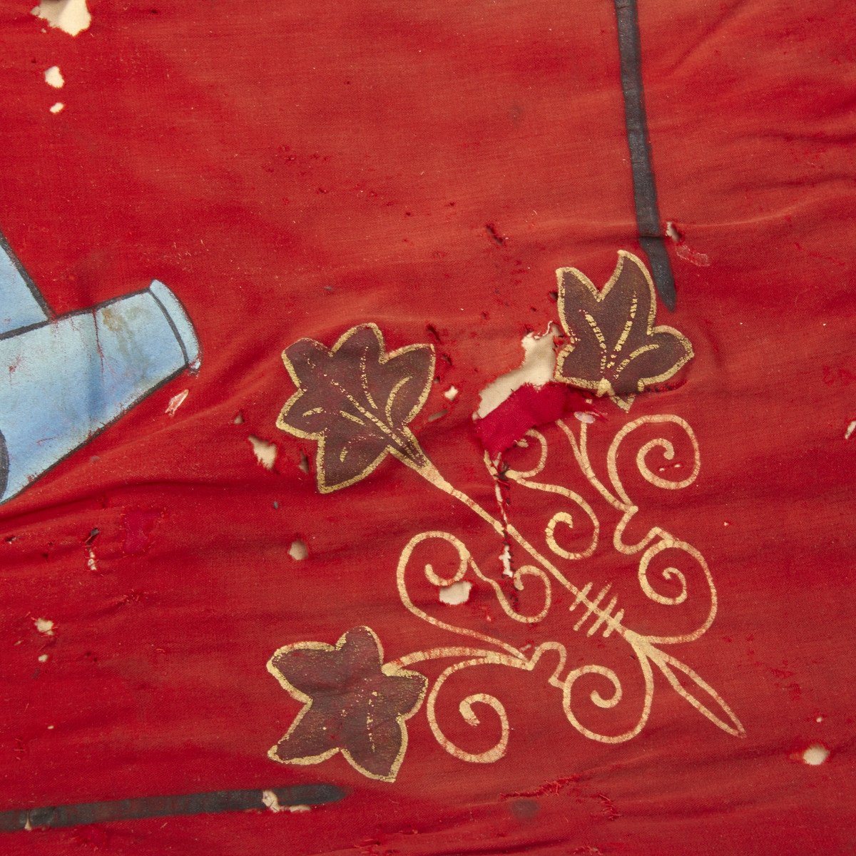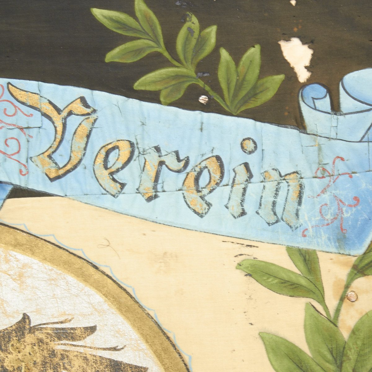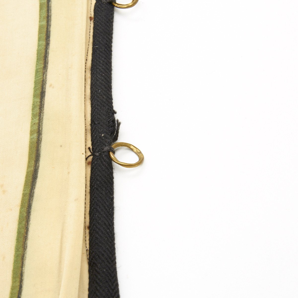 Slight moth damage and evidence of the gold fringe fraying can also be seen. We know from experience that this is a double-sided flag, the other side depicting the famous Lady Liberty style figure of "The Watch over the Rhine" (fans of our TV show Family Guns will remember a second very similar flag we had to this, which was sold in 2011). This flag could certainly benefit from being mounted in a double-sided frame mounting.