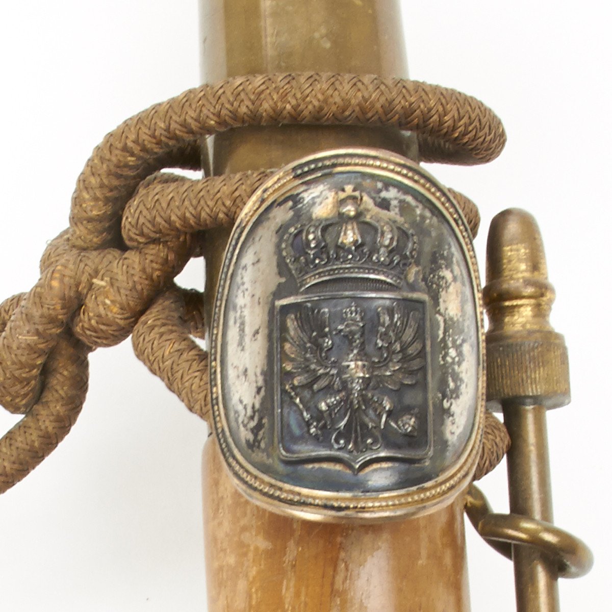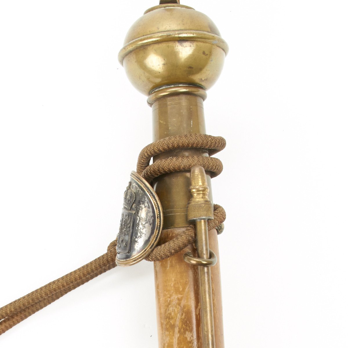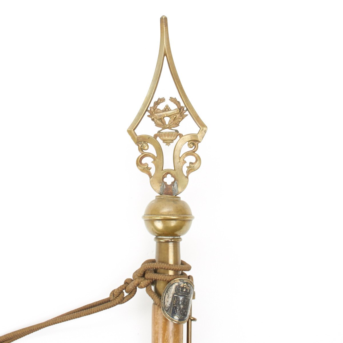Completing this offering we even have the original two-piece flag staff which comes complete with decorative brass type spear head decorated with Military trophies and a shield bearing the Eagle coat of arms of Prussia. The Fag pole even retains the brass flag-securing rod and gold thread roping with tasseled ends.