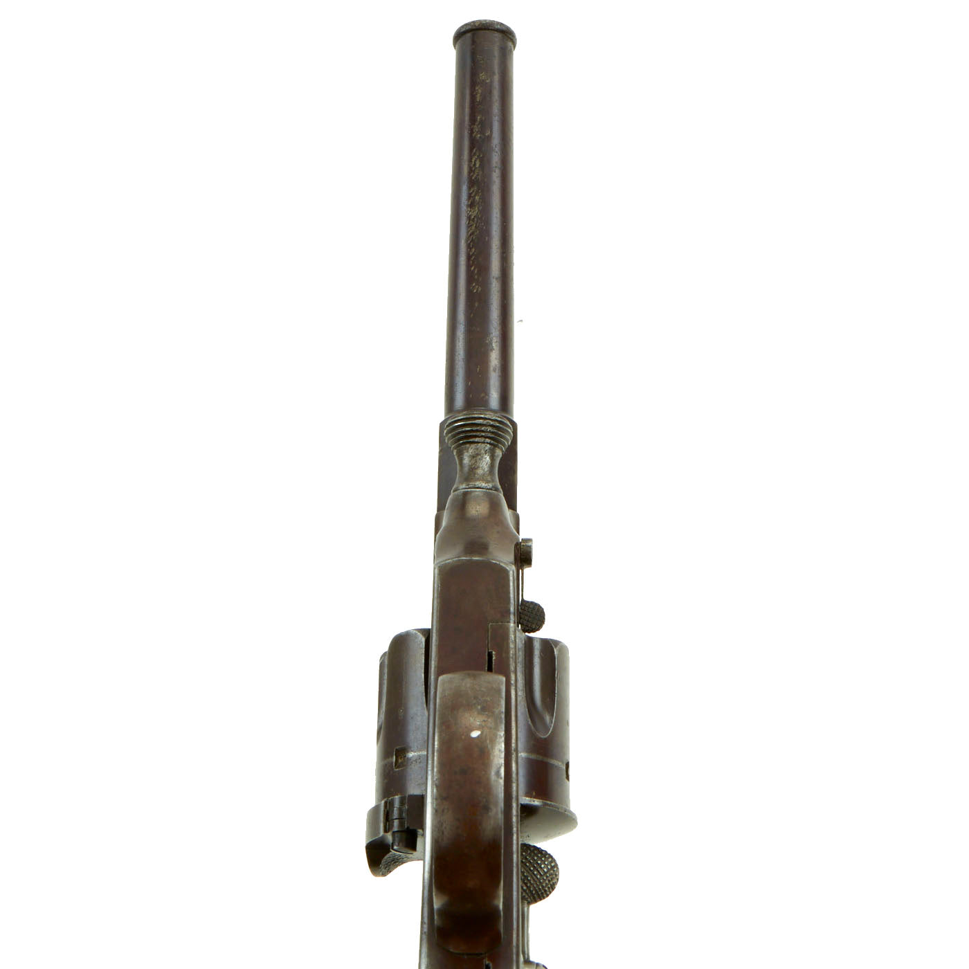 Original Item: Only One Available. This is a fantastic example of one of the great romantic era Imperial German Army Revolvers. The M1879 Reichsrevolver, or Reichs-Commissions-Revolver Modell 1879, was a service revolver used by the German Army from 1879 to 1908, when it was superseded by the Luger. The Model of 1879 was issued with a 7" 10.6mm x 25R mm Barrel, which sported a rather fancy ring to the muzzle. In 1883 they introduced a shorter barrel version that had only a 5" barrel, the M1883. Although the design was dated, the weapon was extremely robust, and they were still used through World War I. The M1879 is referred to as the "cavalry model" and the M1883 as the "officer's model," by collectors, which were not official designations.