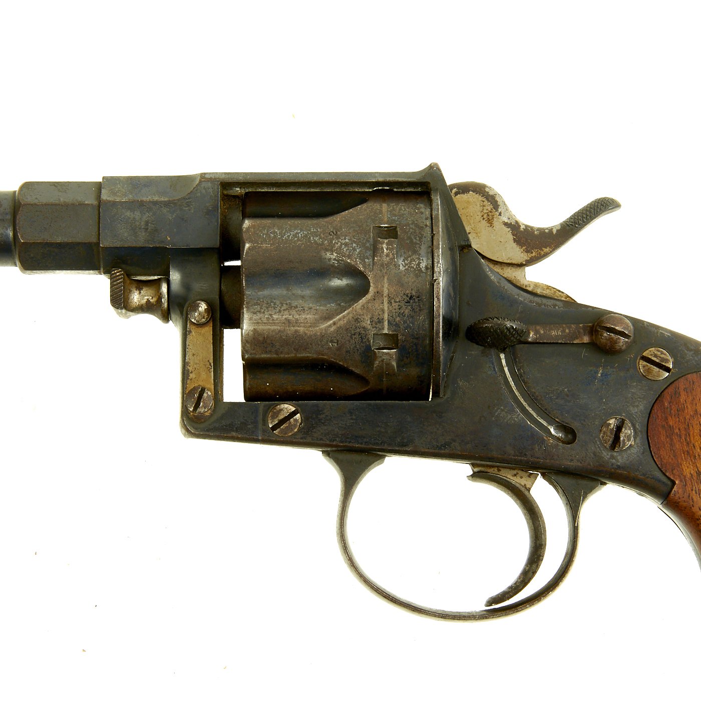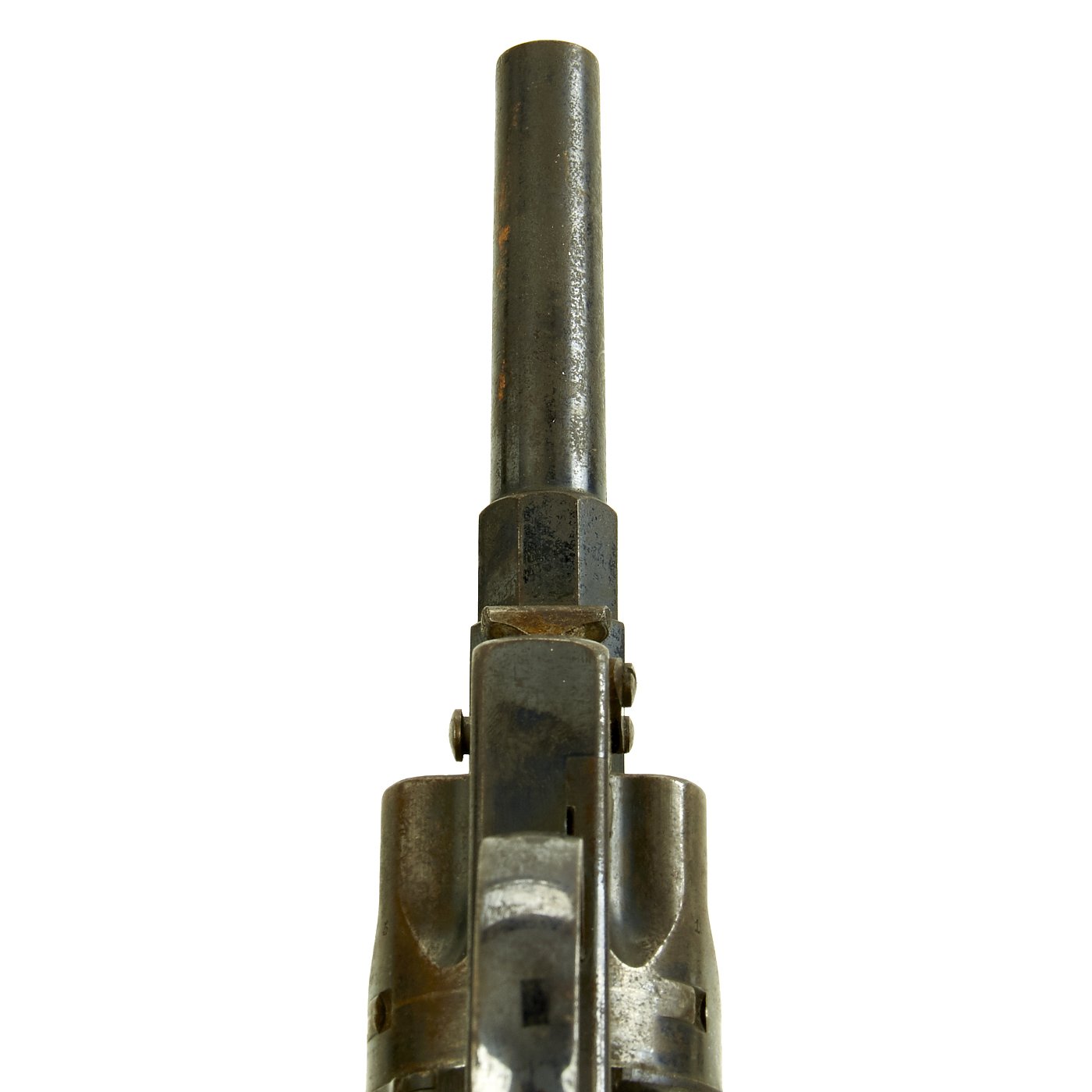 Original Item: Only One Available. This is one of the great romantic era Imperial German Army Revolver! The M1879 and M1883 Reichsrevolvers, or Reichs-Commissions-Revolver Modell 1879 and 1883, were service revolvers used by the German Army from 1879 to 1908, when they were superseded by the Luger. The Model of 1879 was issued with a 7" 10.6mm x 25R mm Barrel, which sported a rather fancy ring to the muzzle. In 1883 they introduced a shorter barrel version that had only a 5" barrel, the M1883. Although the design was dated, the weapon was extremely robust, and they were still used through World War I. The M1879 is referred to as the "cavalry model" and the M1883 as the "officer's model," by collectors, which were not official designations.