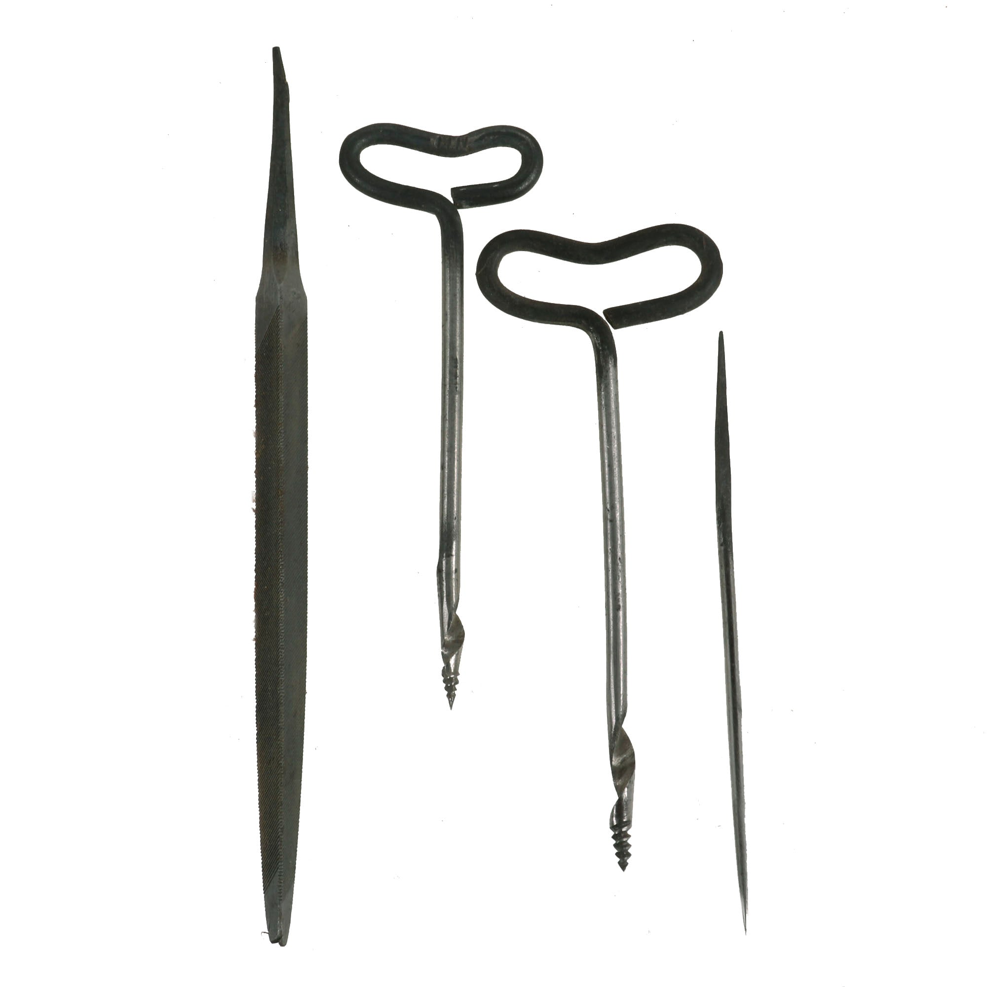 The button snap for the tool set is intact and works well. This is a really phenomenal set that never shows up for sale. This is the first example we have had. Comes ready for further research and display.