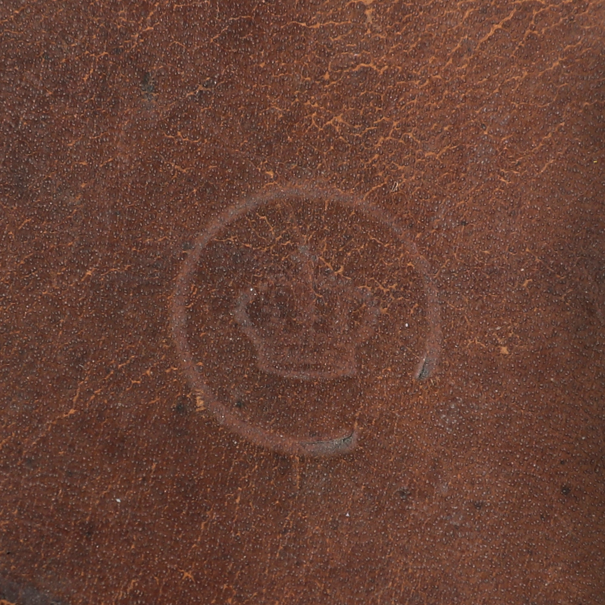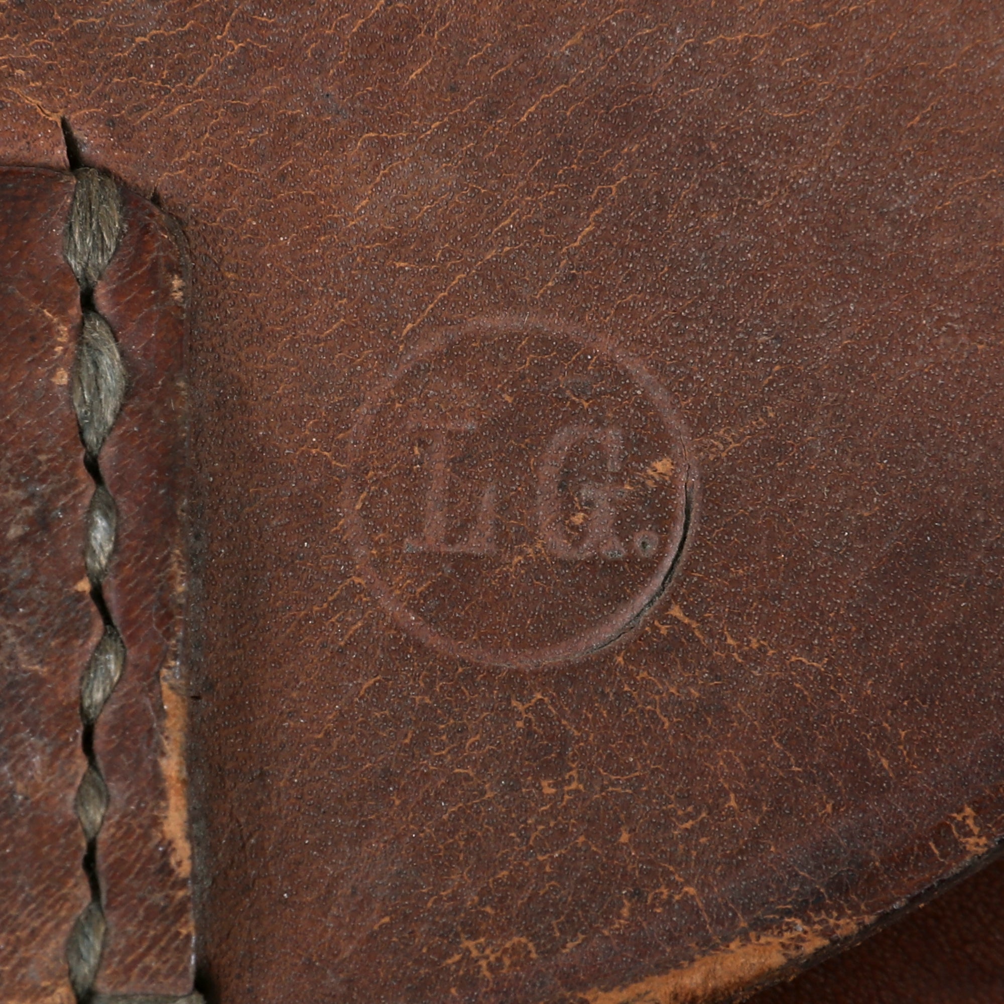 The saw comes in its original sturdy brown leather case with two buckled belt loops to its reverse & a buckled flap the case contains in its front compartments other tools including a file, an awl & a gimlet. Over this is a separate buckled flap that secures with pop studs to secure the tools in place. The flap on this example has unfortunately torn away, but that is the only serious flaw with this set.