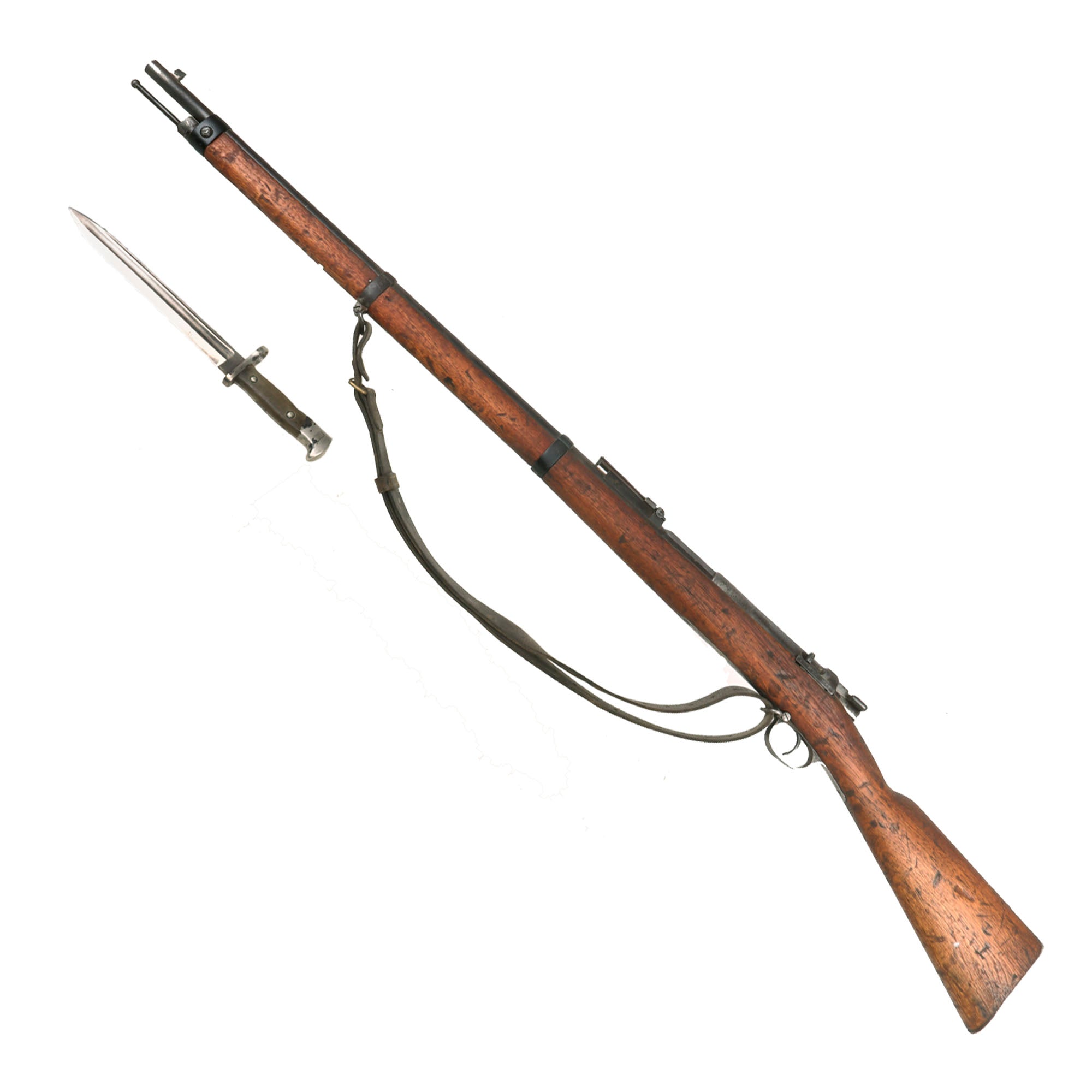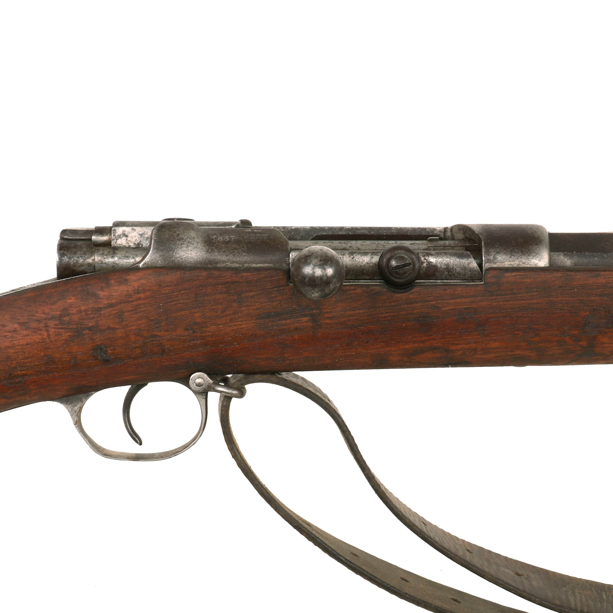 Original Item: Only One Available. This is a very nice service used of the Mauser Model 1871/84 rifle, the first Magazine rifle widely used by the German Empire. It looks to have seen very long service, and is fitted with an M1874/81 dress bayonet, as well as an original sling. It looks very much like this was reissued for use during WWI, as rear echelon troops were often armed with Mauser 1871/84 and Gewehr 88 'Commission' rifles. It has a lovely patina of age that is simply impossible to duplicate.