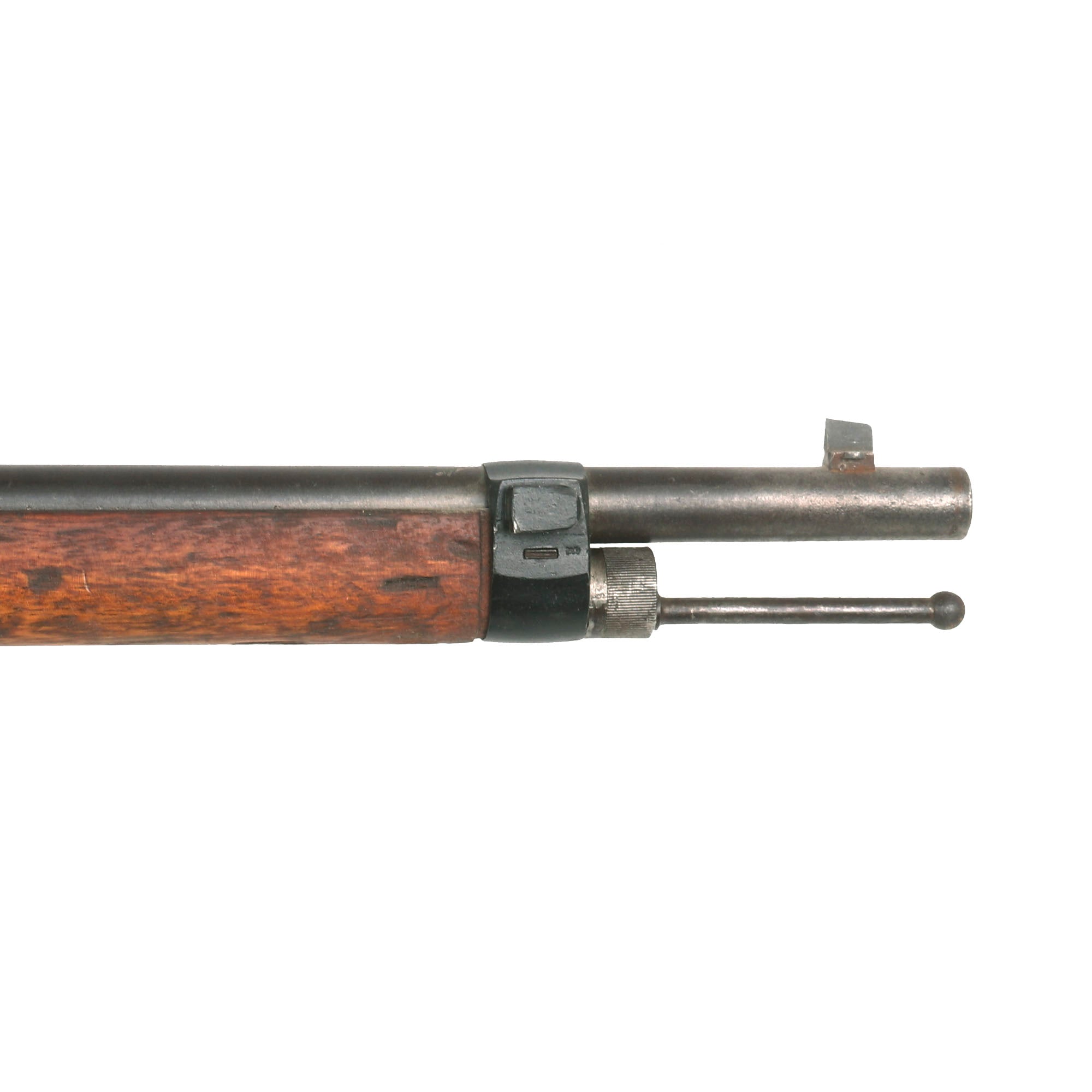 The now well known Mauser "wing" type safety lever was developed for the Gewehr 71. The Gewehr 71 is a conventional looking bolt action chambered in 11mm using black powder cartridges. The action included only a bolt guide rib as its single locking lug, locking forward of the receiving bridge. The original design was a single-shot. The design was updated in 1884 with an 8-round tubular magazine designed by Alfred von Kropatschek, making this Germany's first repeating rifle. This version was designated the Gewehr 1871/84. A version of this repeater was adopted by the Ottoman Empire. Designated the M1887, it differentiated from the M71/84 in that it had a side mounted cleaning rod, a second locking lug on the rear of the bolt, and it was in caliber 9.5×60mmR, which Paul Mauser touted as the most efficient (black powder) cartridge. In the early 20th century a few were converted to 7.65×53mm smokeless by the arsenal in Ankara.
