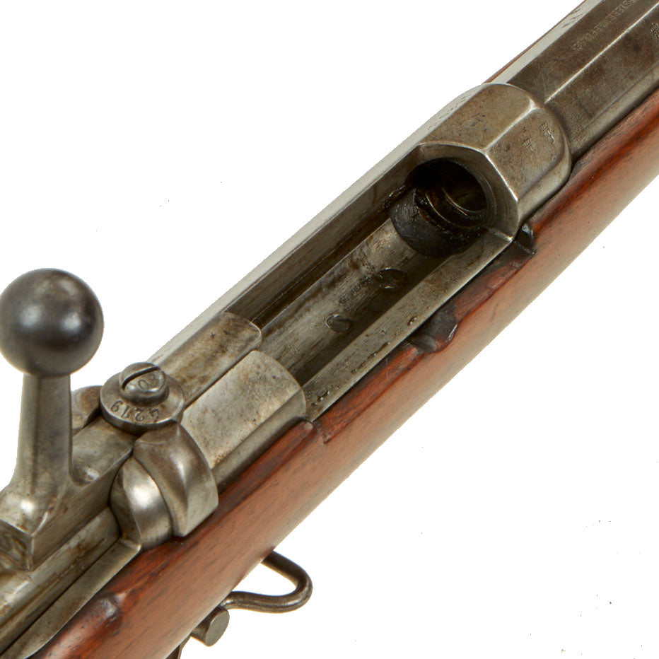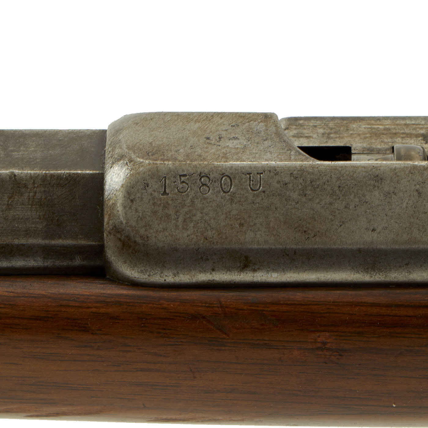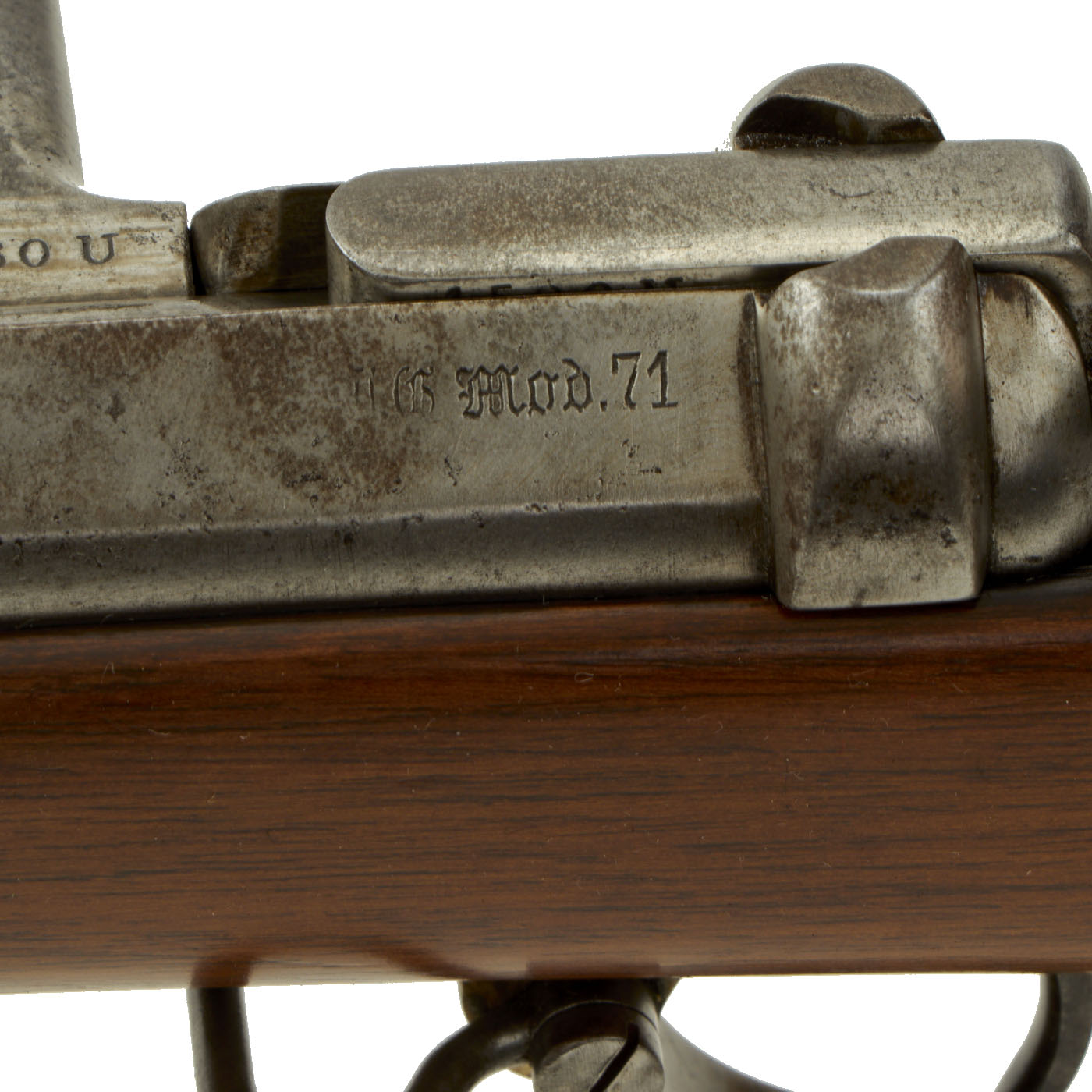Original Item: Only One Available. This is a very nice example of the Mauser Model 1871 Infantry Rifle, manufactured by the famous ŒWG Steyr in Austria. It is covered with Imperial German inspection and acceptance markings on the metalwork. It bears serial number 1580U on the barrel, receiver, bolt, and just about every other part that would have a serial number except for for a few screws, most likely replaced at arsenal.