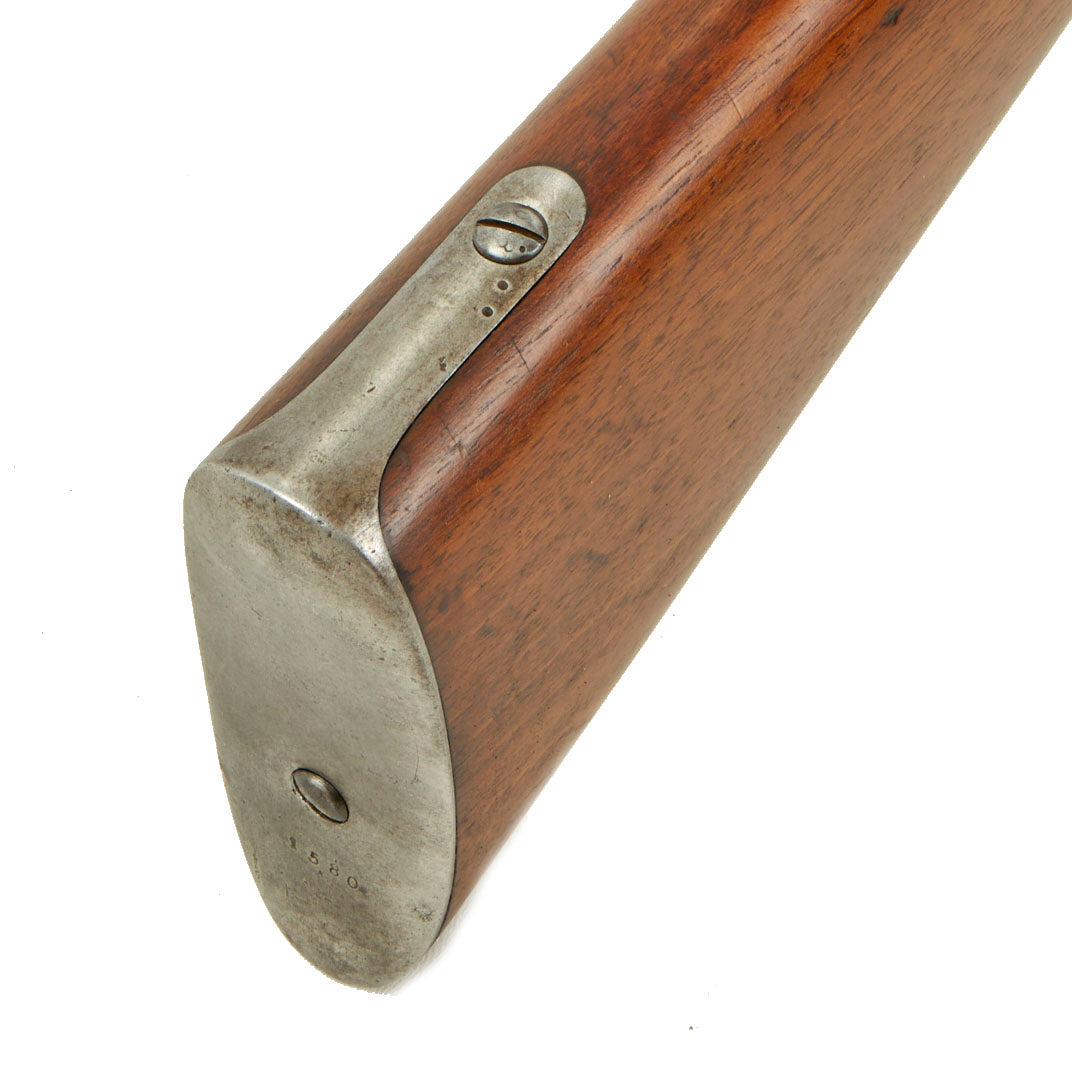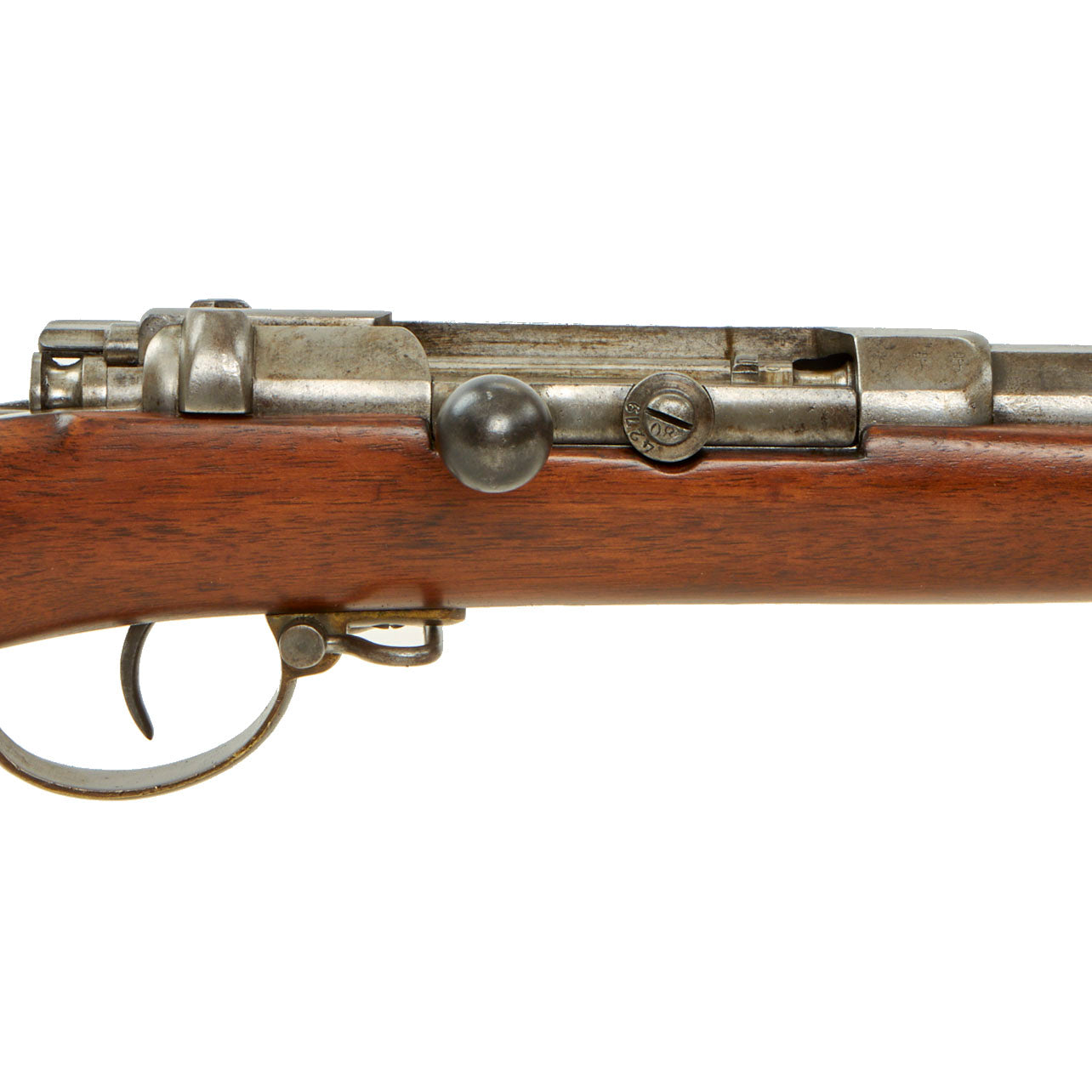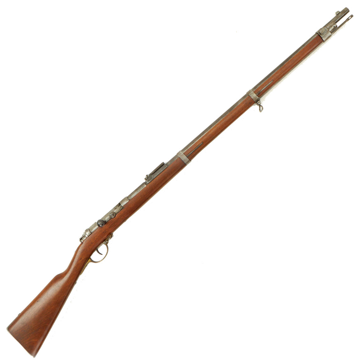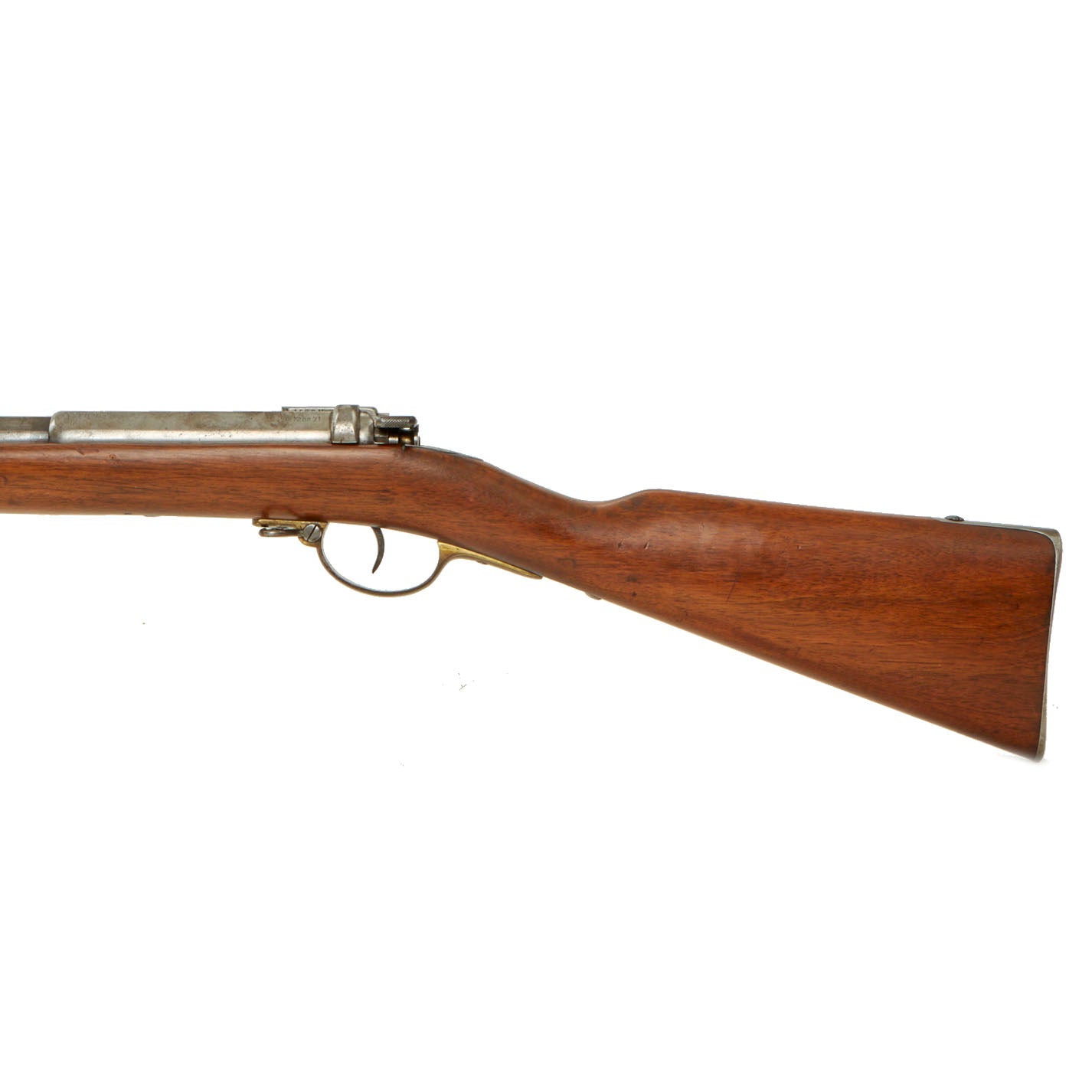 Original Item: Only One Available. This is a very nice example of the Mauser Model 1871 Infantry Rifle, manufactured by the famous ŒWG Steyr in Austria. It is covered with Imperial German inspection and acceptance markings on the metalwork. It bears serial number 1580U on the barrel, receiver, bolt, and just about every other part that would have a serial number except for for a few screws, most likely replaced at arsenal.
