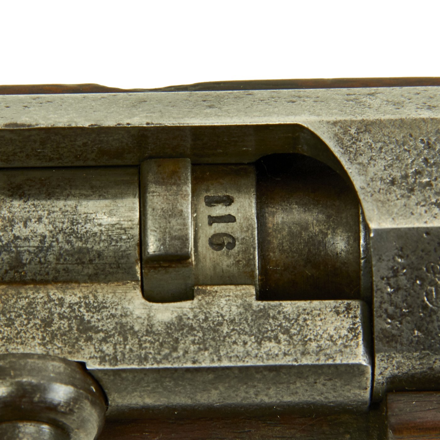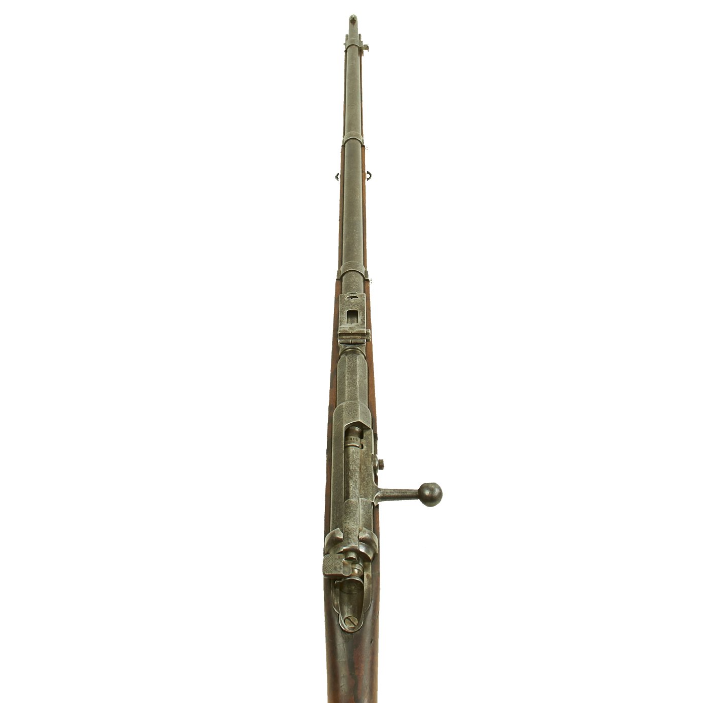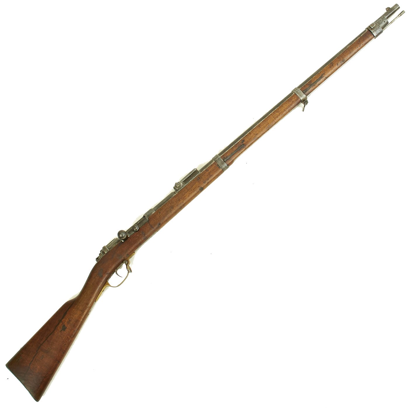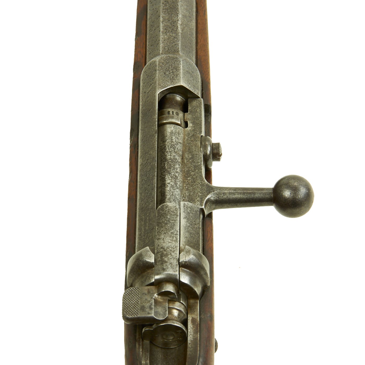 Original Item: Only One Available. This is a very nice example of the Mauser Model 1871 Infantry Rifle, manufactured by the Erfurt Imperial Arsenal in Thuringia. It has lots of Imperial German inspection and acceptance markings, even on the wood stock, though those are faded. It bears serial number 2324 on the barrel, receiver, bolt, sight, and just about every component we can see, except for the bolt head, which has been replaced.