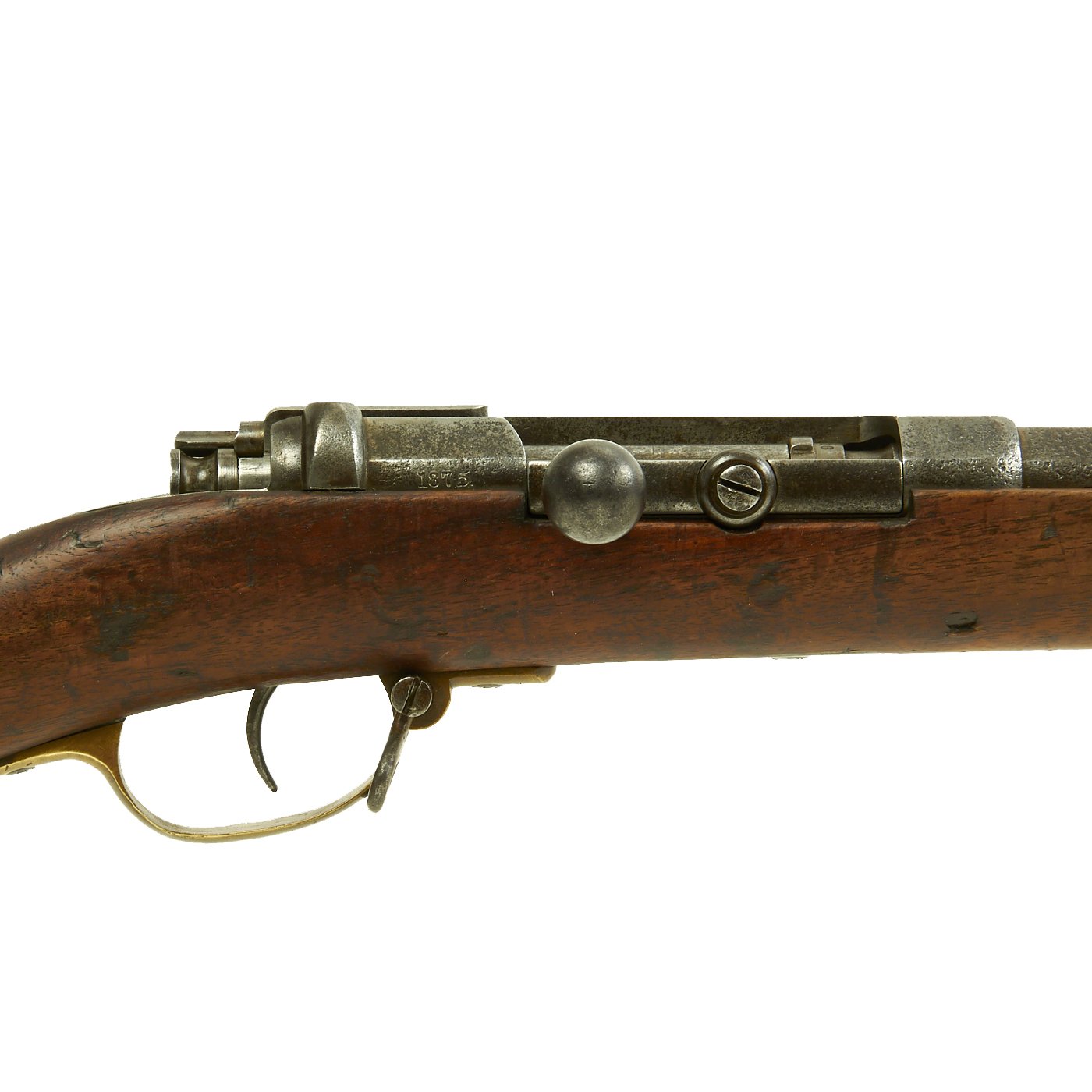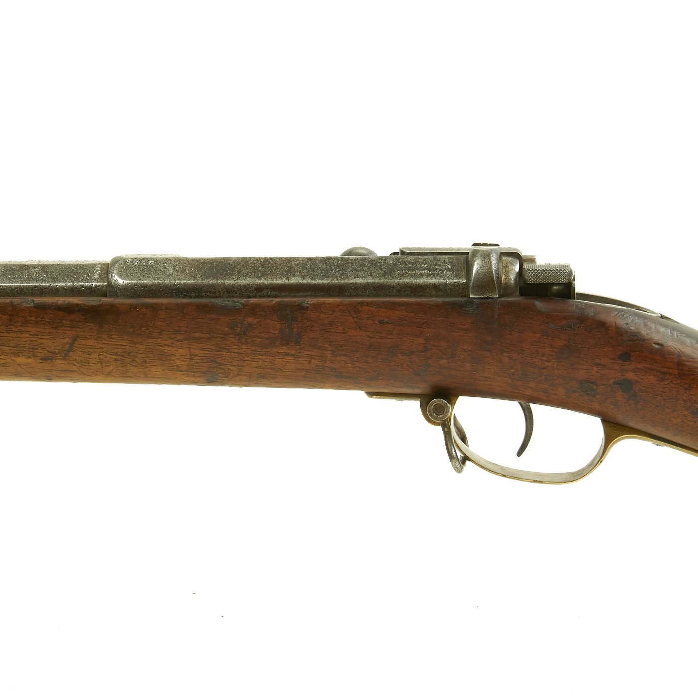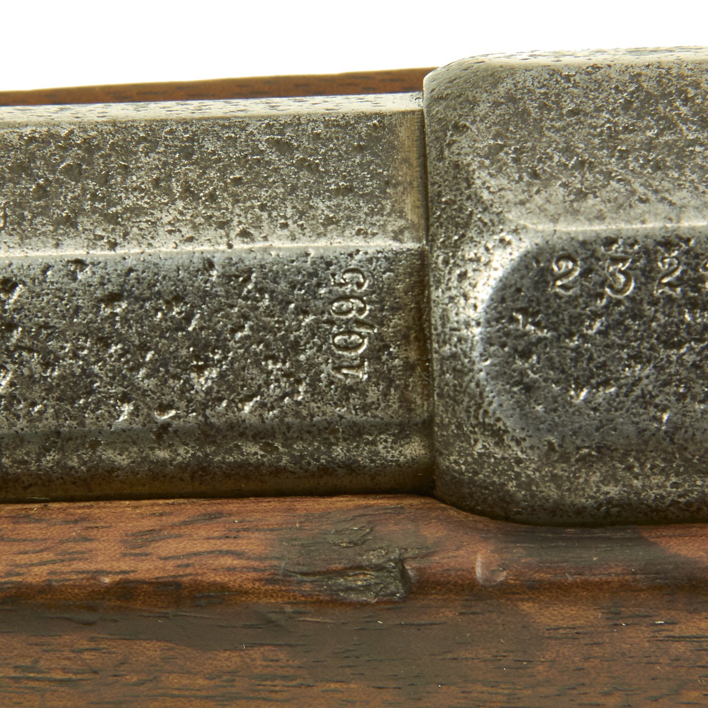 Original Item: Only One Available. This is a very nice example of the Mauser Model 1871 Infantry Rifle, manufactured by the Erfurt Imperial Arsenal in Thuringia. It has lots of Imperial German inspection and acceptance markings, even on the wood stock, though those are faded. It bears serial number 2324 on the barrel, receiver, bolt, sight, and just about every component we can see, except for the bolt head, which has been replaced.