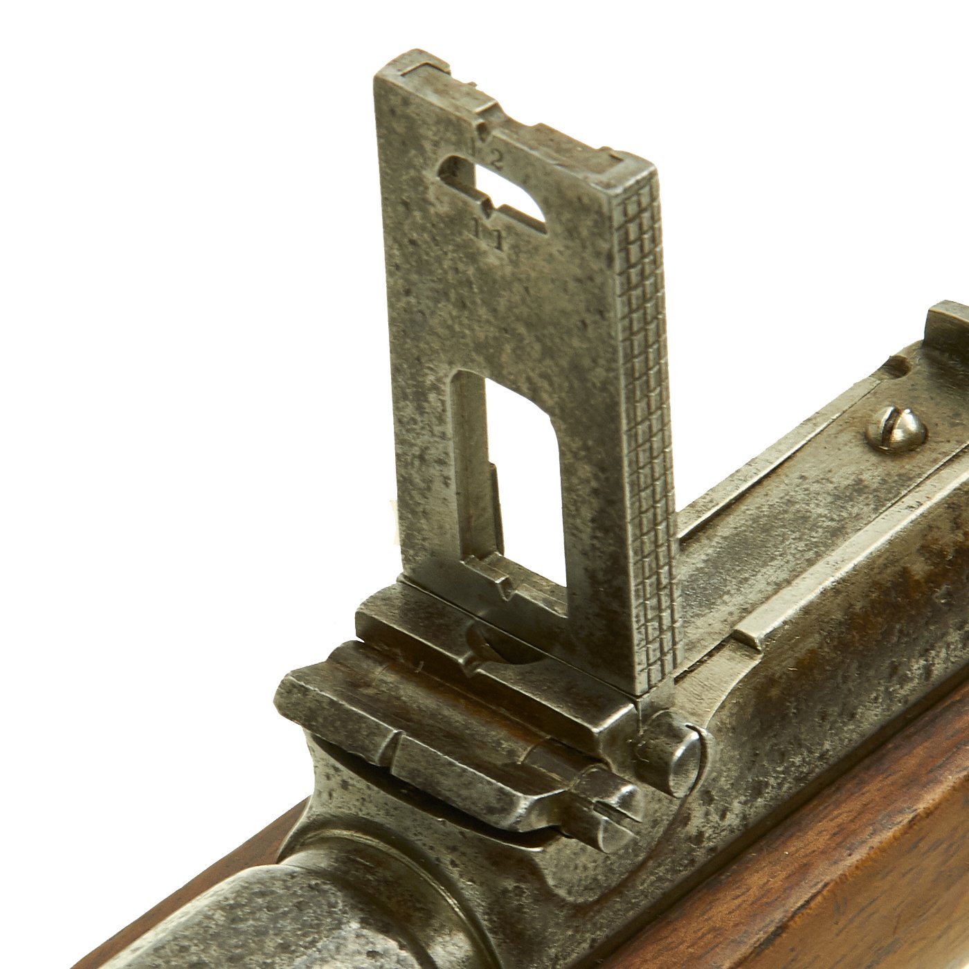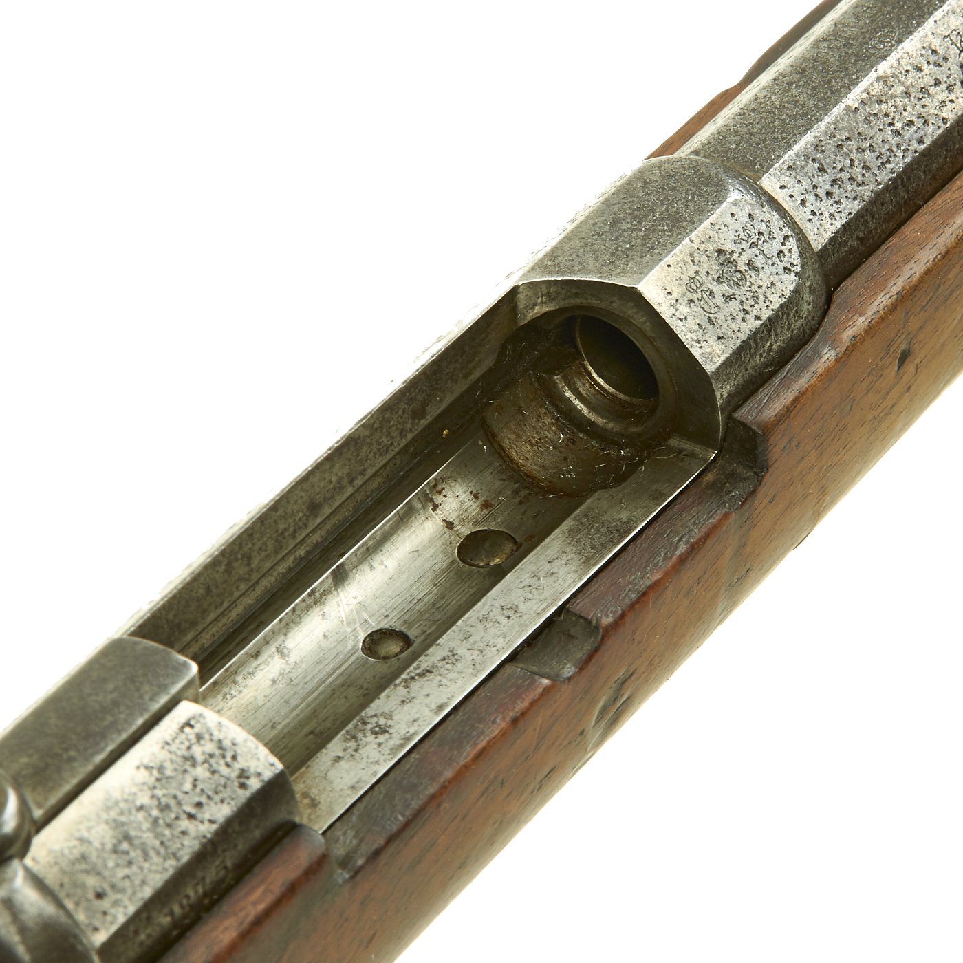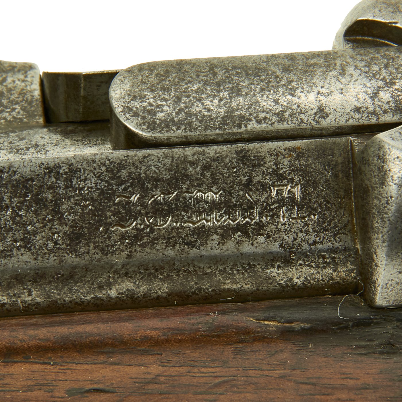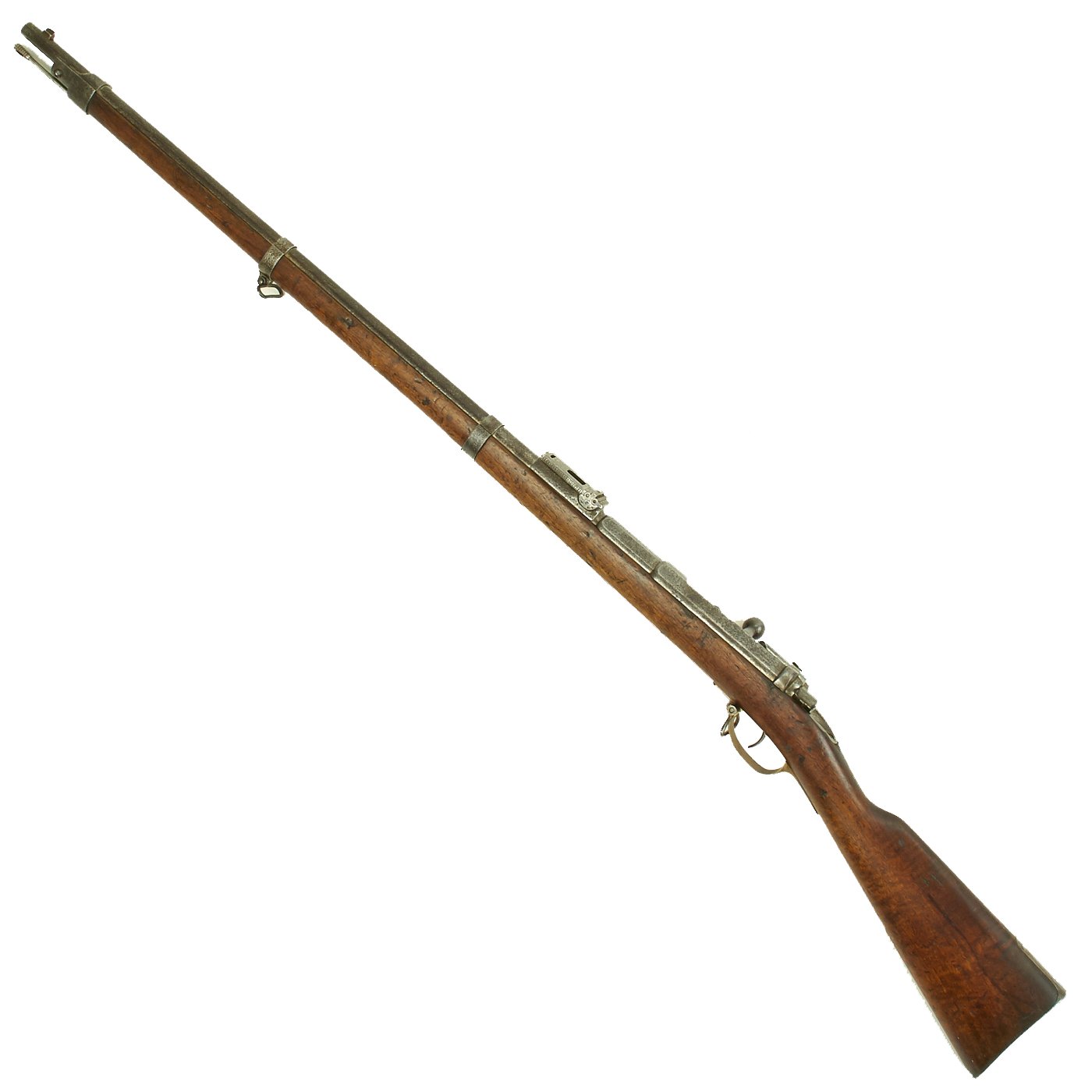 Original Item: Only One Available. This is a very nice example of the Mauser Model 1871 Infantry Rifle, manufactured by the Erfurt Imperial Arsenal in Thuringia. It has lots of Imperial German inspection and acceptance markings, even on the wood stock, though those are faded. It bears serial number 2324 on the barrel, receiver, bolt, sight, and just about every component we can see, except for the bolt head, which has been replaced.