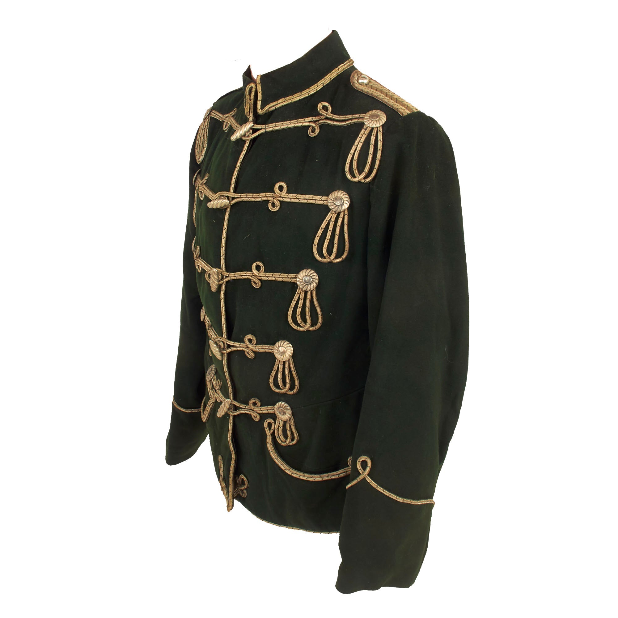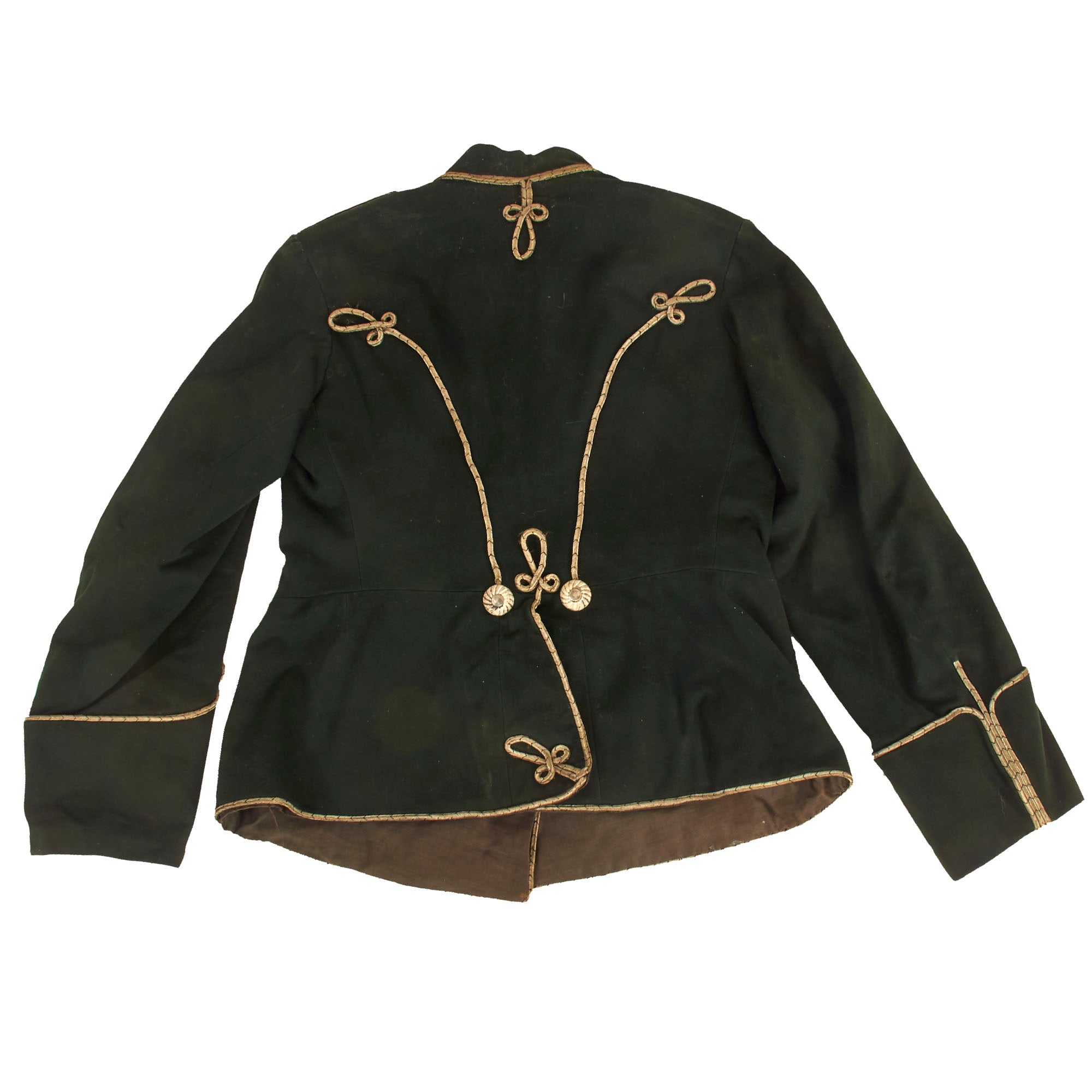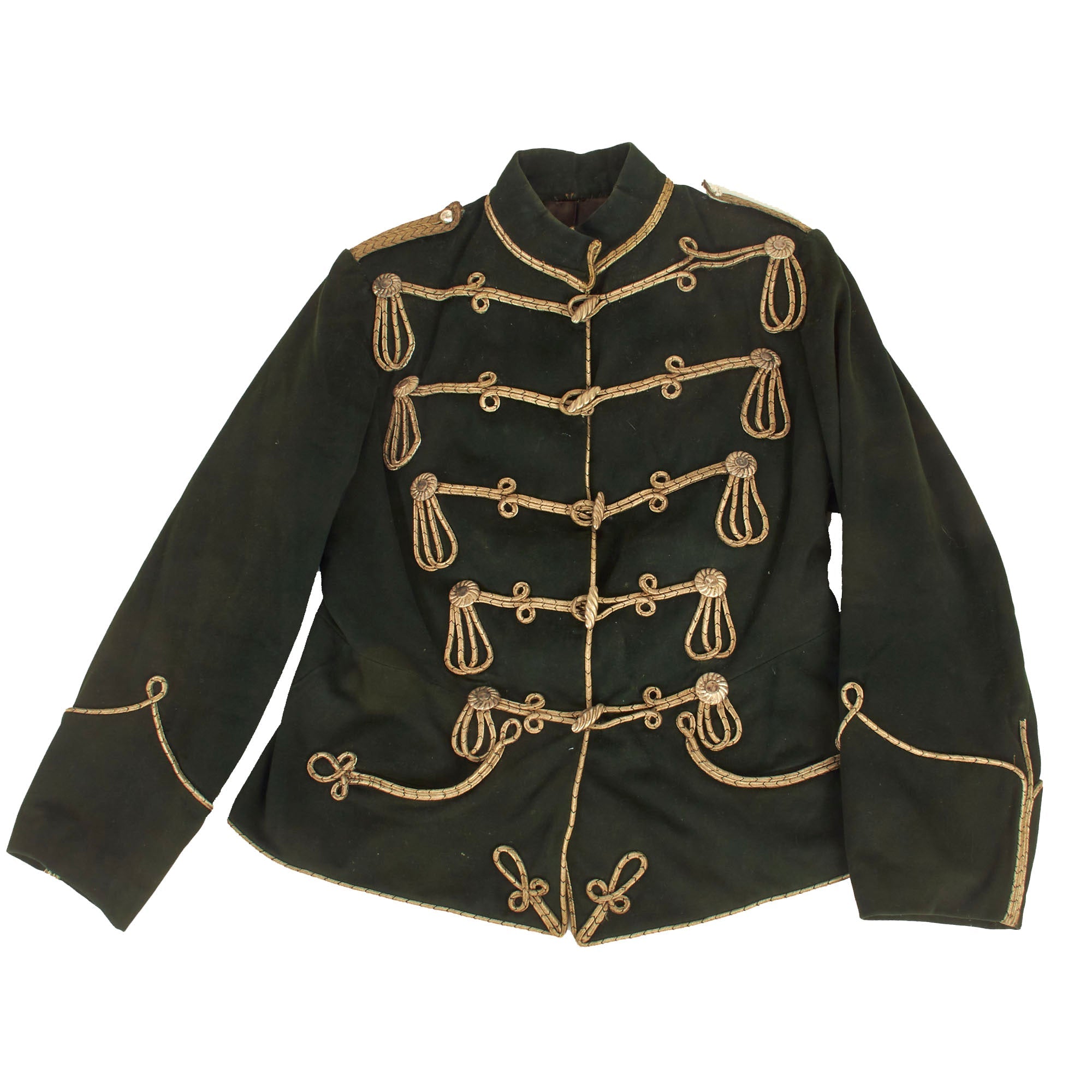 Original Item: Only One Available. This is a fantastic pre-war Atilla, as worn by a member of an Imperial German Hussar regiment. There are no requirement identifiers on the tunic, just number 2 buttons on the shoulders. The attila is an elaborately braided Hungarian shell-jacket or short coat, decorated with lace and knots. Historically it was part of the uniform of the Hungarian cavalry known as hussars (or huszárs). It was a part of the everyday wear of rural men as well as members of the nobility and officials.