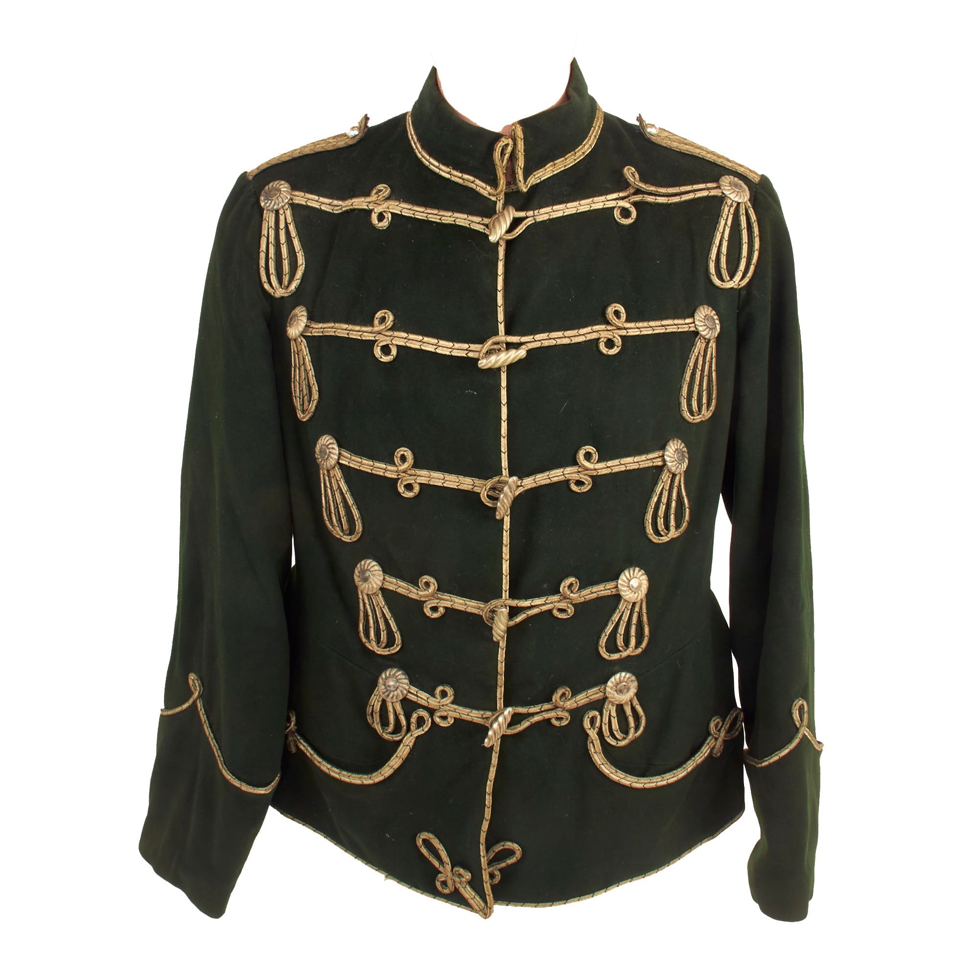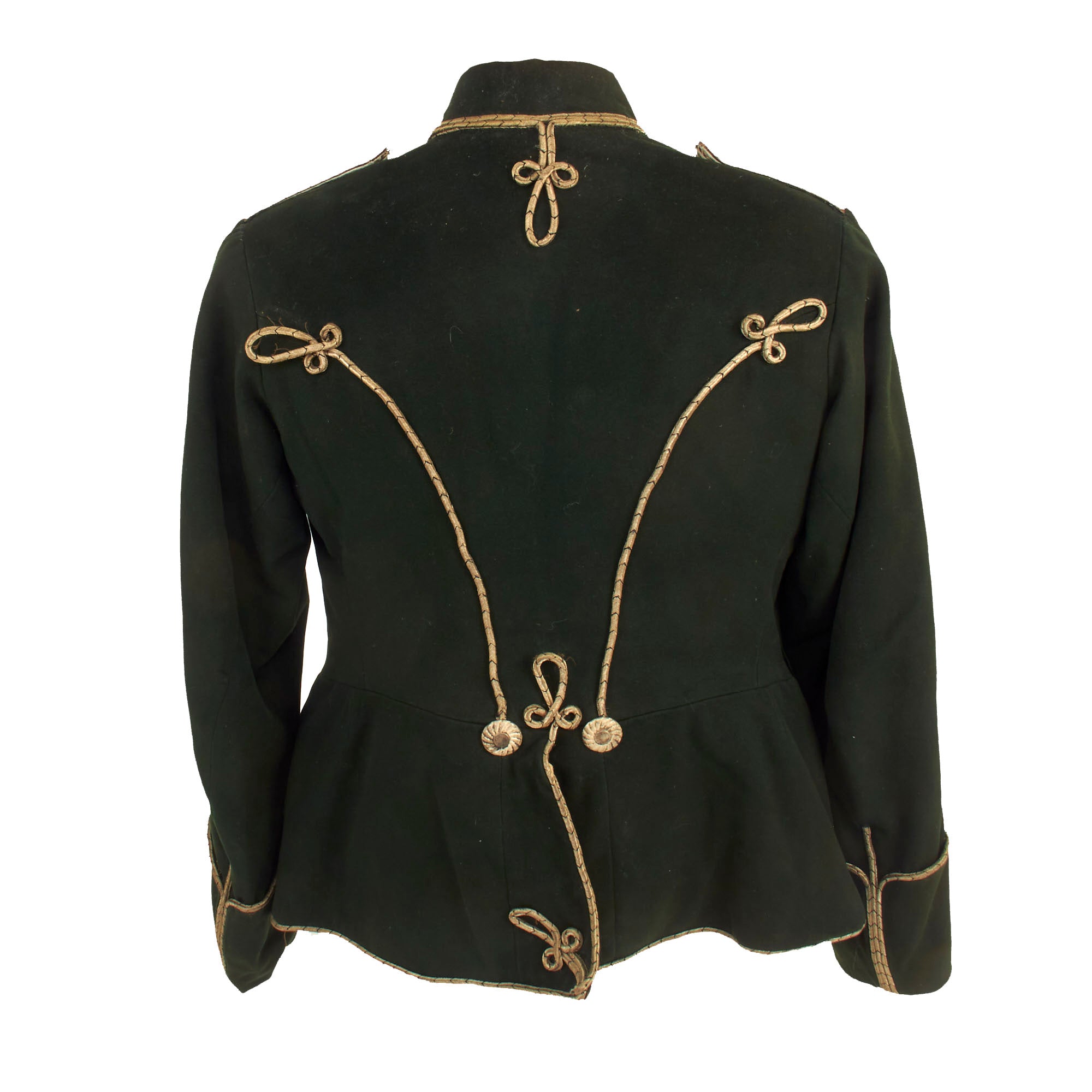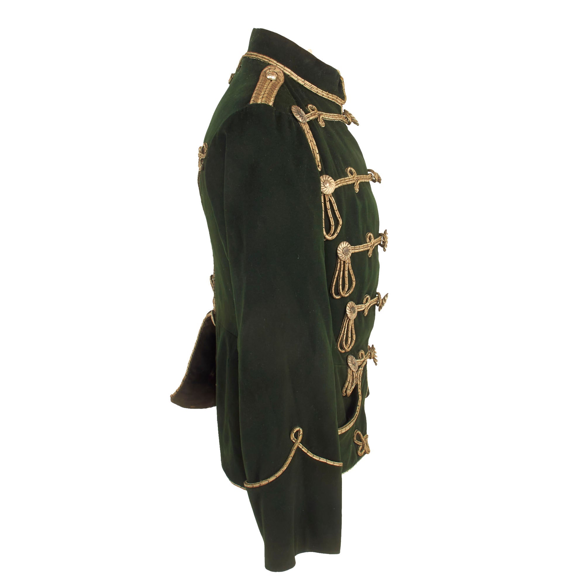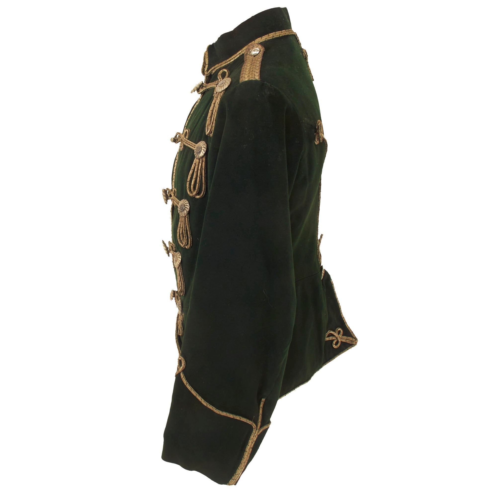 Original Item: Only One Available. This is a fantastic pre-war Atilla, as worn by a member of an Imperial German Hussar regiment. There are no requirement identifiers on the tunic, just number 2 buttons on the shoulders. The attila is an elaborately braided Hungarian shell-jacket or short coat, decorated with lace and knots. Historically it was part of the uniform of the Hungarian cavalry known as hussars (or huszárs). It was a part of the everyday wear of rural men as well as members of the nobility and officials.