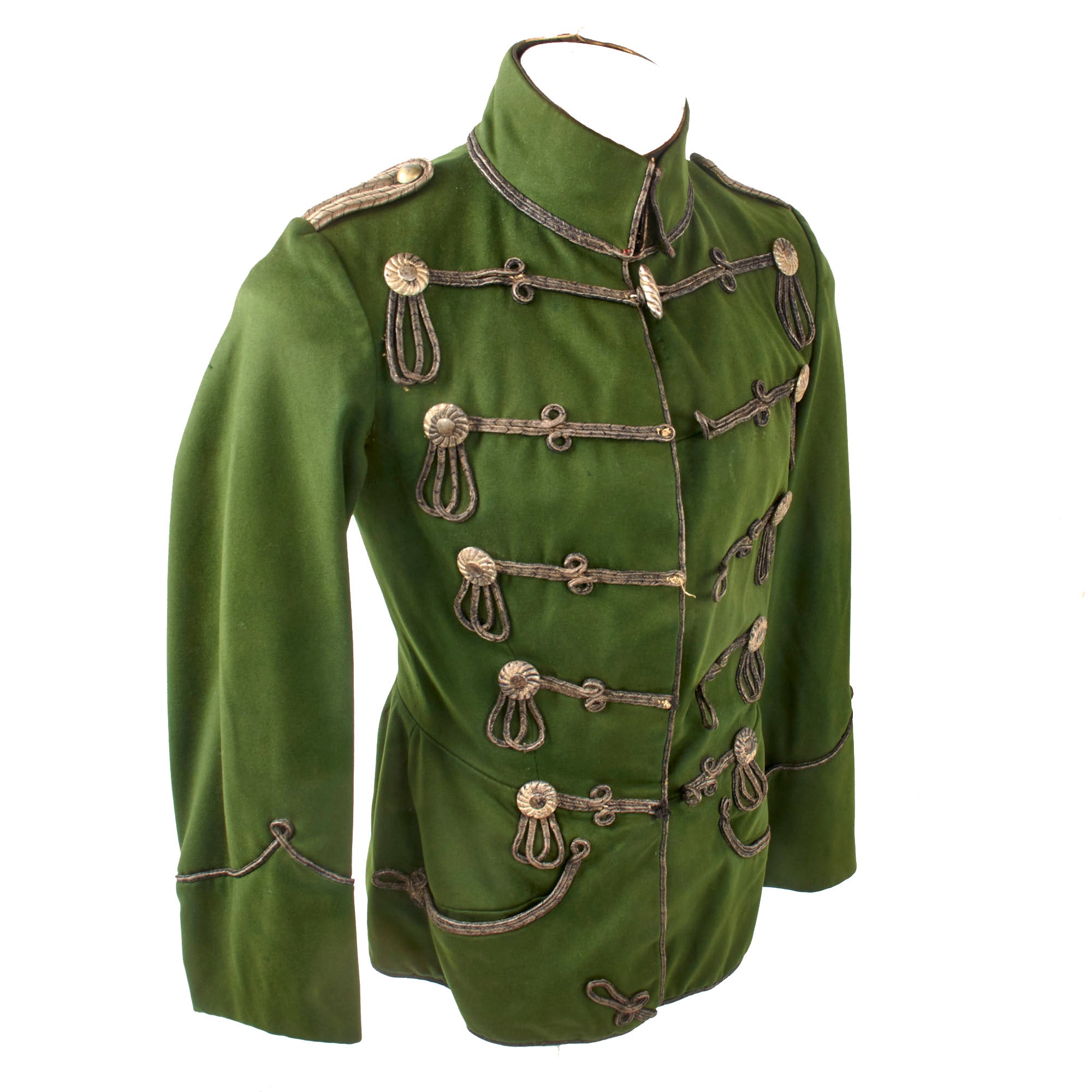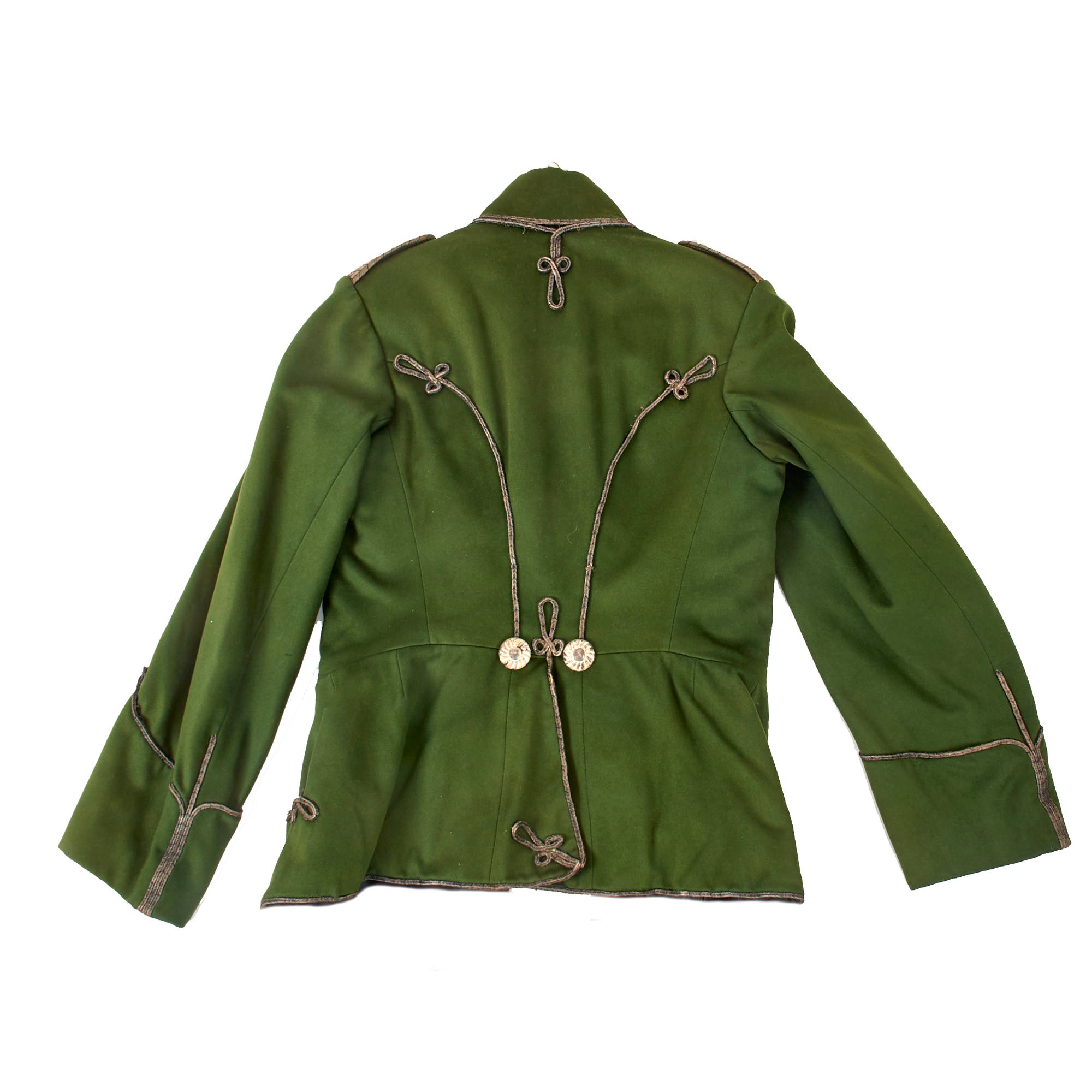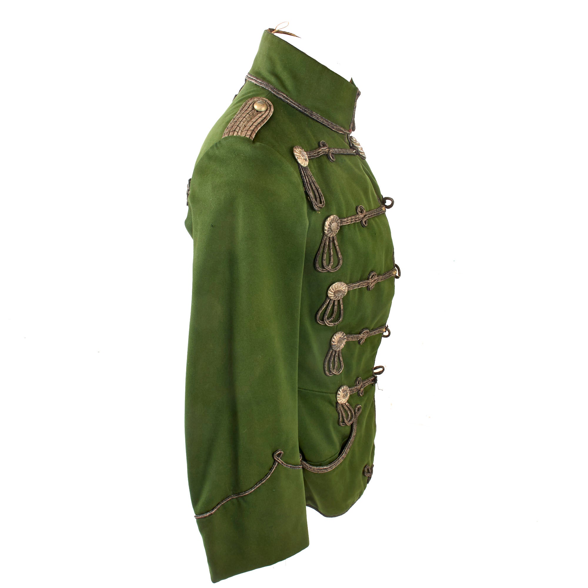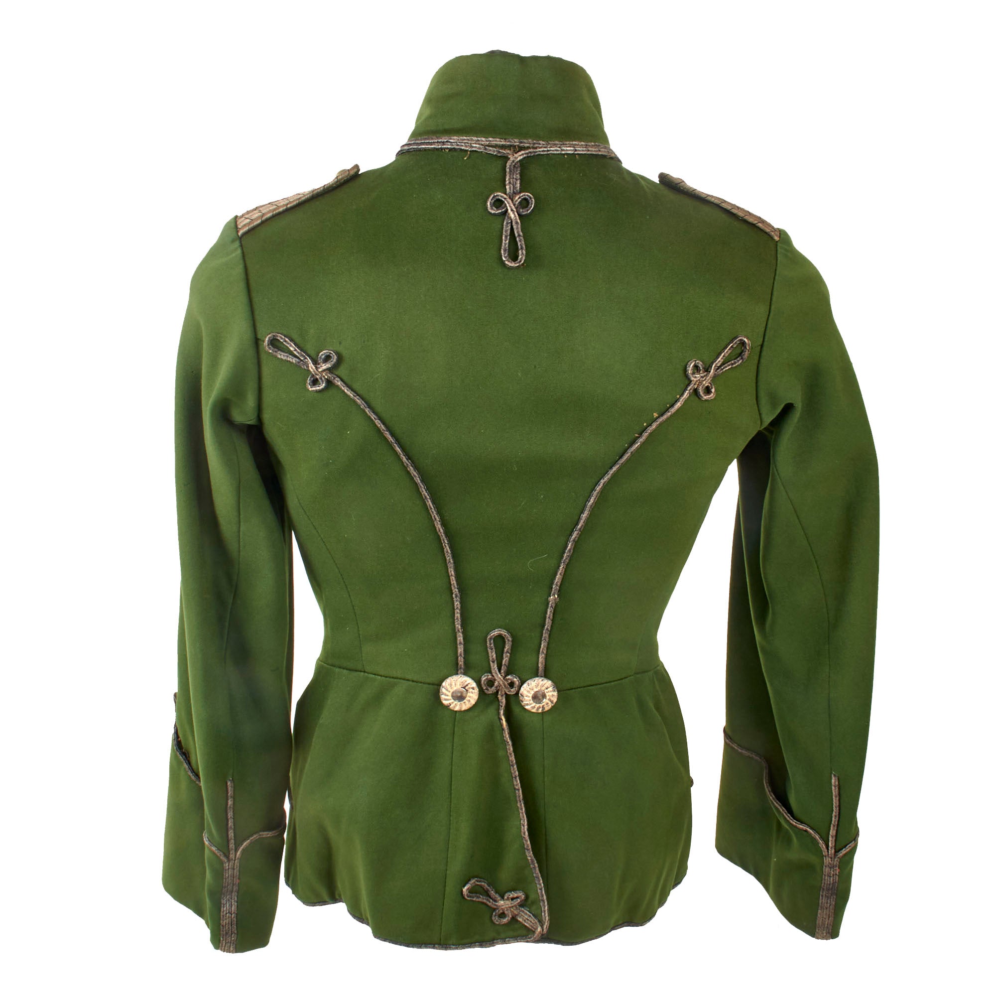 Original Item: Only One Available. This is a fantastic pre-war Atilla, as worn by a member of an Imperial German Hussar regiment. There are no requirement identifiers on the tunic, just number 2 buttons on the shoulders. The attila is an elaborately braided Hungarian shell-jacket or short coat, decorated with lace and knots. Historically it was part of the uniform of the Hungarian cavalry known as hussars (or huszárs). It was a part of the everyday wear of rural men as well as members of the nobility and officials.