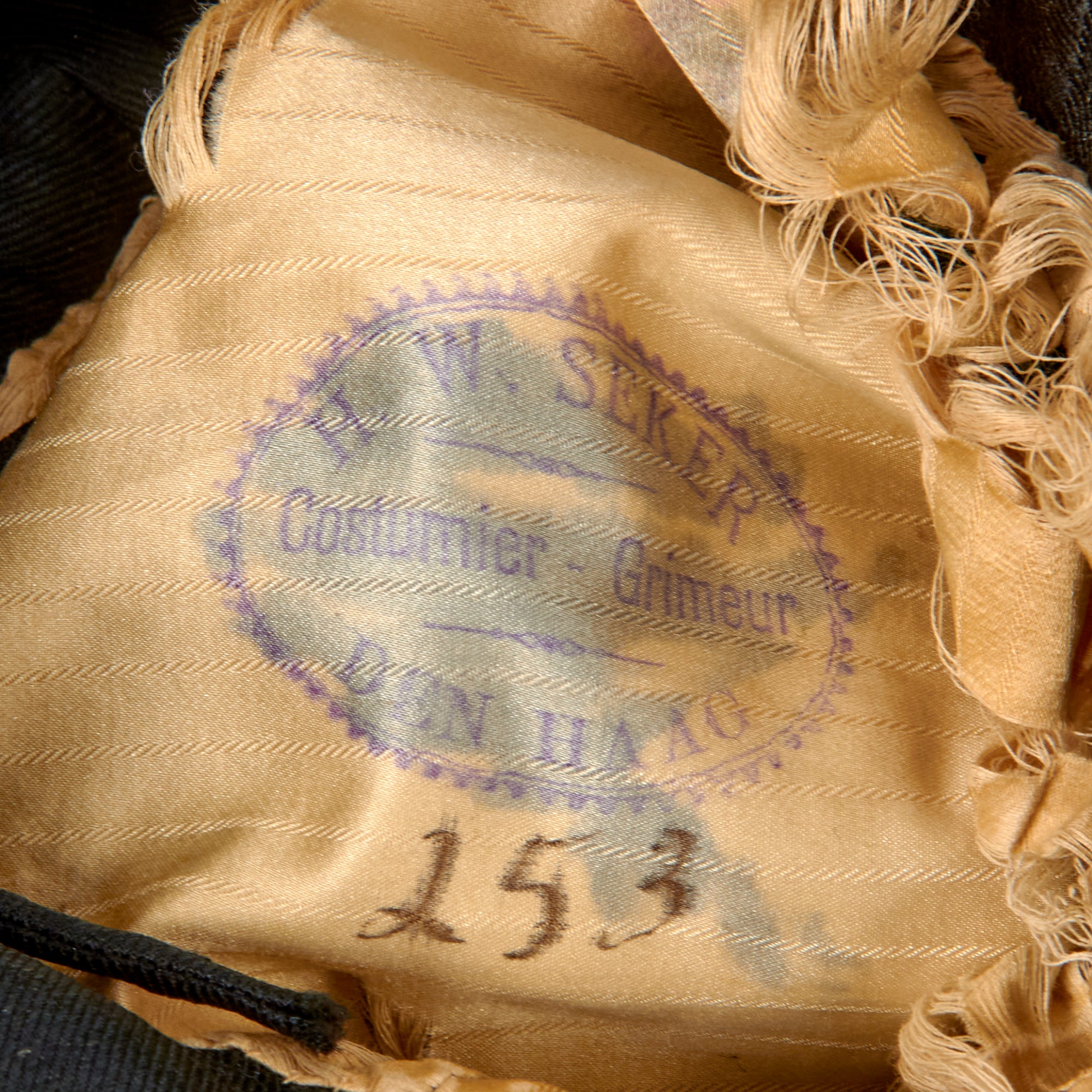 The interior sleeve shows a stamp from a costumer house in Den Haag, the Netherlands. This is from later in the uniform's life when it looks to have been used in plays or movies. Costumier - Grimeur is Costumer - Make-up artist.