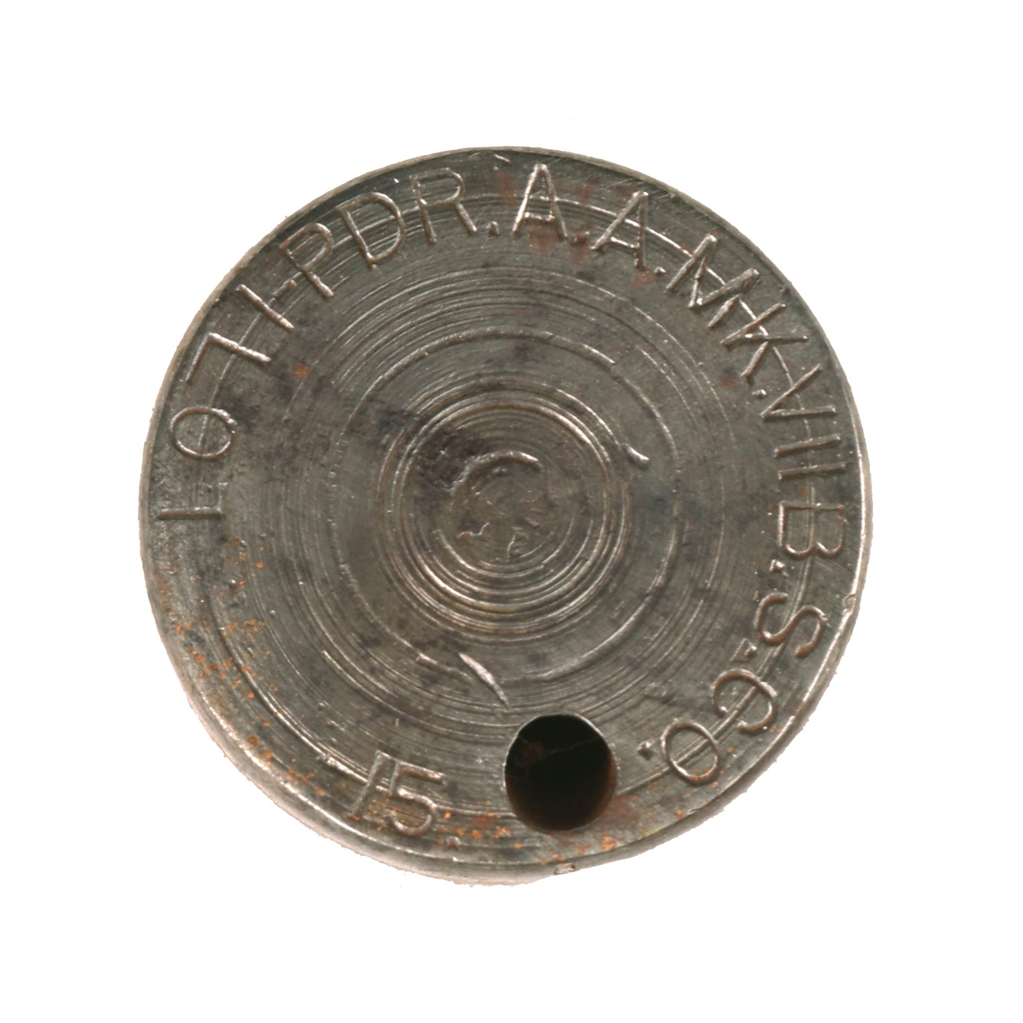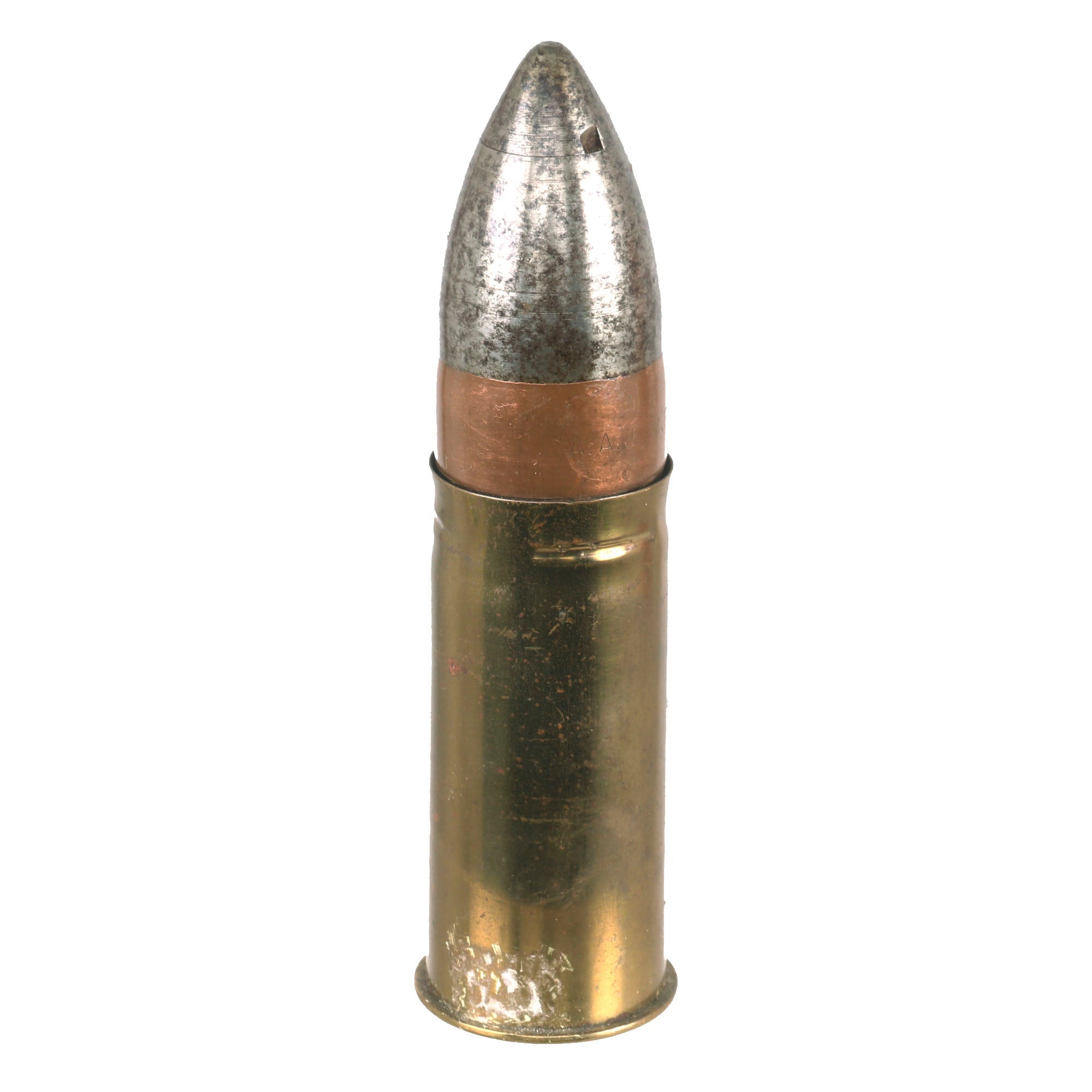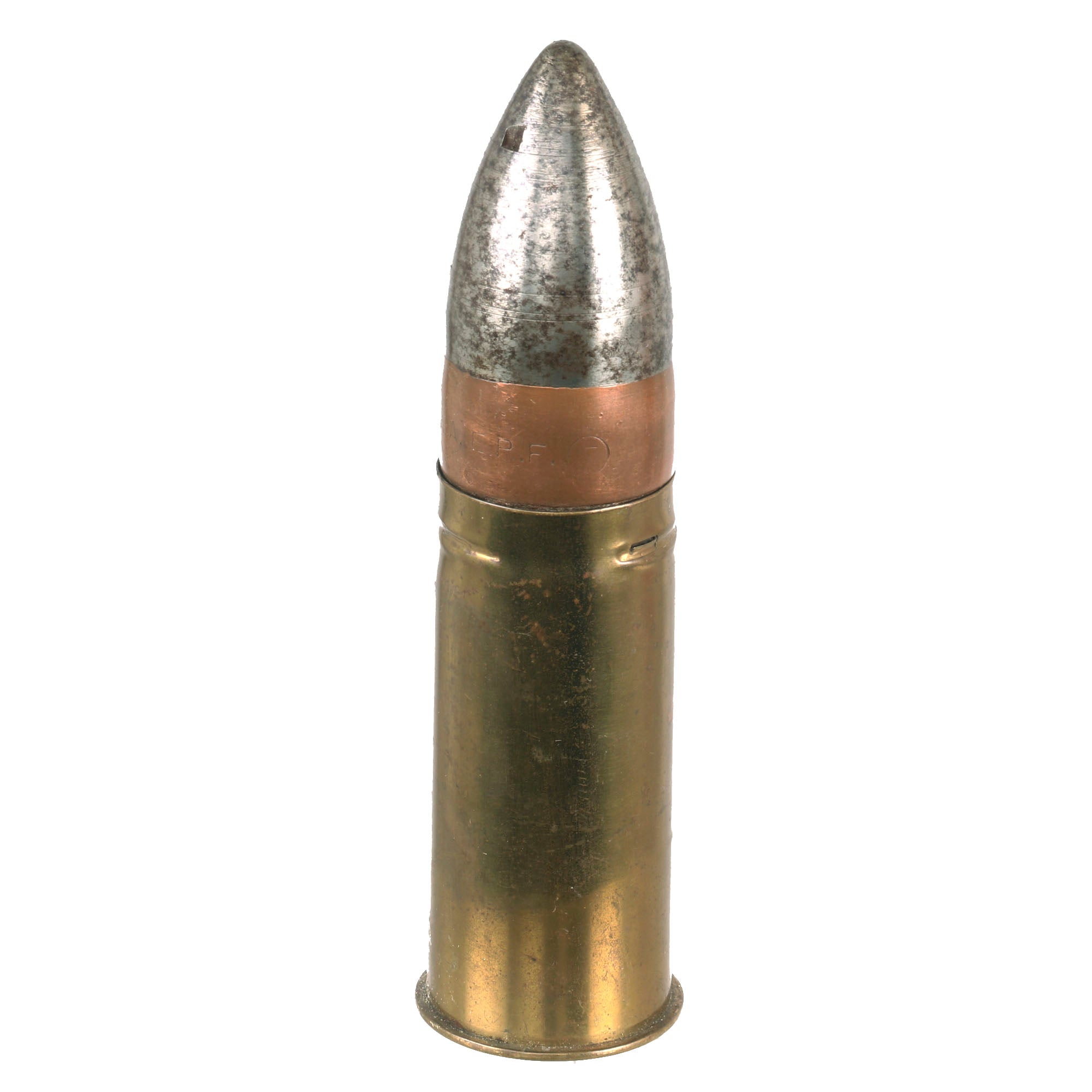 The shell measures roughly 6½” tall with a base diameter of 1¾”. The middle band of the shell is marked A.A.E.P.F. and the bottom of the shell is marked
