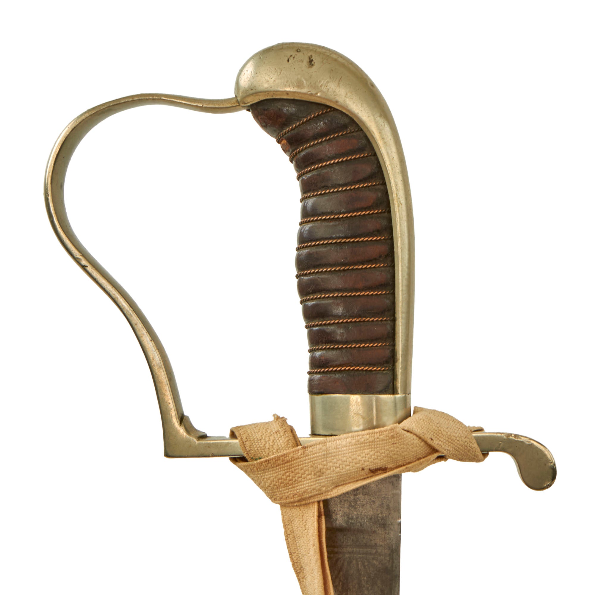 The sword has a wire-wrapped leather grip which is well-retained. There is an original sword knot wrapped around the guard of the sword, which appears to have always been present.