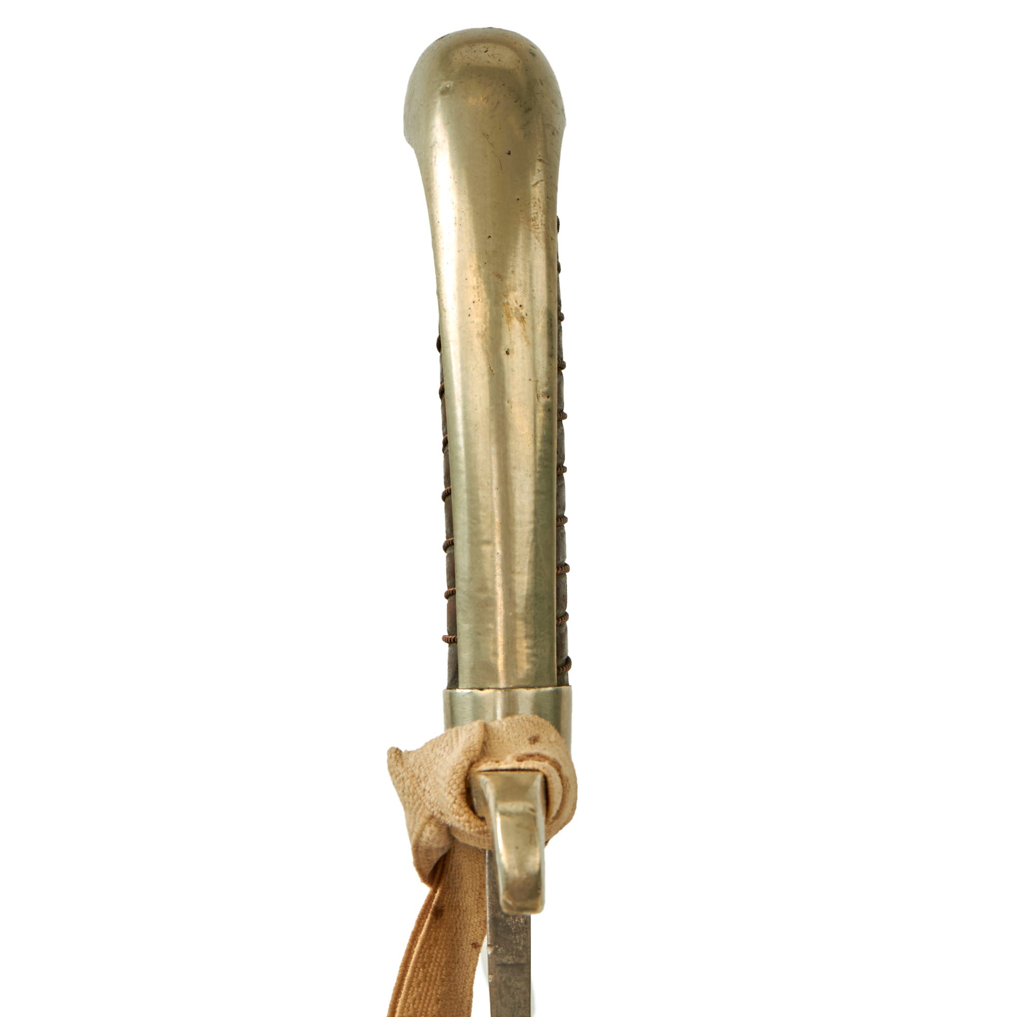 Original Item. Only One Available. This is a very interesting Imperial German short sword, which could possibly be a police short sword. The blade is 18” long with an overall length of 22⅞”. The blade retains some of its original etching but it is very faint, and there is no maker’s mark we could find. The sword may be a cut-down, but we aren’t sure what the sword would have originally been either.