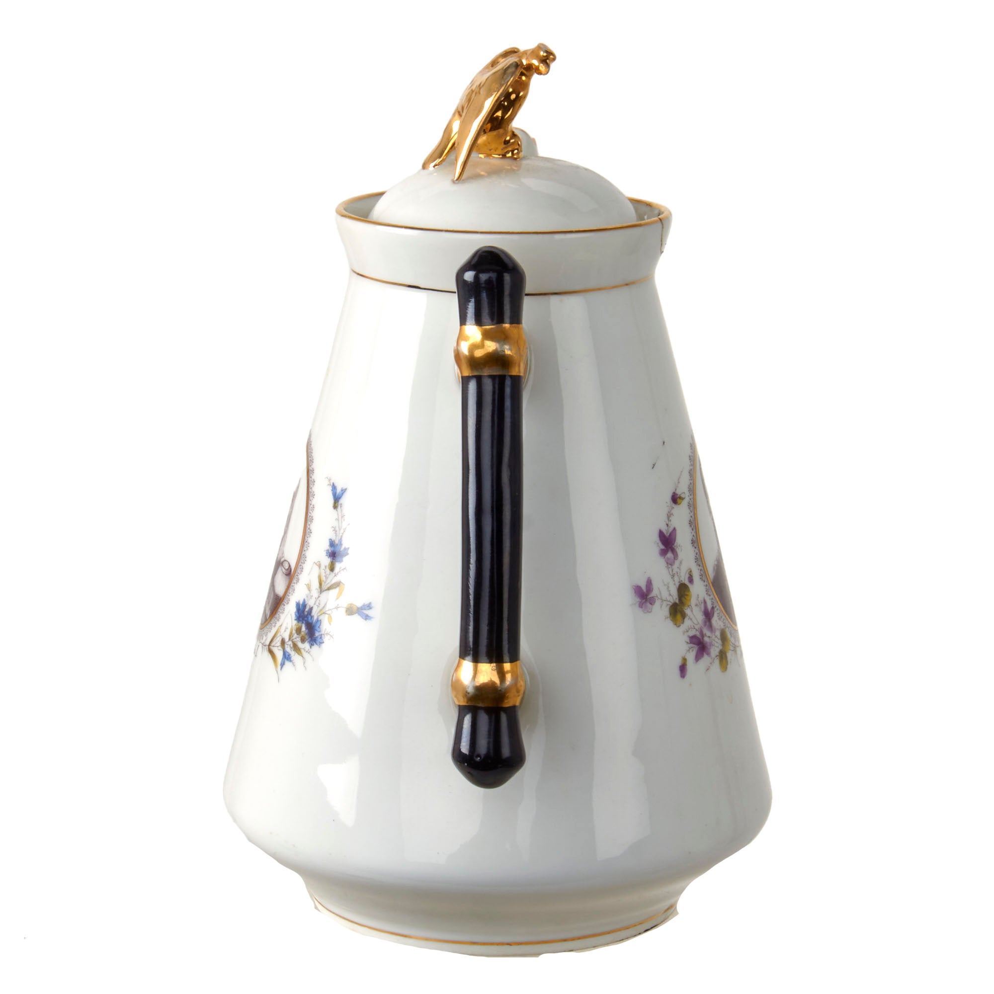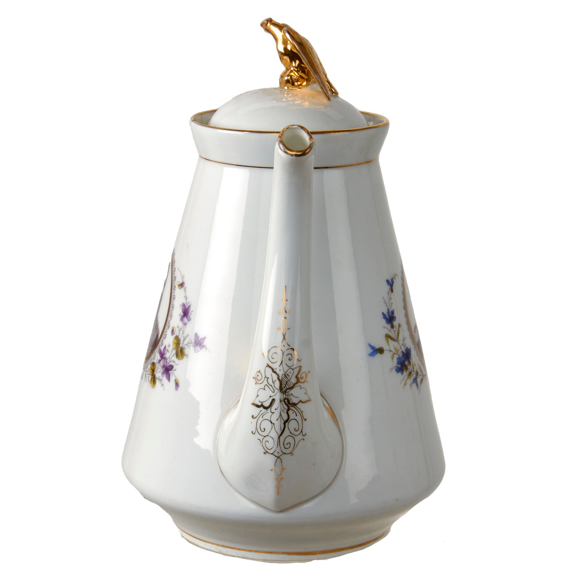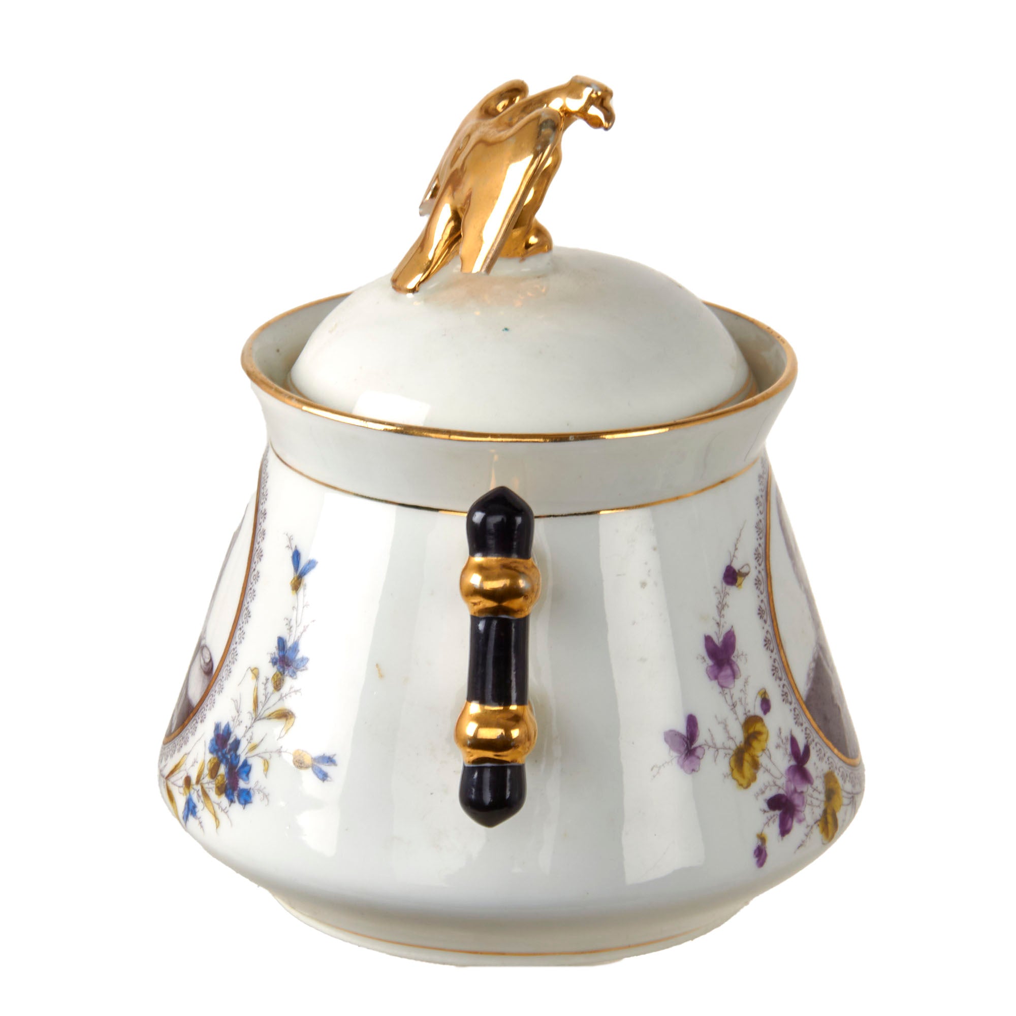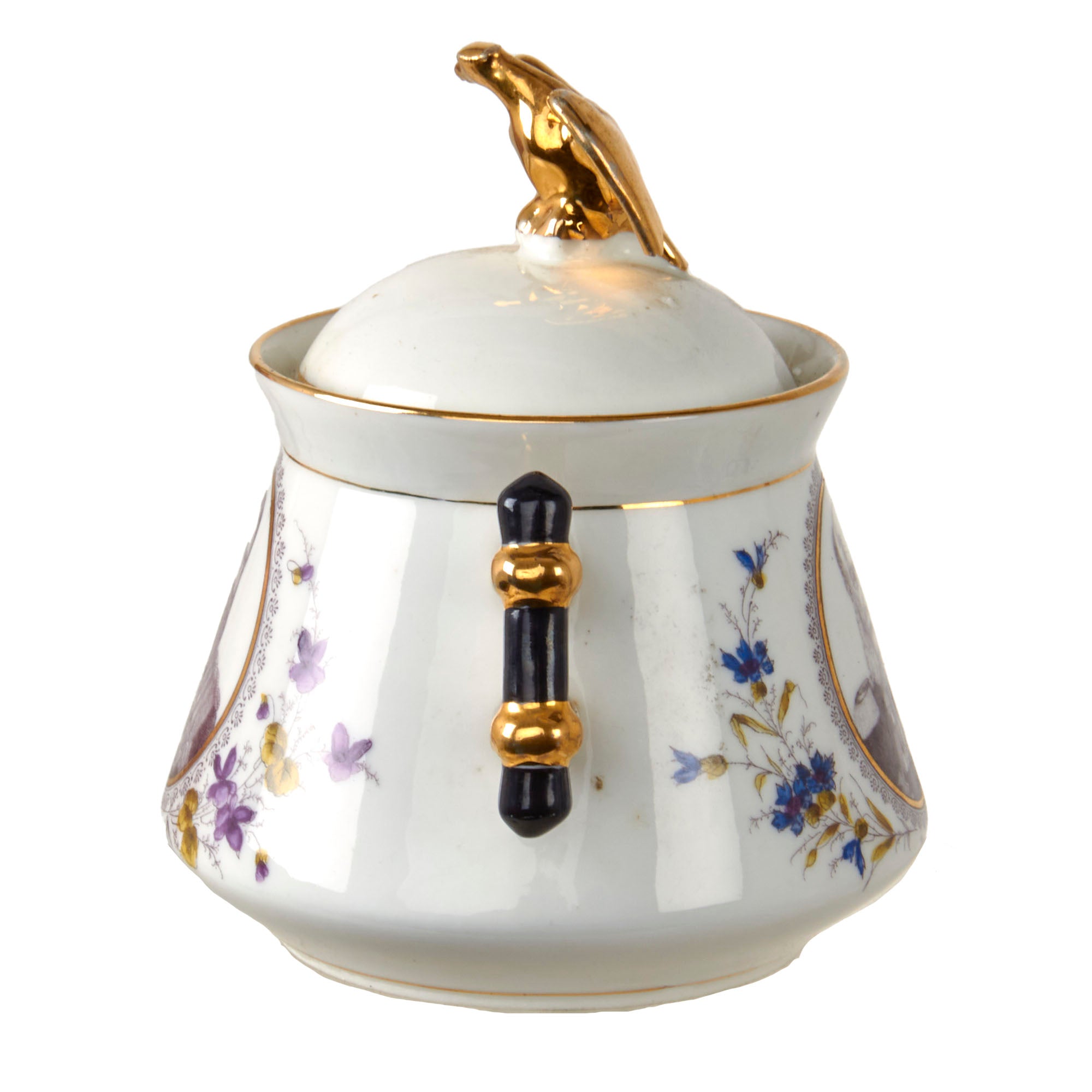 Original Items. Only One Set Available. This is an outstanding Imperial German tea set consisting of a porcelain teapot, sugar bowl, and three teacups depicting Wilhelm I, Friedrich III, and Wilhelm II. There are some minor chips and a repair in the teapot, but for a set that dates to the late 1890s - early 1900s, it has held up incredibly well. Both the lid of the teapot and sugar bowl have a gorgeous gold-painted Imperial Eagle at the top.
