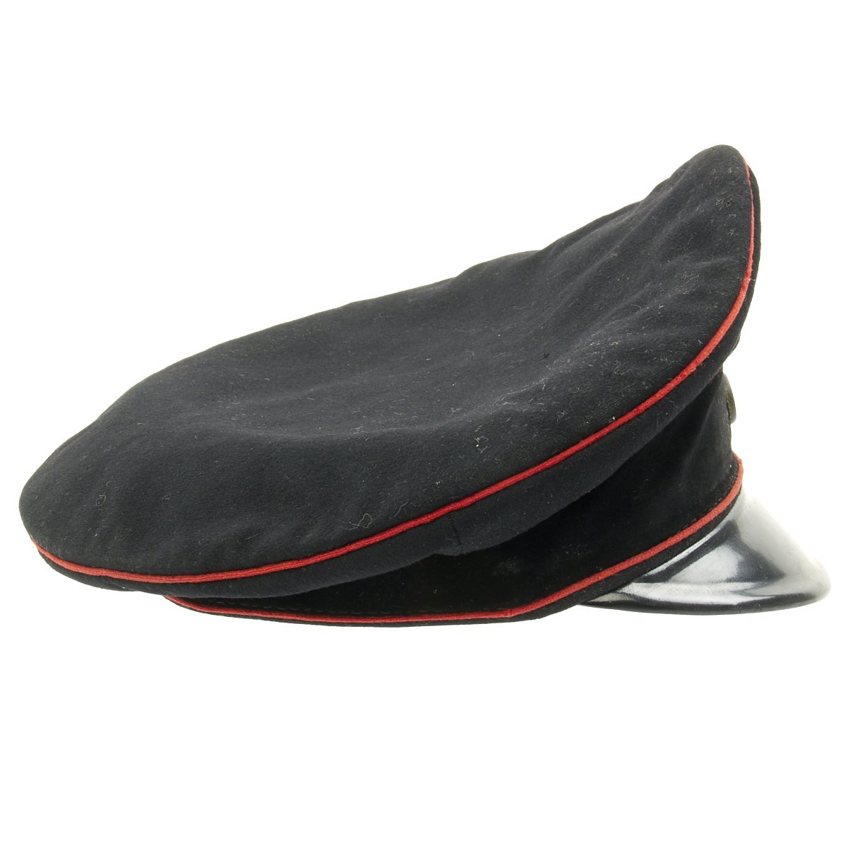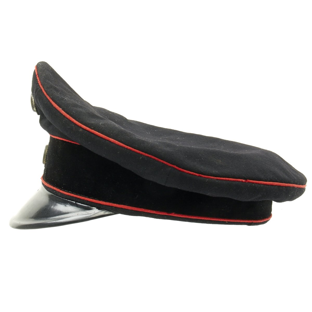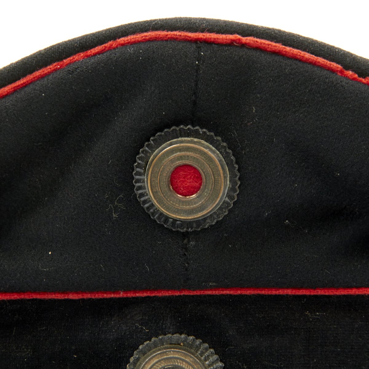 Original Item: Only one available. Imperial German officer's schirmmütze (visor cap) of the Prussian Versuchskompanie (Motorized), (later Kraftfahr Battalion). Constructed of dark blue wool with black cap band and red piping along with metal cockade and interior lining. Size is approximately US 7 (56cm). A wonderful text book genuine example!
