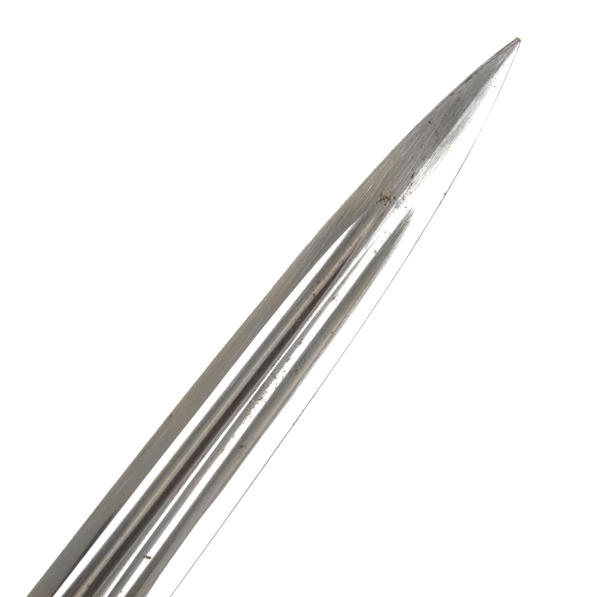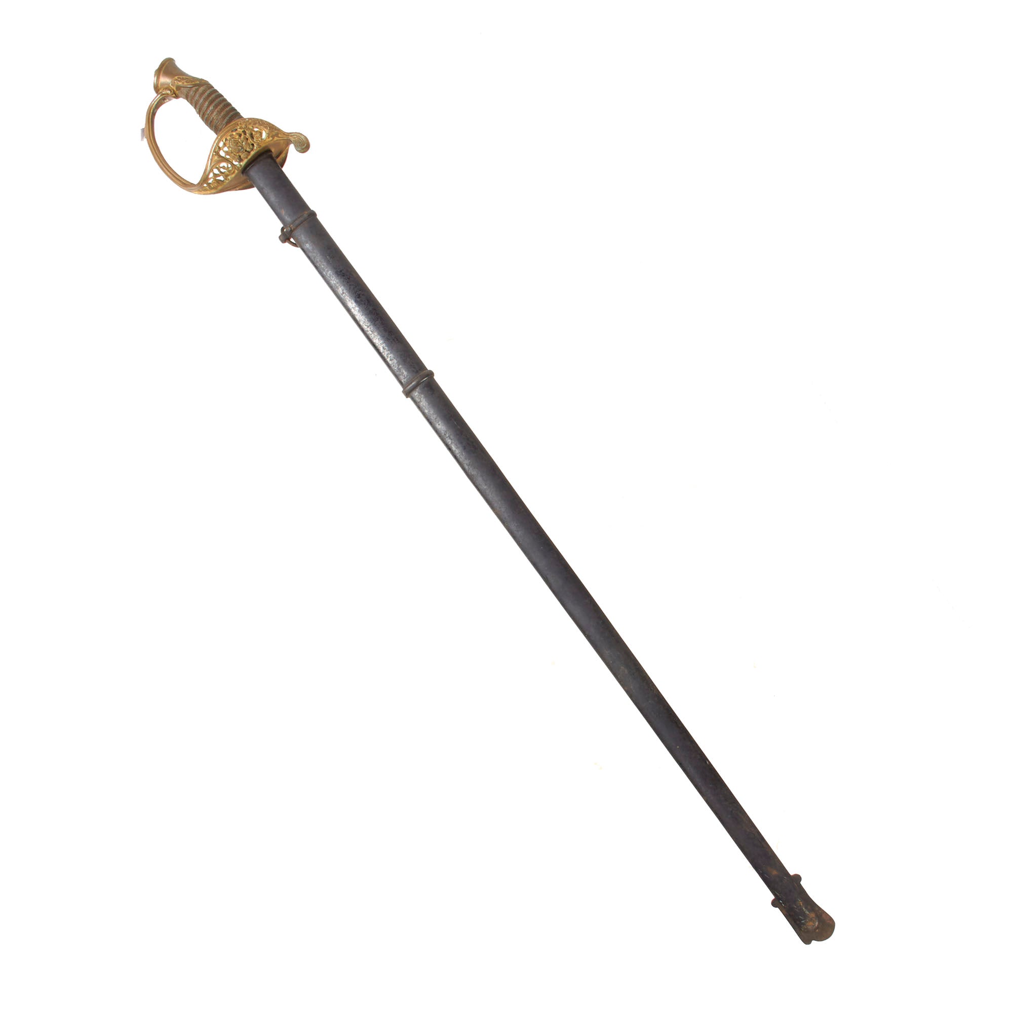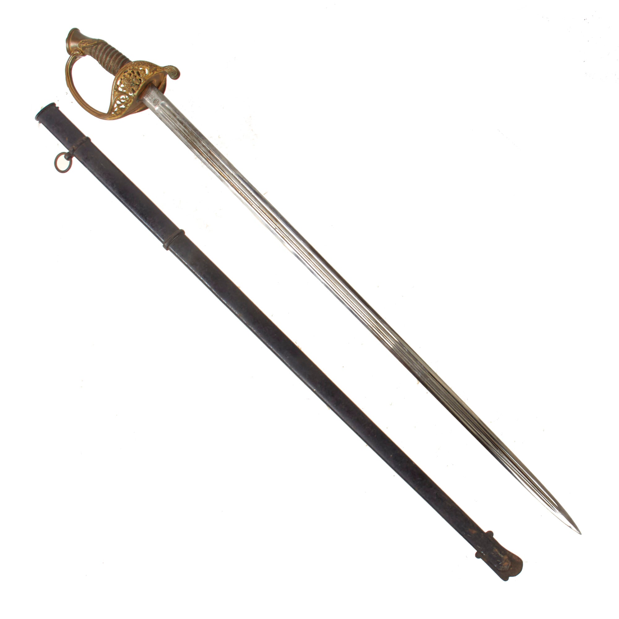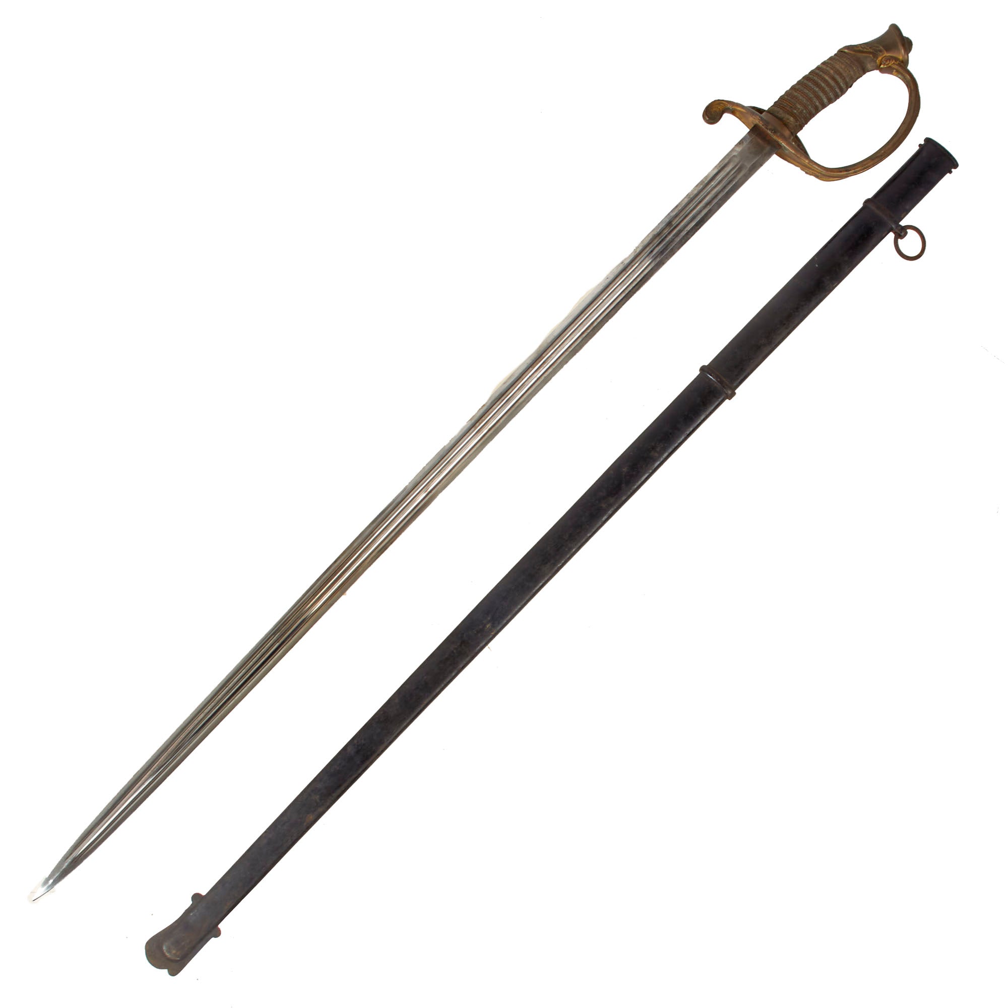 The overall length of the sword is 37½”. The all-steel scabbard measures 34” and retains much of its black paint although there is scattered oxidation.