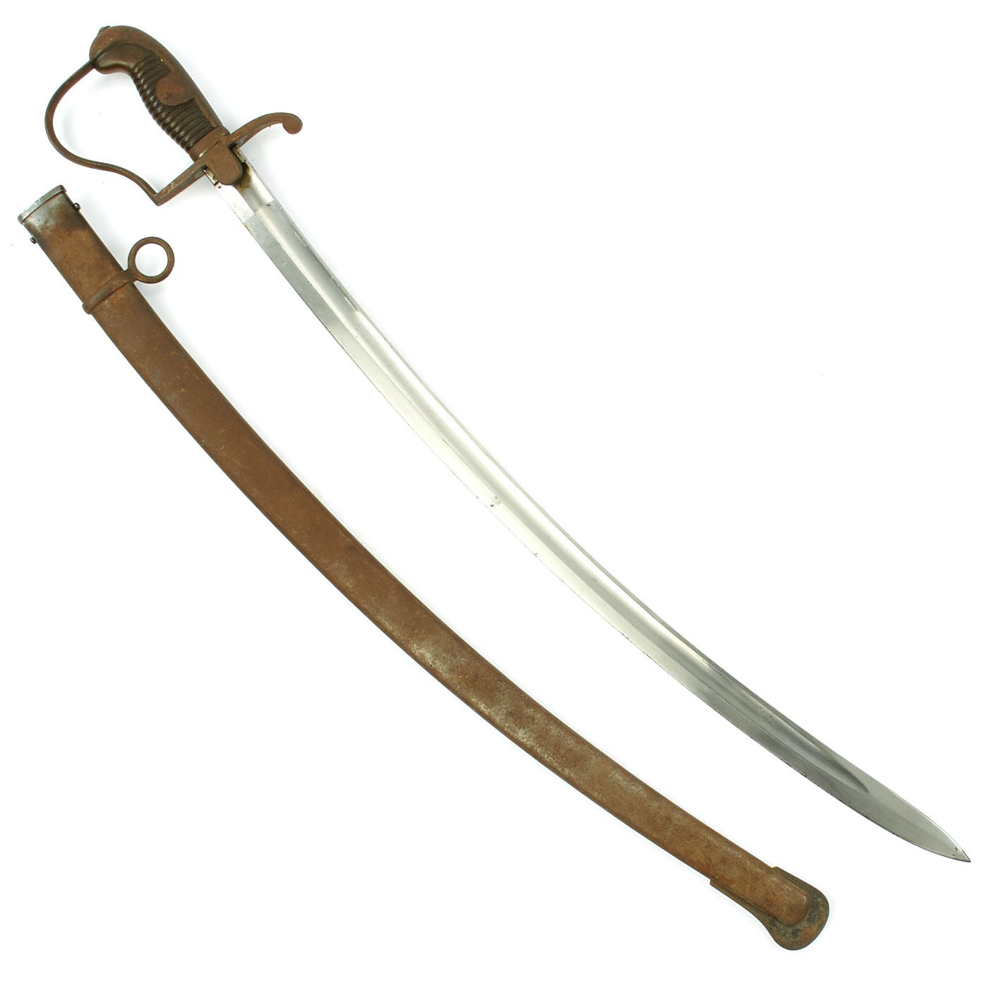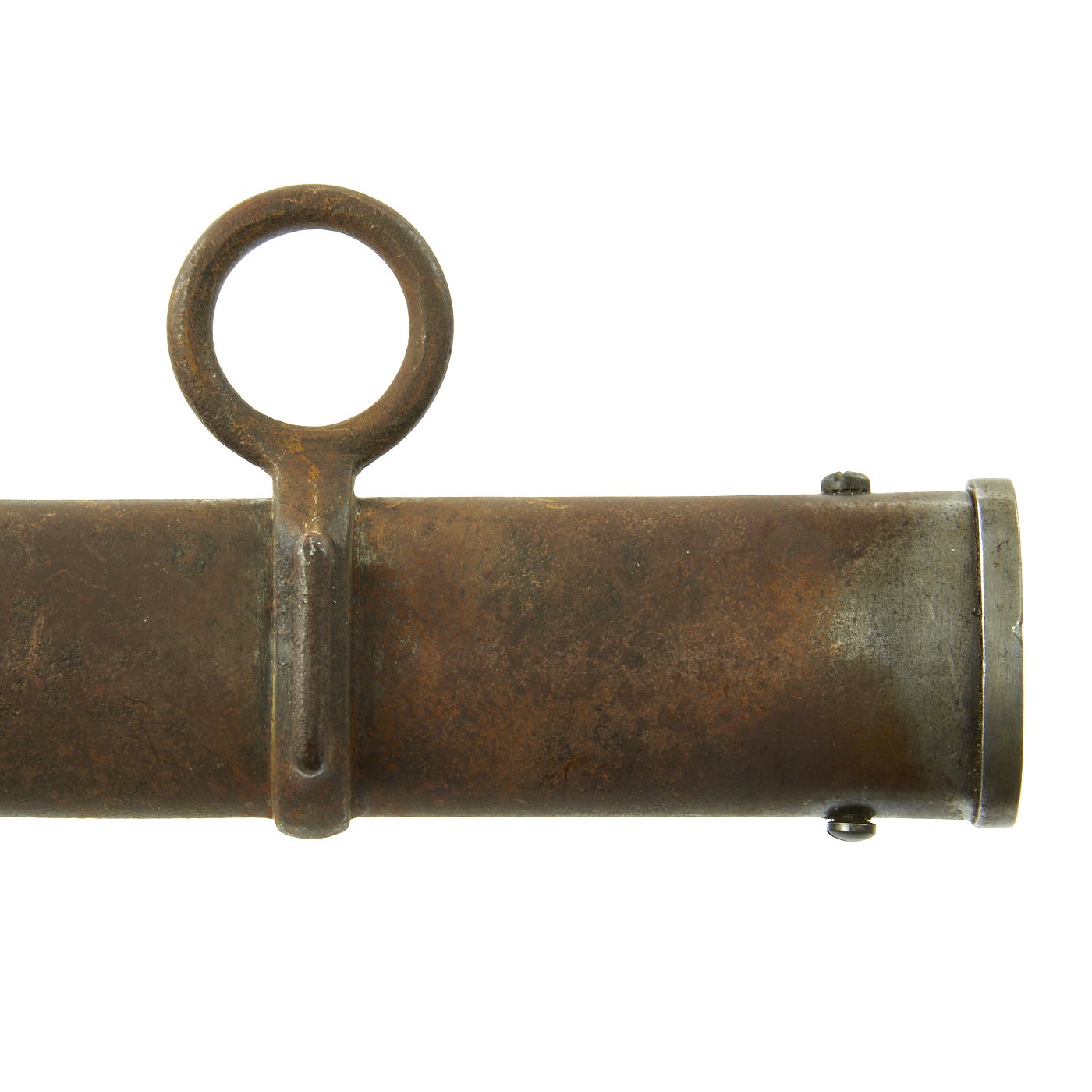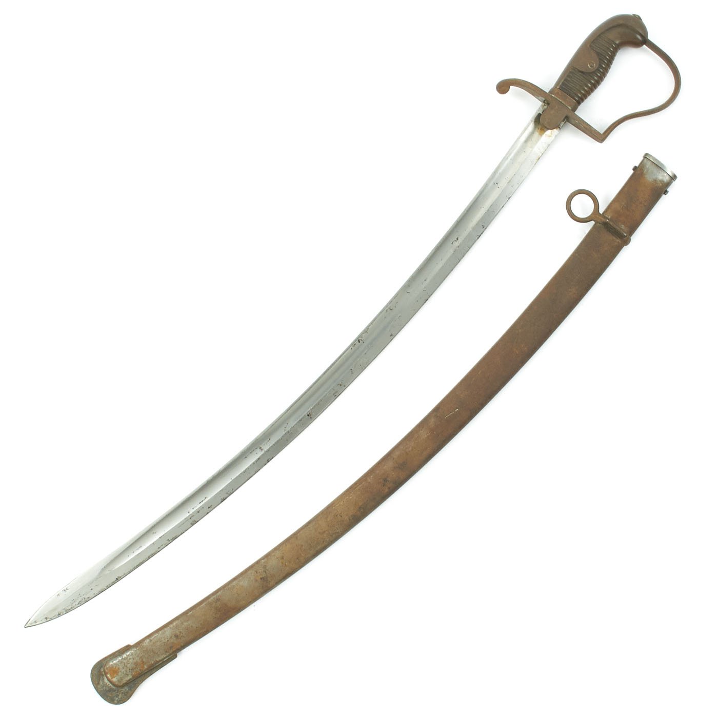 There are various proof marks on hilt and blade, and this sword comes with the original all steel scabbard, which is in very good condition. The metalwork all has an aged oxidized patina, which we have left in place to preserve the authenticity. It could be polished and cleaned, but we think it looks great as is.