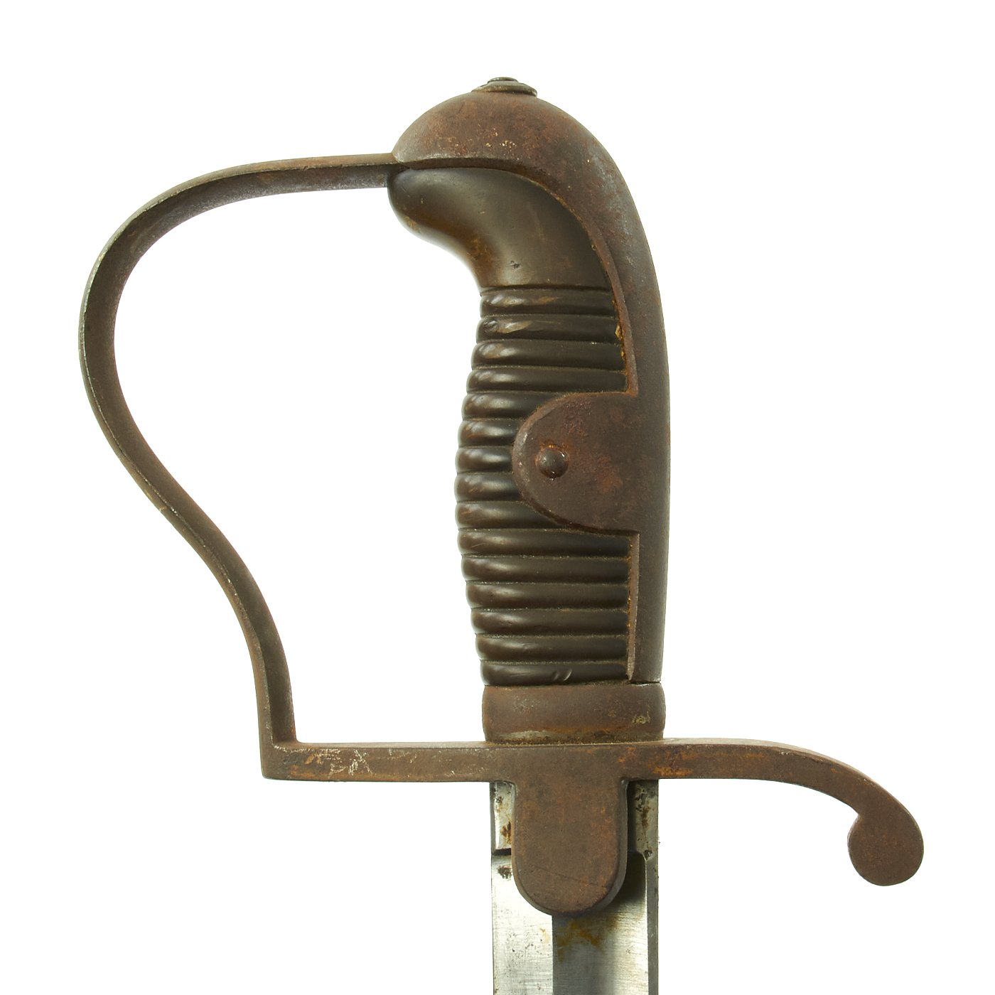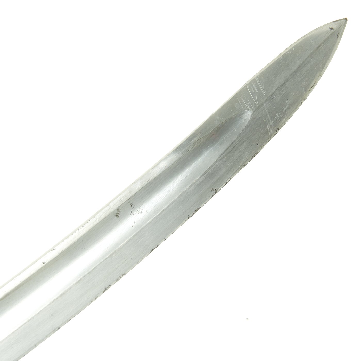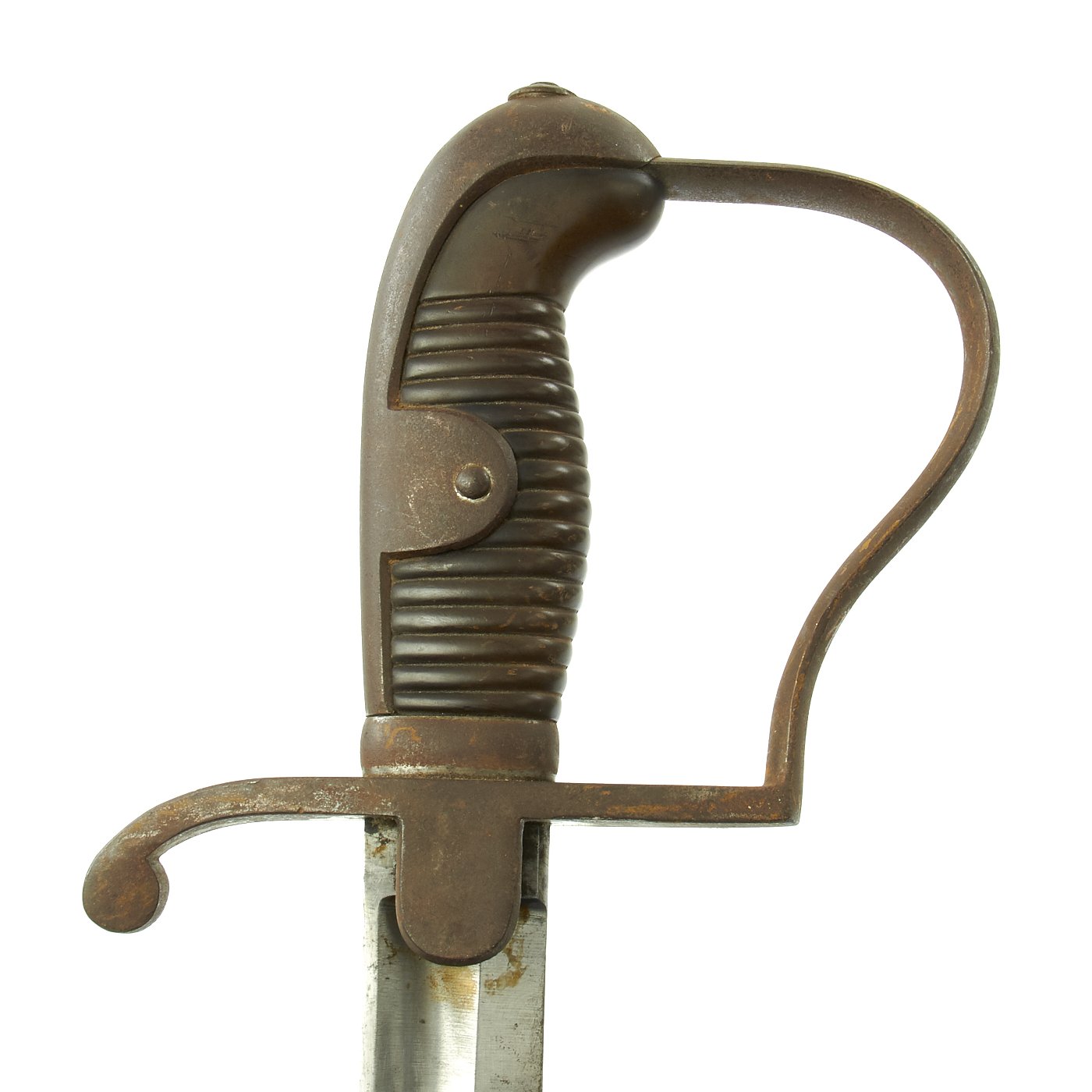 There are various proof marks on hilt and blade, and this sword comes with the original all steel scabbard, which is in very good condition. The metalwork all has an aged oxidized patina, which we have left in place to preserve the authenticity. It could be polished and cleaned, but we think it looks great as is.