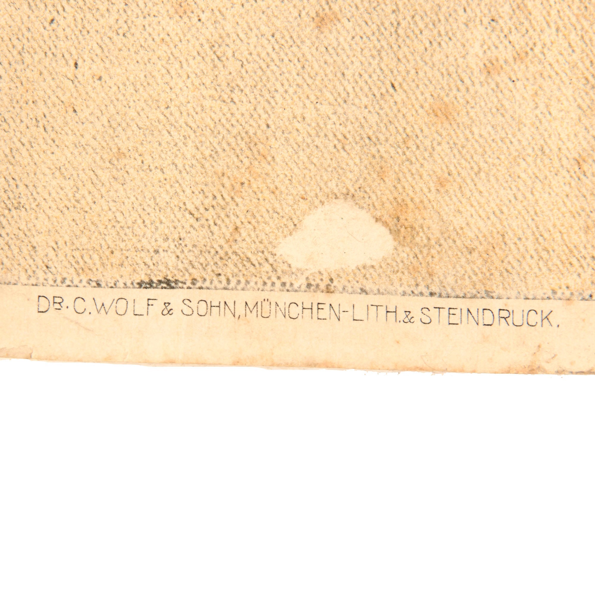 Original Item. One-of-a-Kind. This is a good example of a certificate issued to families of fallen Bavarian soldiers during World War I. The poster depicts a Bavarian soldier at a comrade’s grave marker, a cross with wreaths on it and a Bavarian bow. The top has 1914 to the left and 1916 to the right. The left has five lines for the soldier’s information.