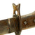 The overall length is about 10 1/2 inches, and unlike most that we have seen, the blade has not been sharpened much or shortened. The unique "CRANK HANDLE" grip is constructed from two steel stampings riveted together, in the typical "Ersatz" (replacement) style of construction. This grip fits the standard Gewehr 98 (GEW 98) Mauser bolt action magazine Rifle carried by German Infantry throughout WW1.