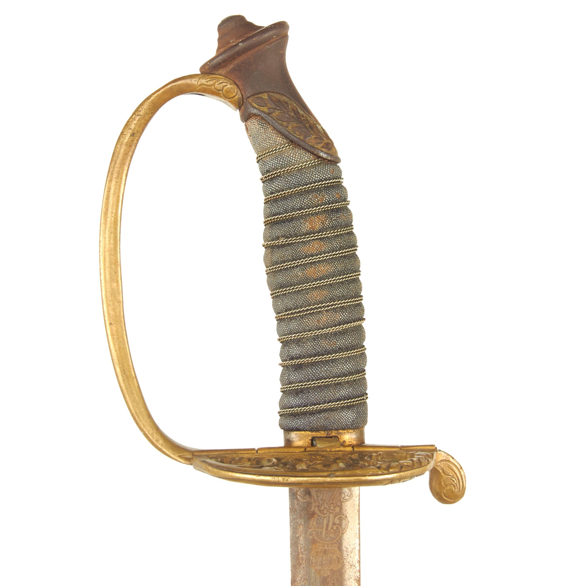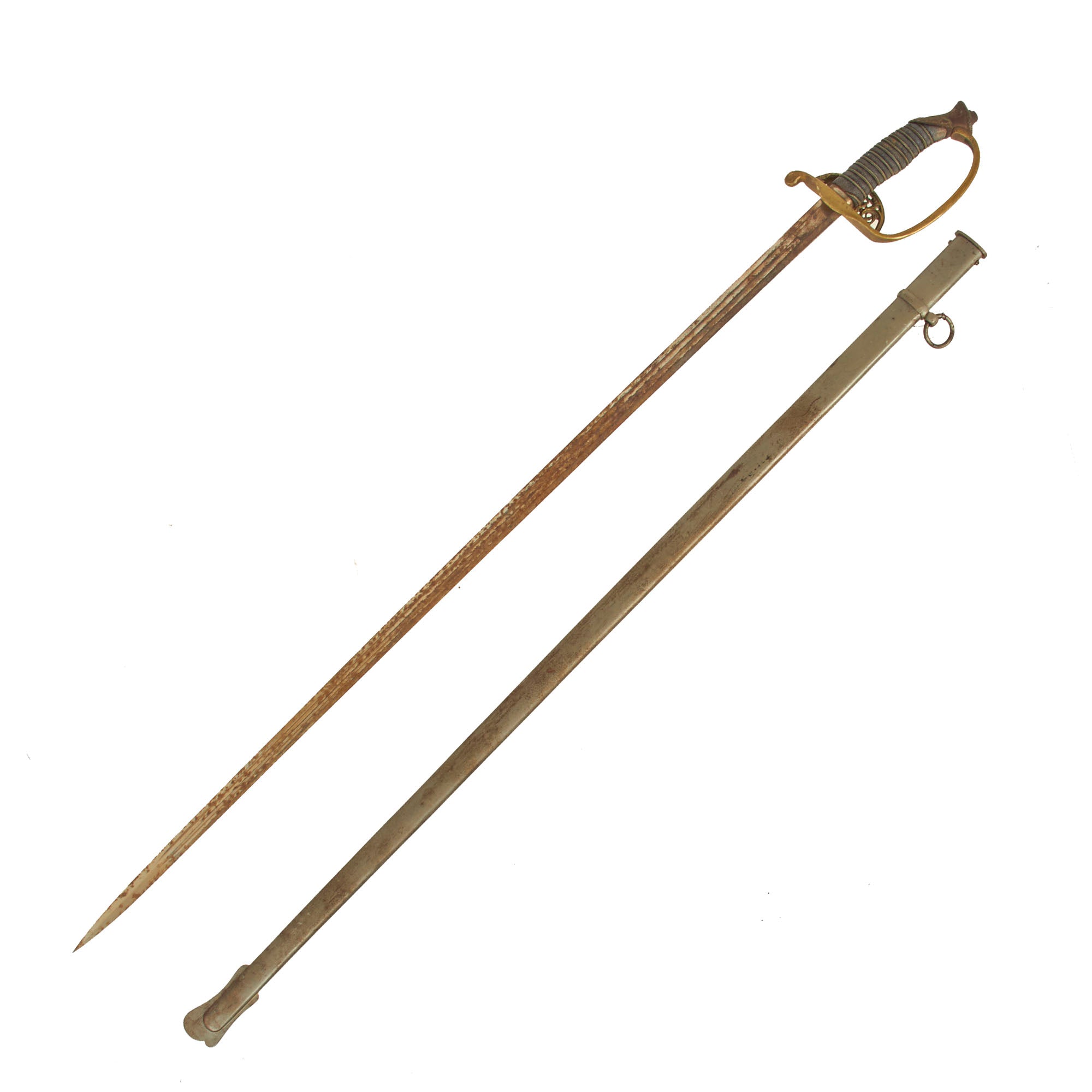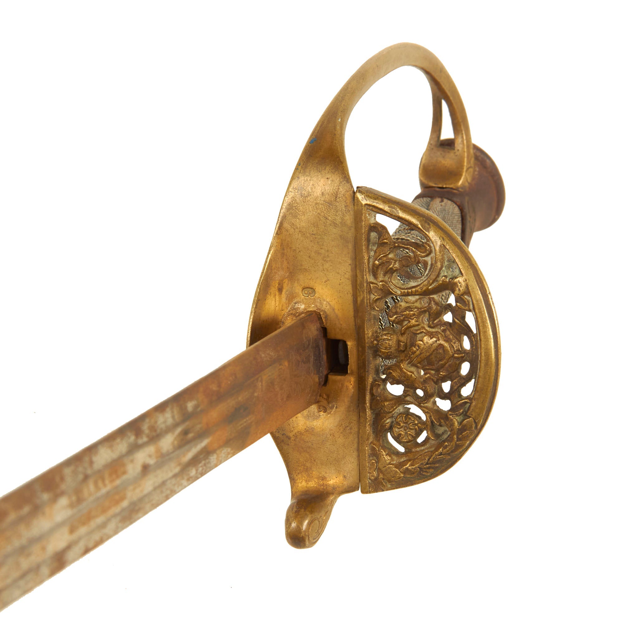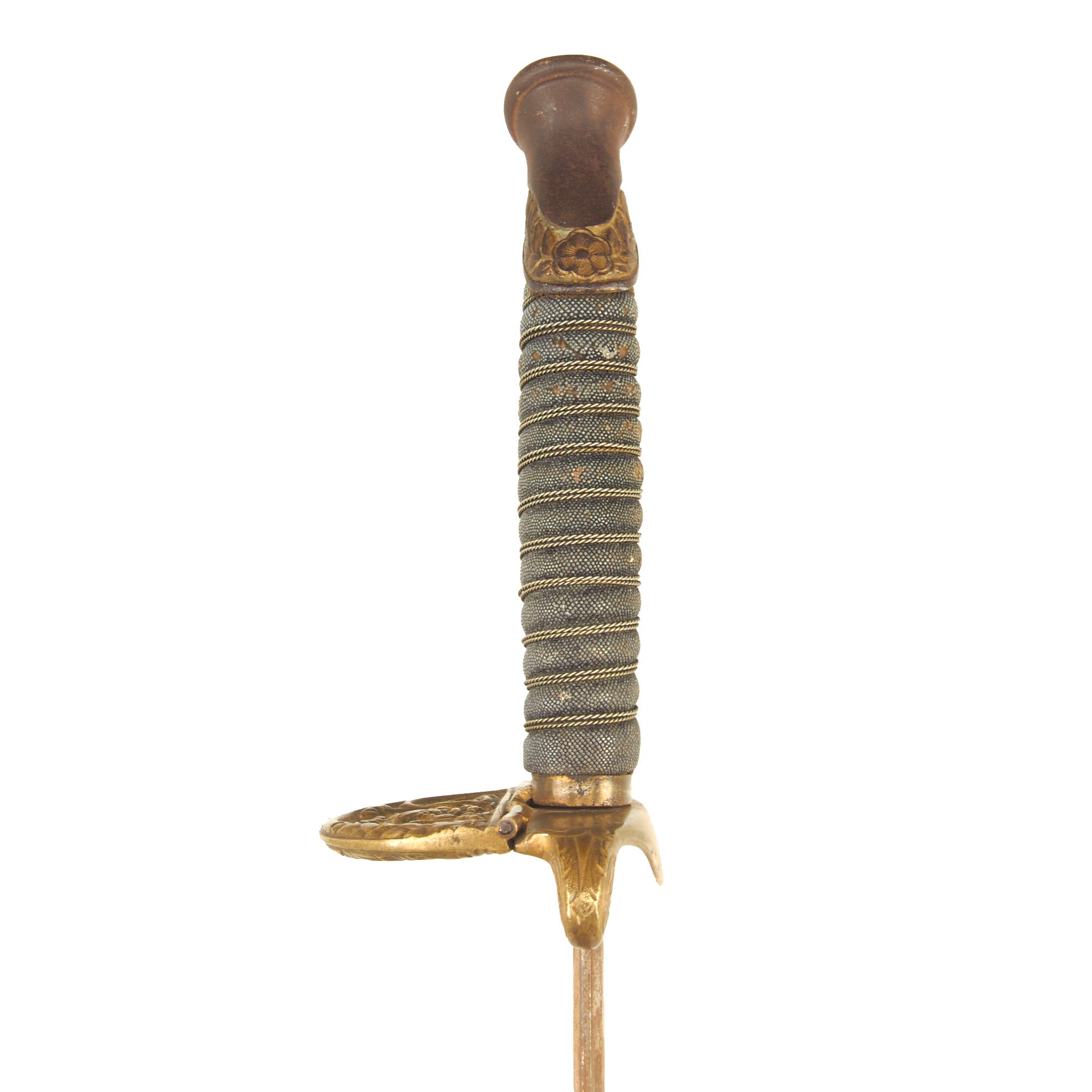 Original Item: Only One Available. This is a very nice Imperial German WWI era dress sword from the Kingdom of Saxony, which was one of the members states of the German empire. Offered in good condition, it features a shape fold-away guard with the Coat of Arms of the Kingdom of Saxony on it. The grip is brass wire bound over sharkskin, most likely with wood underneath. The grip is in very good condition, and the hilt is tight to the tang. This model of sword is somewhat similar to the Prussian Model of 1889, but the blade is definitely different. The hilt looks be made entirely of steel or iron, instead of the lighter alloys usually used.