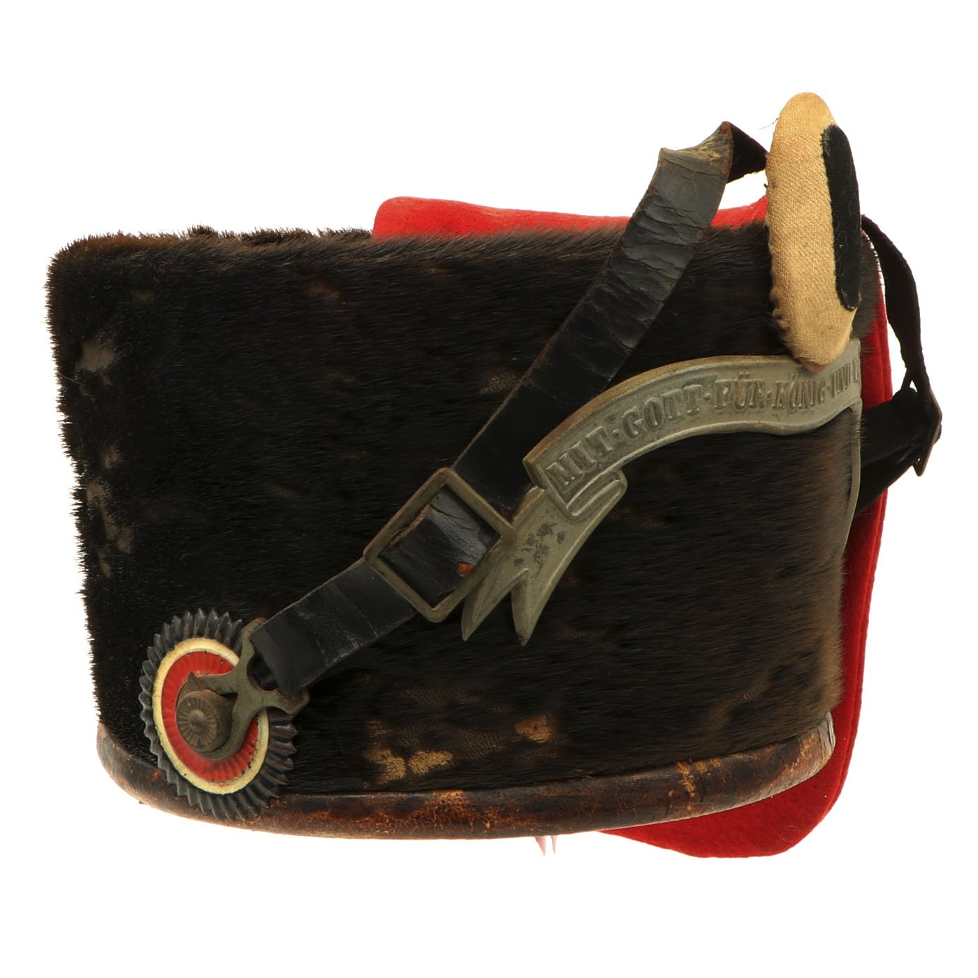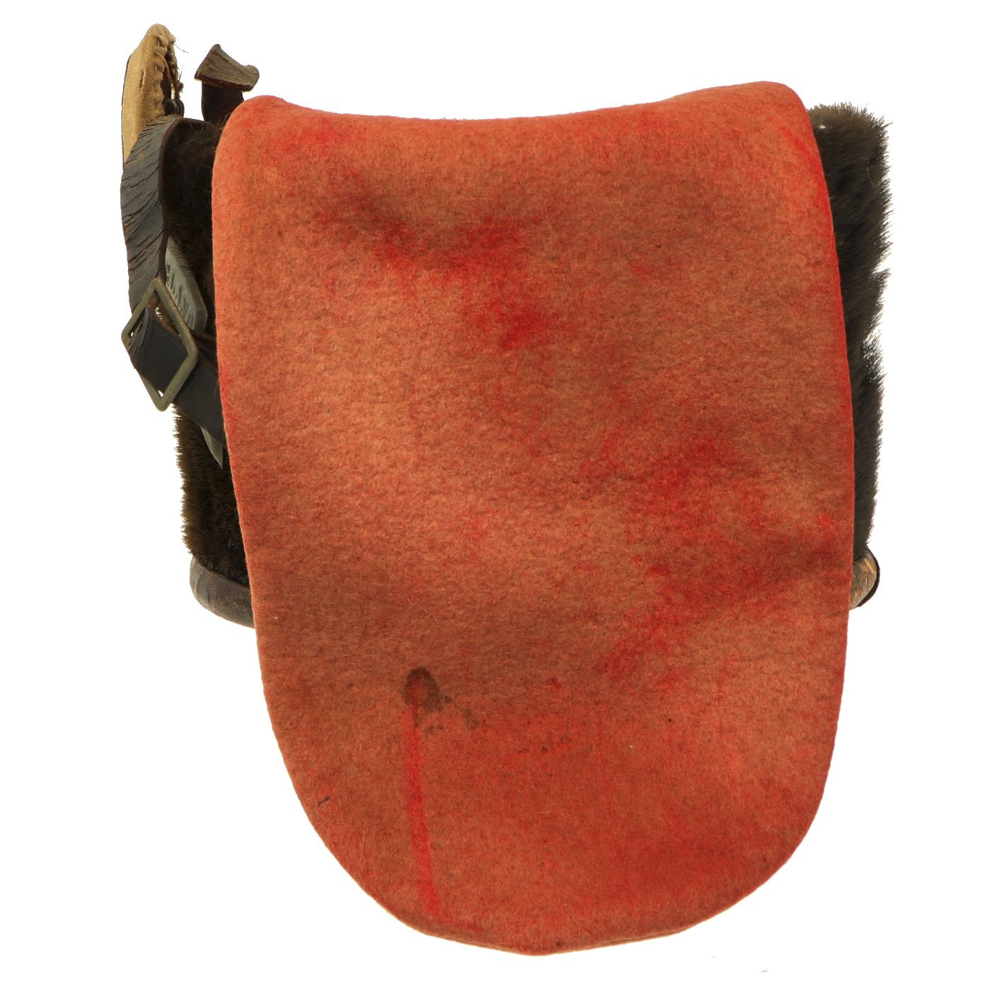 Original Item: Only One Available. Here we have a fantastic Imperial German Hussar's Busby or Pelzmütze (Fur Cap), intended for EM/NCO's or Mannschaften "Other Ranks" soldiers. Busby is of course the English name for the Hungarian prémes csákó ("fur shako") or kucsma, a military head-dress made of fur, originally worn by Hungarian hussars. In its original Hungarian form the busby was a cylindrical fur cap, having a bag of colored cloth hanging from the top. The end of this bag was attached to the right shoulder as a defense against sabre cuts.
