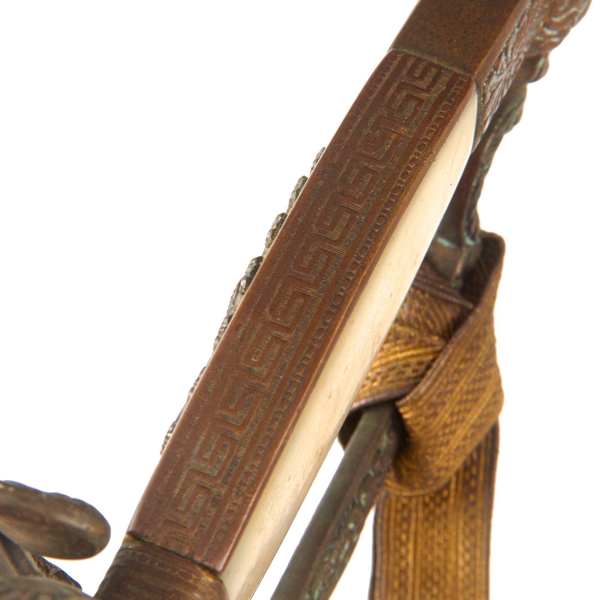 The gold tape troddel knot is still well-attached at the guard, and the bullion knot looks great minus the loss of bullion on the crowns. Very difficult to find so complete like this!