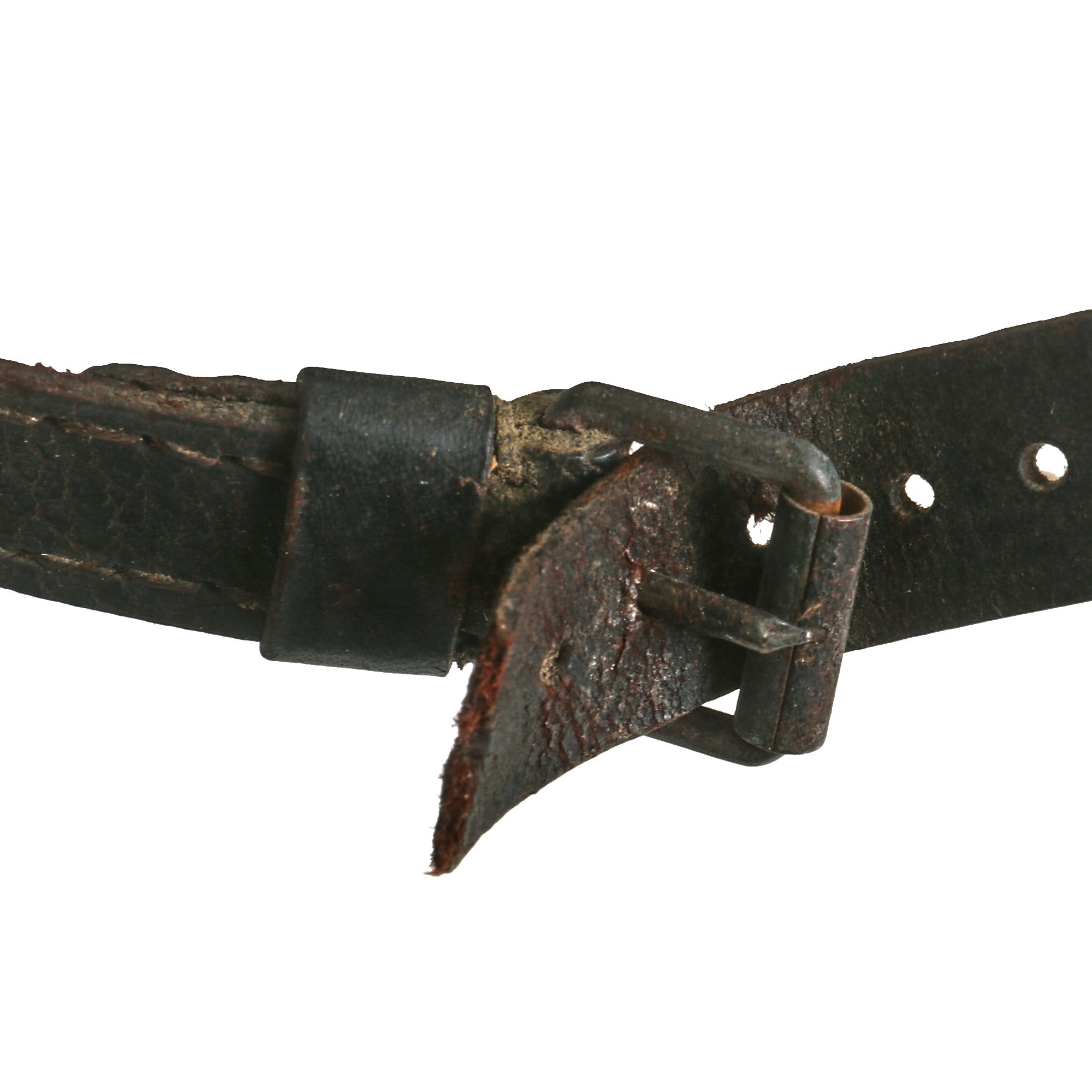 Of the original Stirnpanzers you will come across, about 10% will have remnants of the original strap, and even less will have a working strap. This example retains roughly 90% of its strap, with the buckle completely intact and still functional without rusting. The perforated side of the strap, which originally had thirteen (13) holes for proper affixation to a Stahlhelm, has broken in the middle of its eleventh (11th) hole, meaning it can still be properly strapped onto a Stahlhelm, although given the fragility of the 108-year-old leather, this should be done with extreme caution.