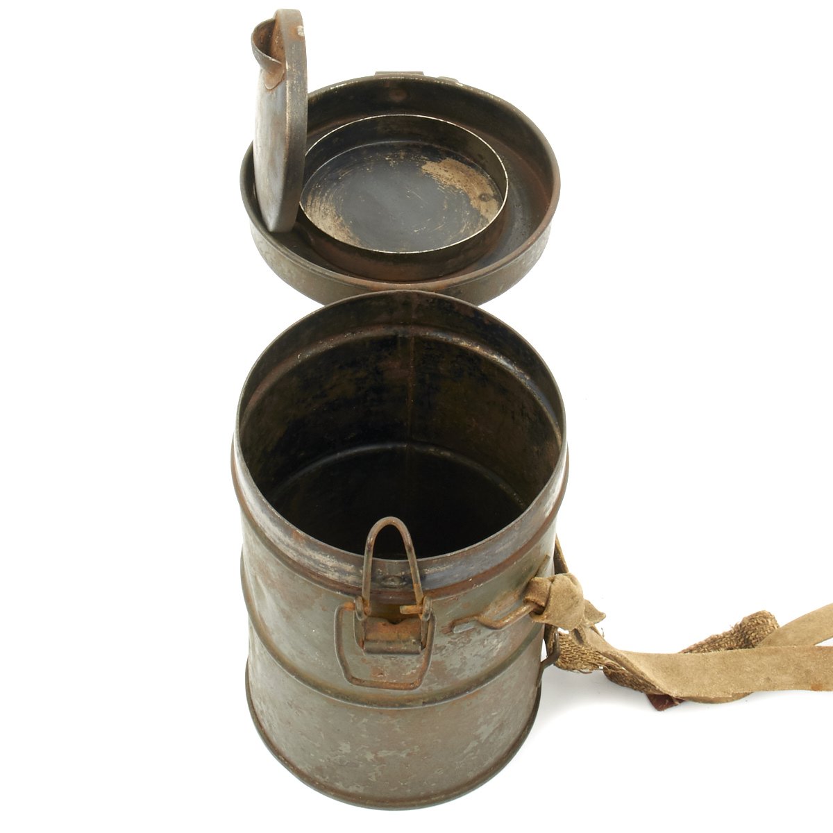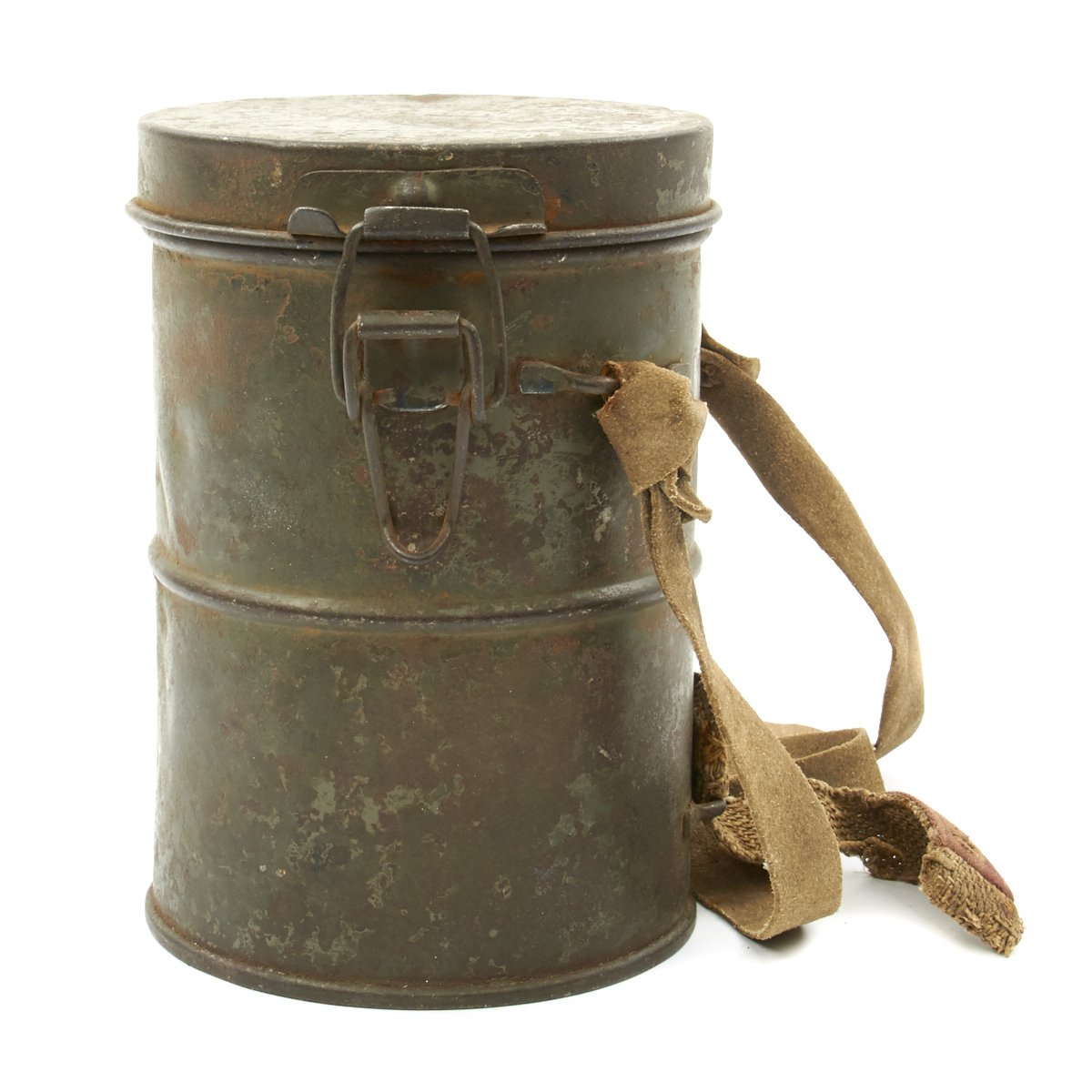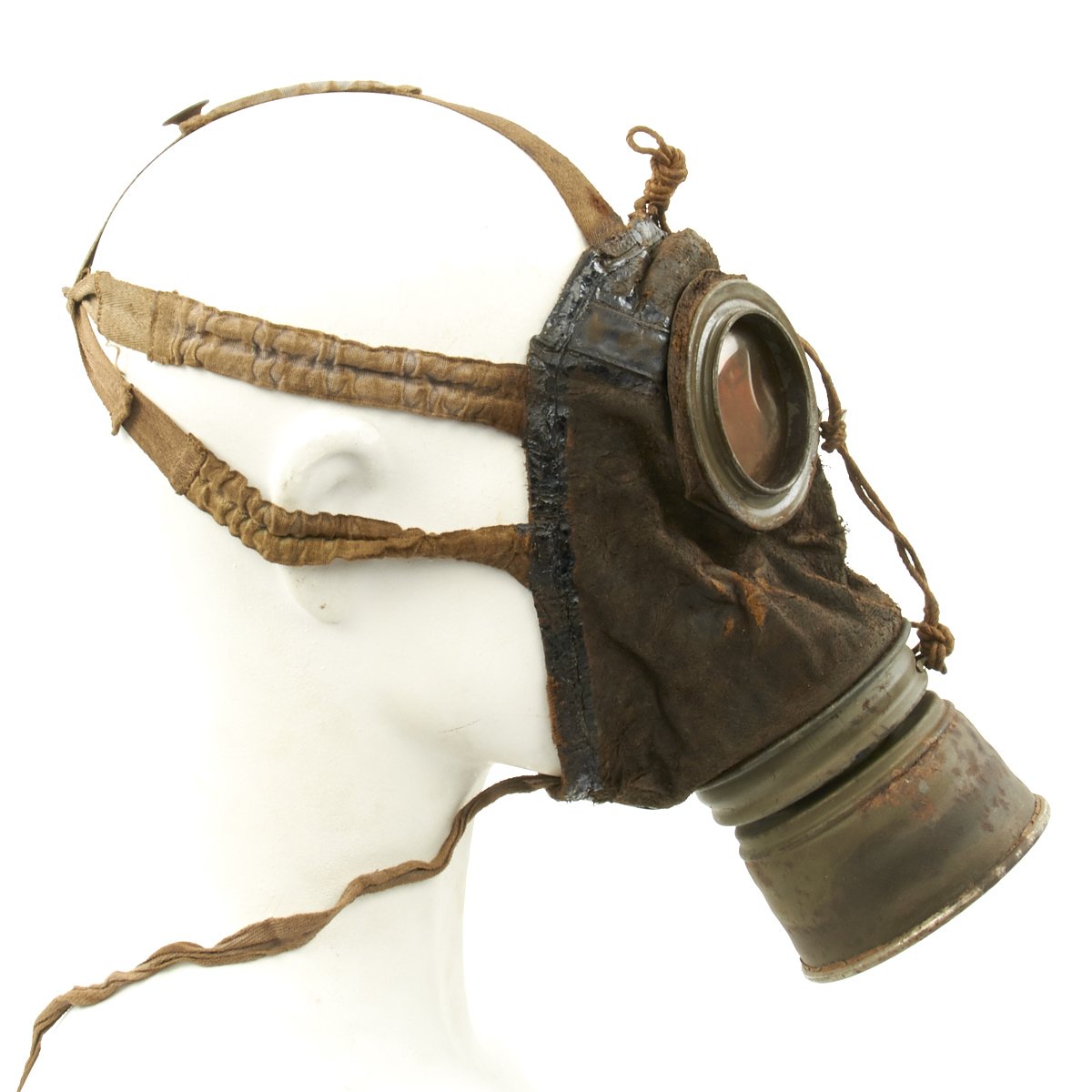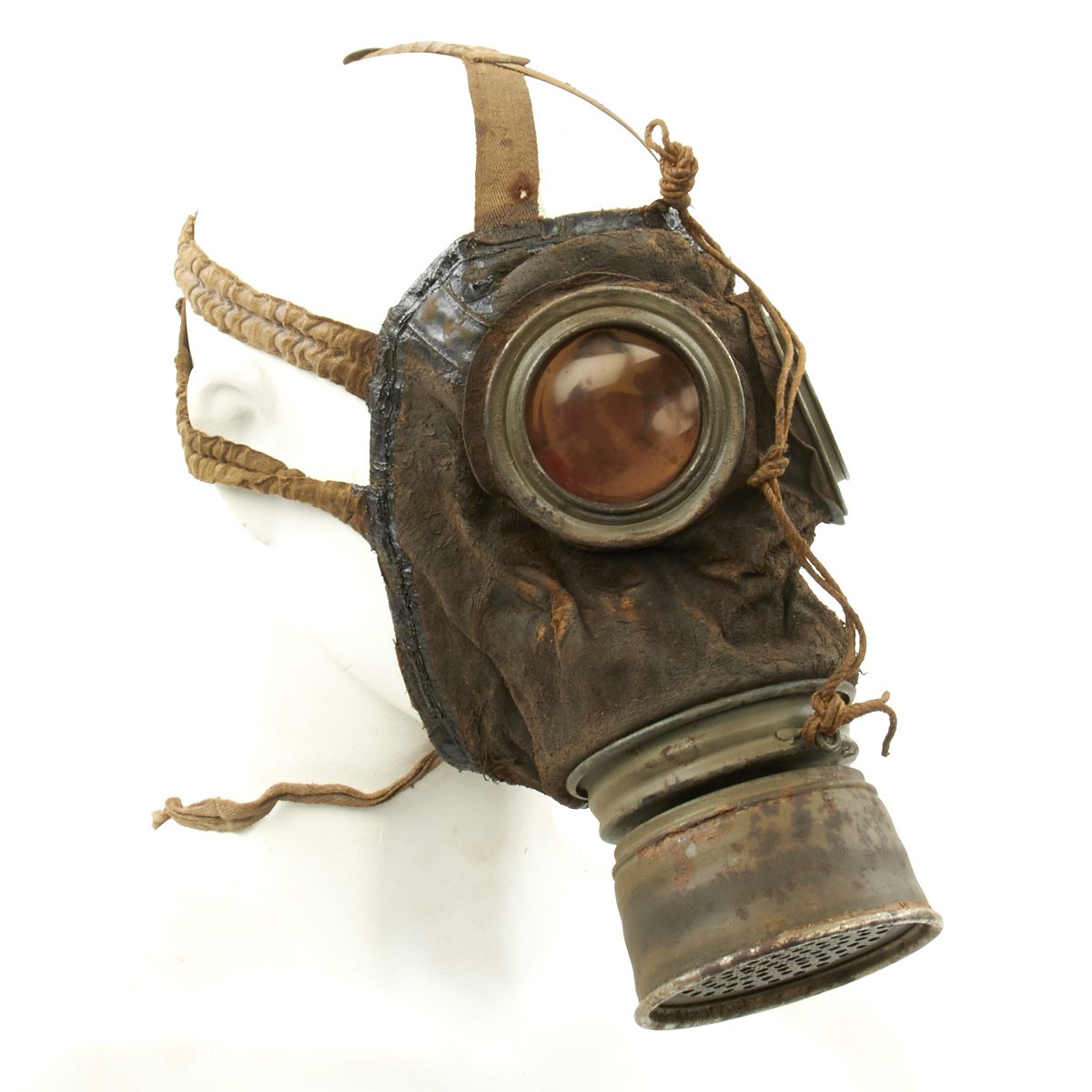 Original Item: Only One Available. This is an excellent condition totally genuine World War One issue German gas mask. The mask is constructed of leather (still soft) with canvas straps. Original tinted lenses with a set of spare lenses in the carry canister. Metal eye guards still intact and complete. The filer is nicely marked and ink stamped with date 23.Jan.18 along with manufacture stamps and inspector markings. The carry can is in very good condition with much original paint remaining. Included inside the spare lens compartment in the carry canister is a set of new old stock orange lenses complete in their original wax paper bag. Overall a wonderful condition gas mask that is more than 100 years of age!