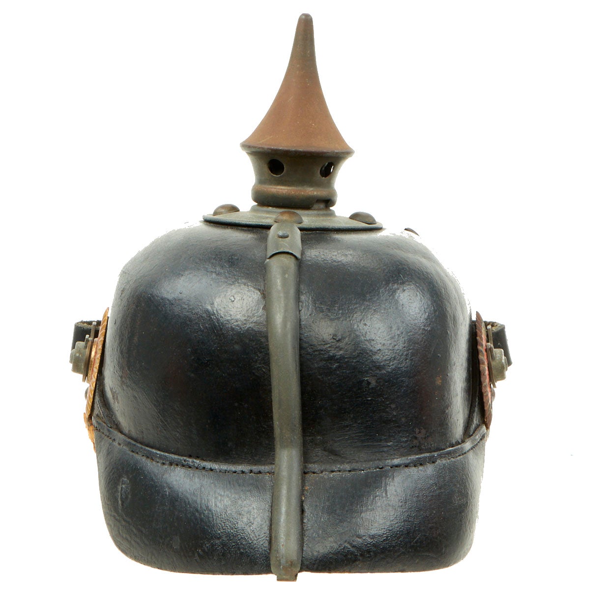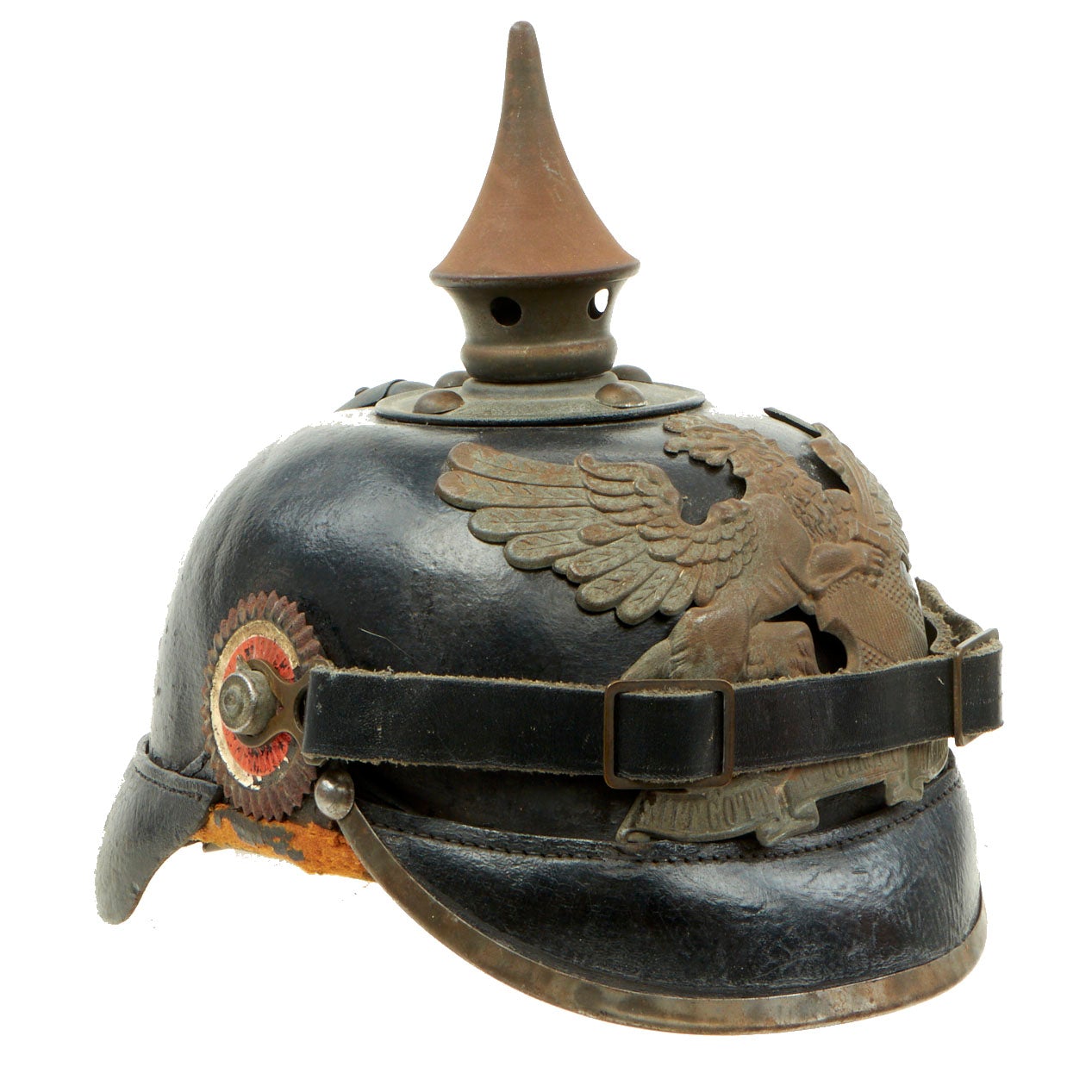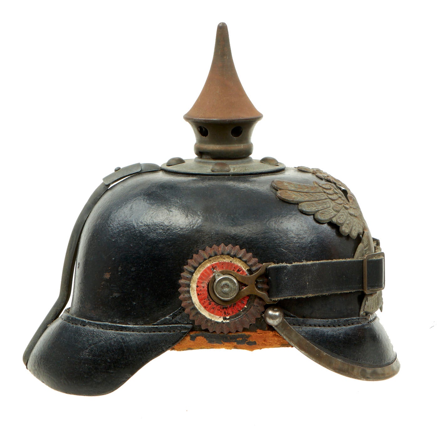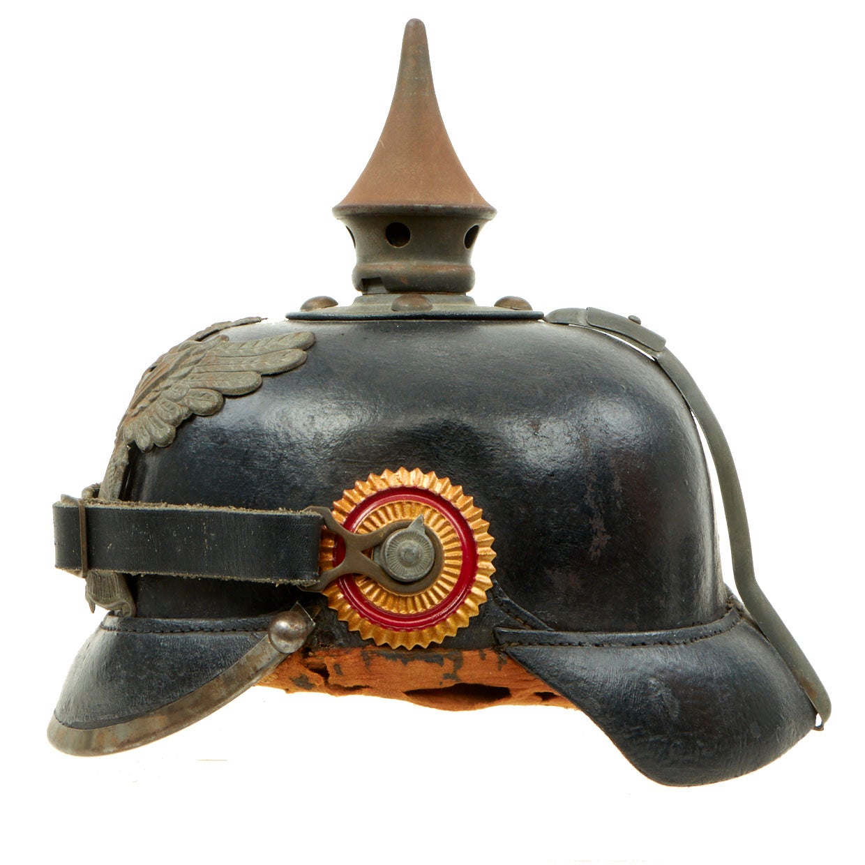Original Item: Only One Available. This is a very good condition Imperial German line Infantry enlisted man's Mannschaften (other ranks) pickelhaube, with Grand Duchy of Baden Wappen and Cockades. The M1915 was the last model of Pickelhaube issued prior to the move to all steel helmets. In accordance with the 1915 regulations these helmets would no longer would use brass, silver, or Tombak as the M1895 did. All issued Pickelhaube would now use grey oxidized steel fittings for all Regiments.