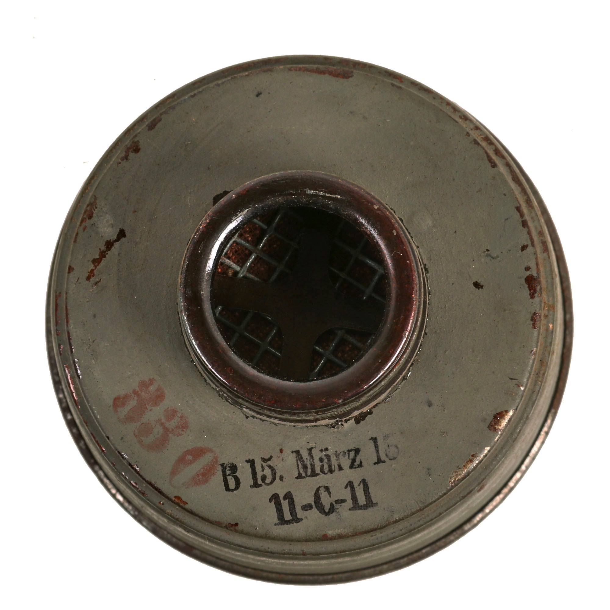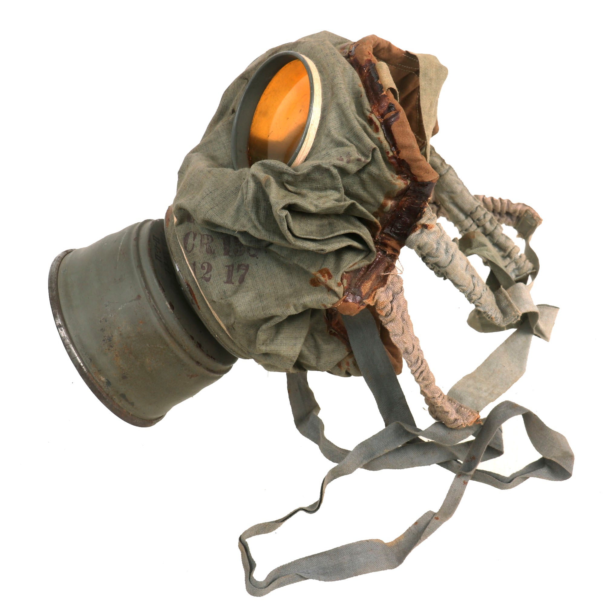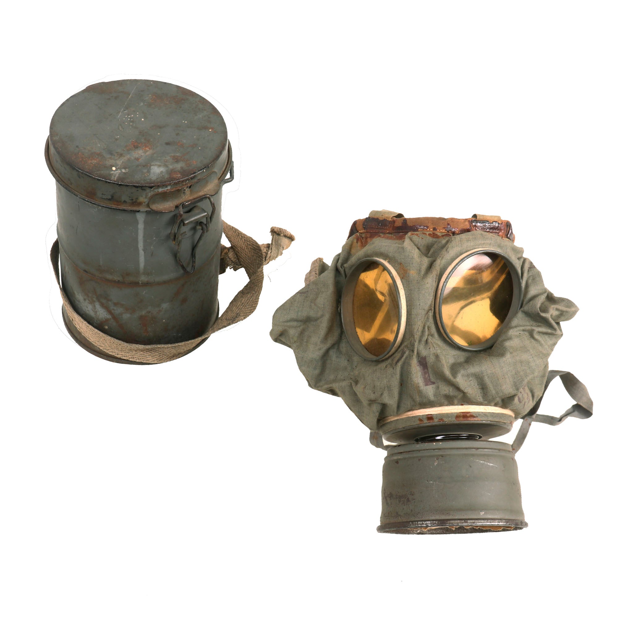 Original Item: Only One Available. This is a very rare rubberized cloth GM-15 gas mask. The Gummimaske (Rubber Mask) 15 was initially produced in 1915. It was the prototype design of a gas mask system that allowed a soldier to fight and breathe whilst located in clouds of noxious and lethal chemicals. It was the first in a series of gas mask which were manufactured for military use by the German military in WWI.