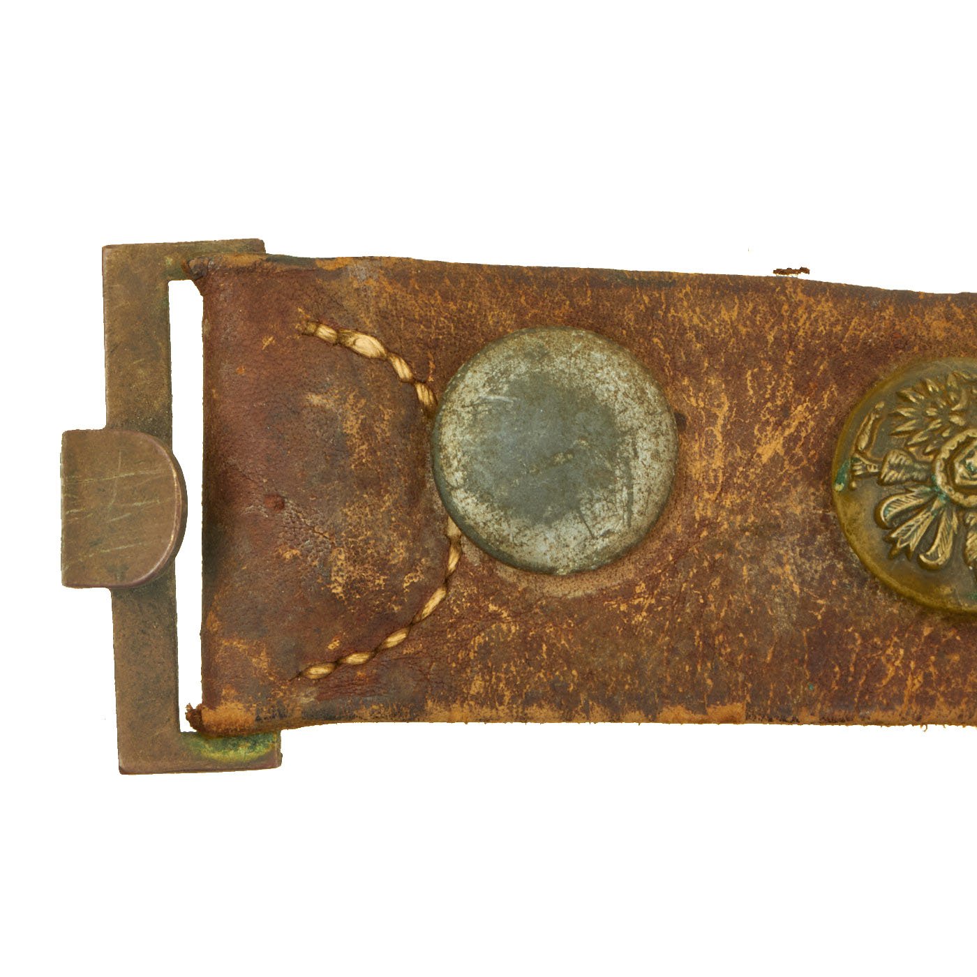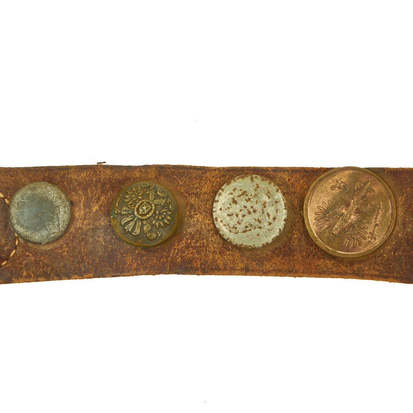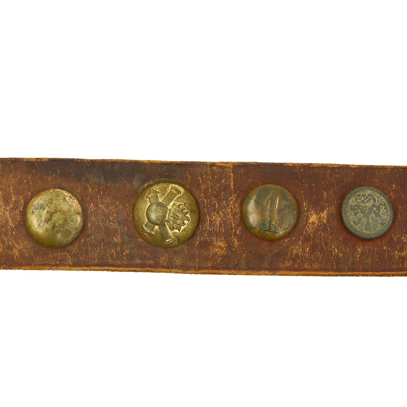 "Grave Digger Belt" description is self explanatory, to a degree. Troops burying dead soldiers would sometimes remove buttons from those they buried as a remembrance. It is impossible to determine the origin of most belts, but some of these highly collectible belts provide some hints as to their origin. Nevertheless, these belts provide for excellent points of interest for collectors.