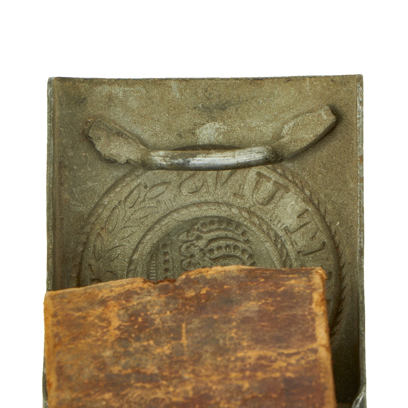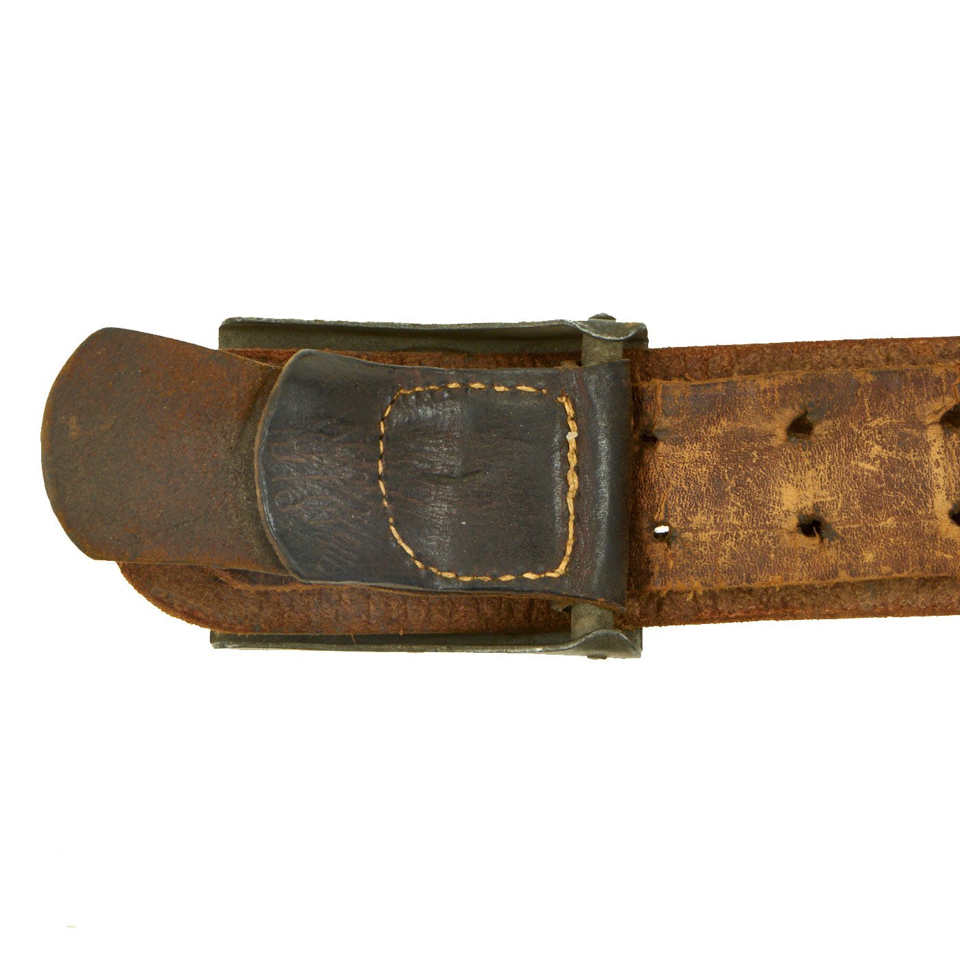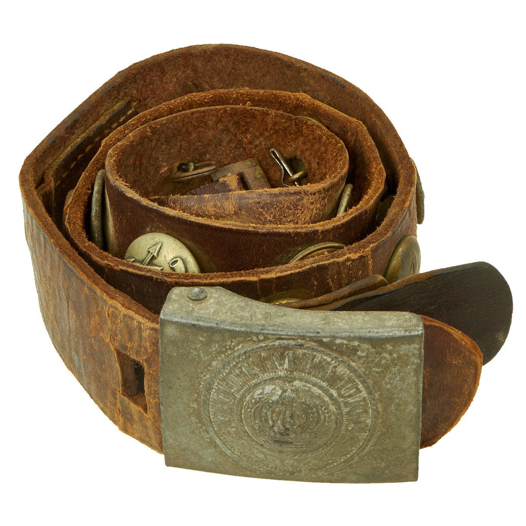This example offered in very good condition features a GOTT MIT UNS (God [is] with us) Imperial German issue Prussian M1915 Stamped Steel Belt Buckle with its correct original leather belt. It has seen use, but the emblem on the buckle is still fully legible, with only minor wear. The belt has however gotten a bit worn over the years, but is still quite soft.