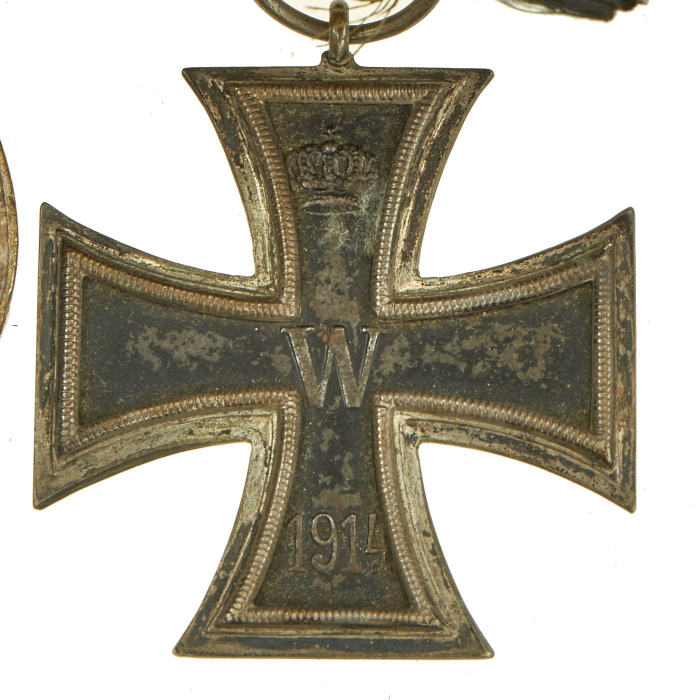 - One Imperial German WWI Prussian Iron Cross 2nd Class 1914 (Eisernes Kreuz II. Klasse 1914) with Ribbon. There is a faint maker mark on the ring, which we cannot quite make out.