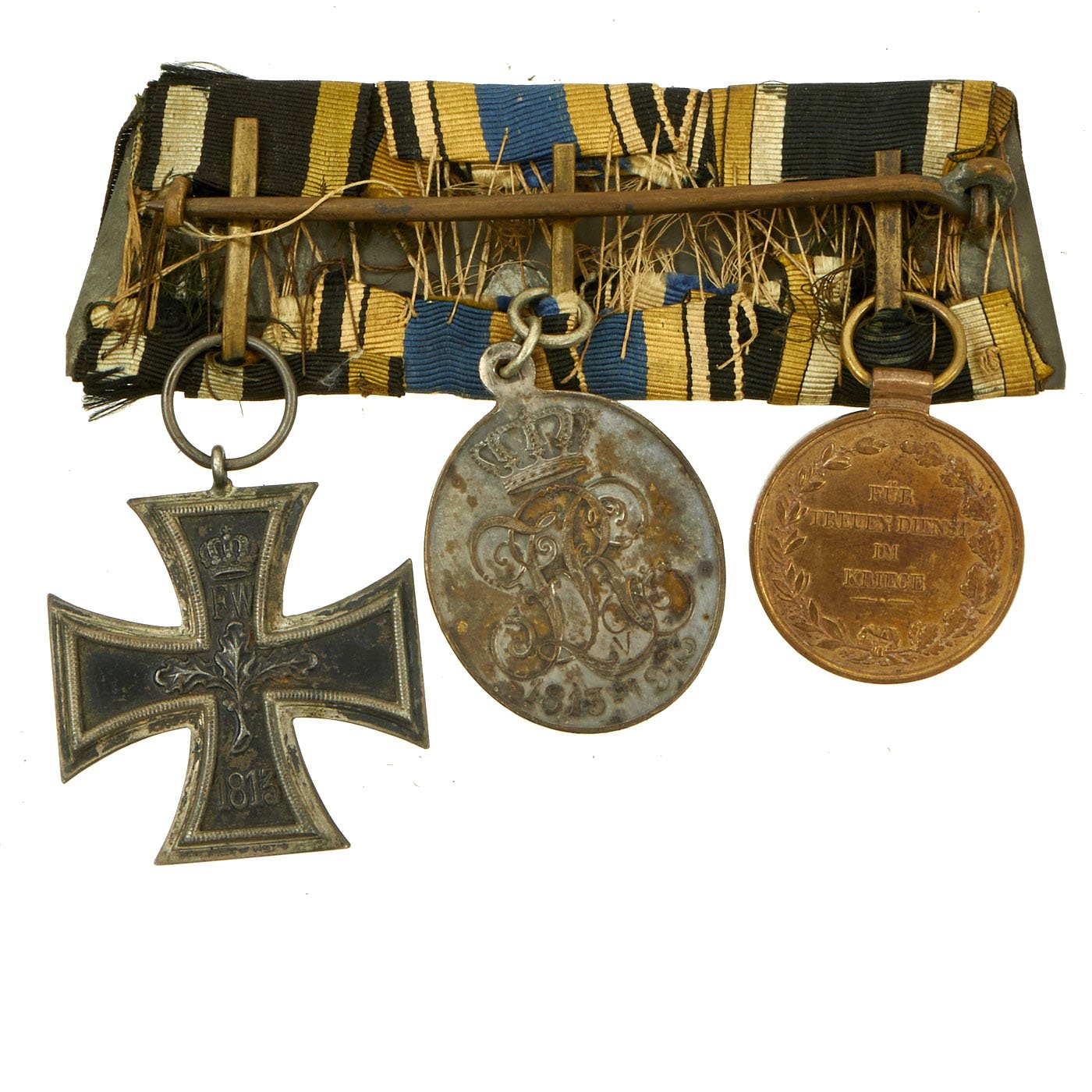 - One Imperial German late 19th Century to WWI Era Medal Bar with a metal interior stiffener, which looks to have the following three awards attached: