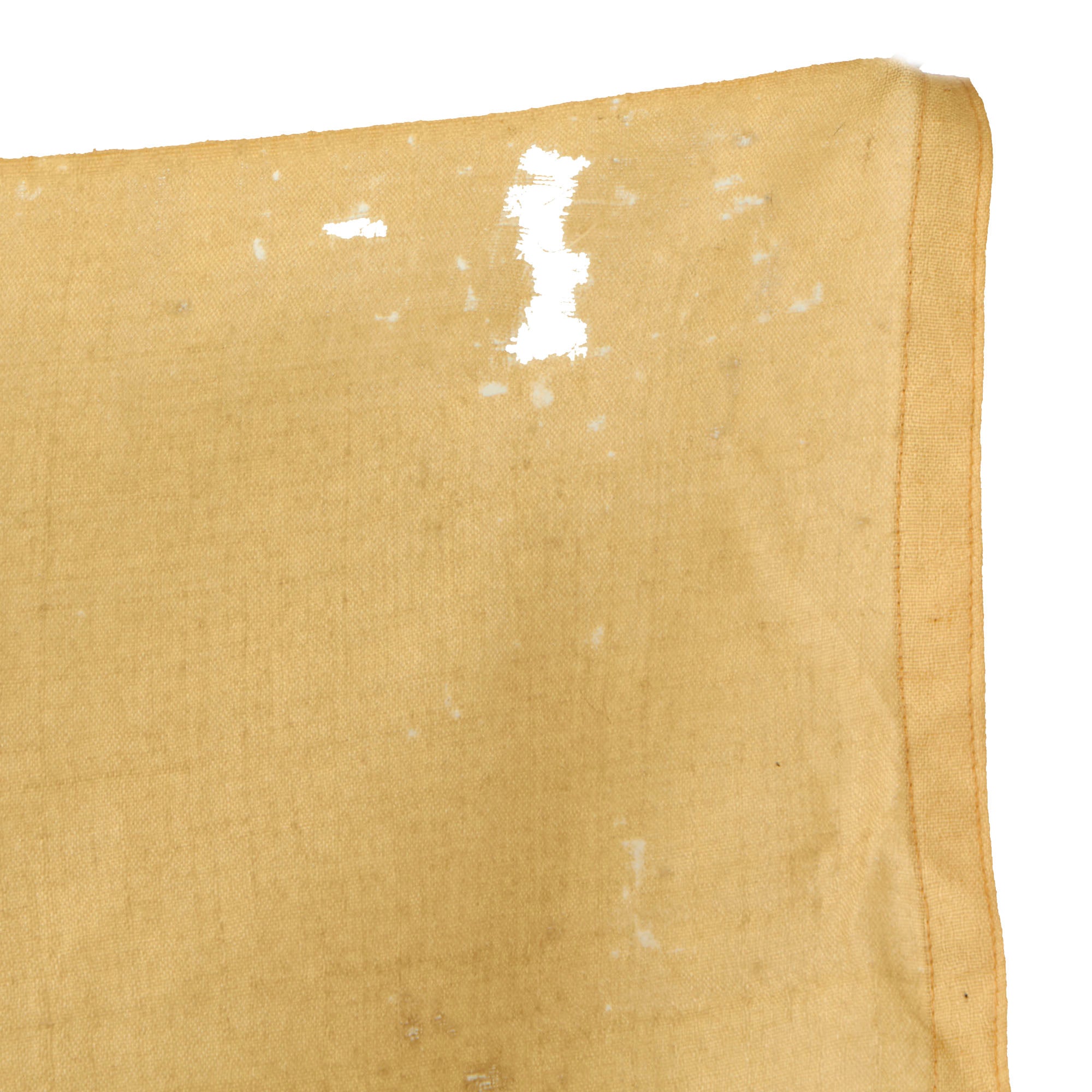 The flag measures 37" tall and 64" across, one of the larger sizes used. The flag header is canvas, unmarked (the end of the header has a very very faint unreadable marking) and with a hanging system. Based on the size of the flag, it was most likely for a sizable ship, though it is not big enough for a capital ship. Those were so large that they are quite hard to display indoors.